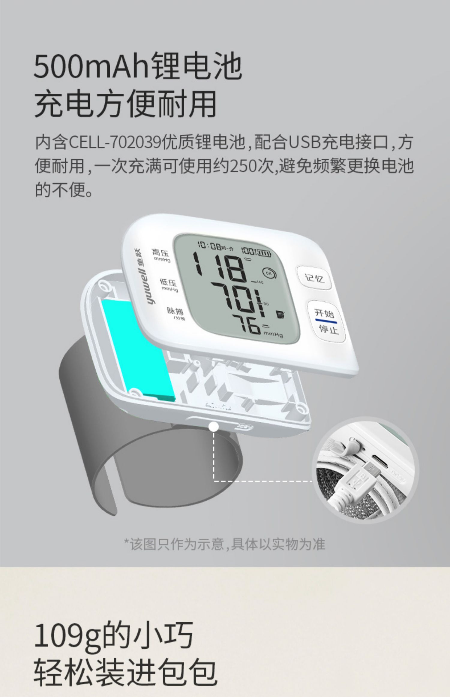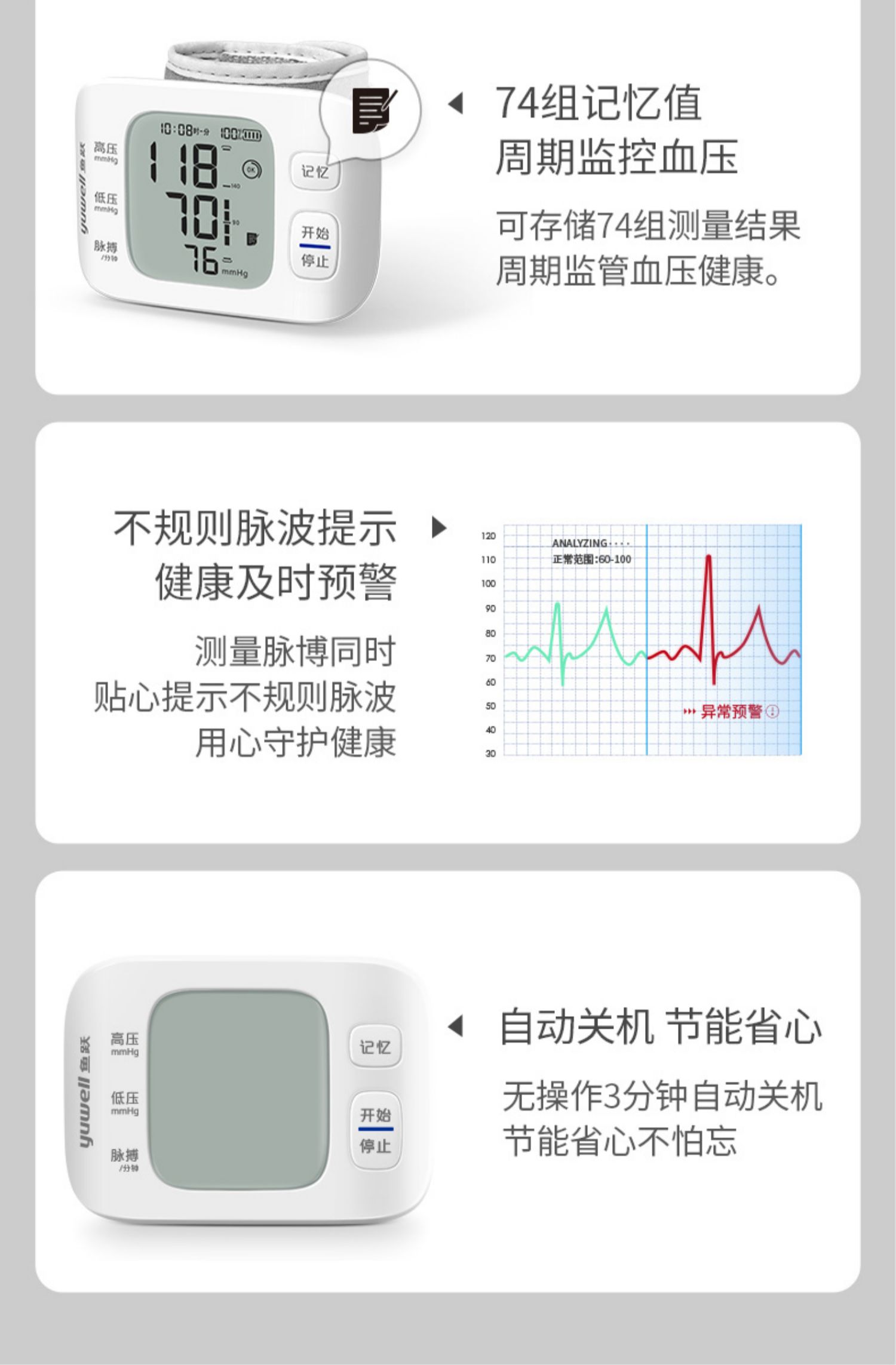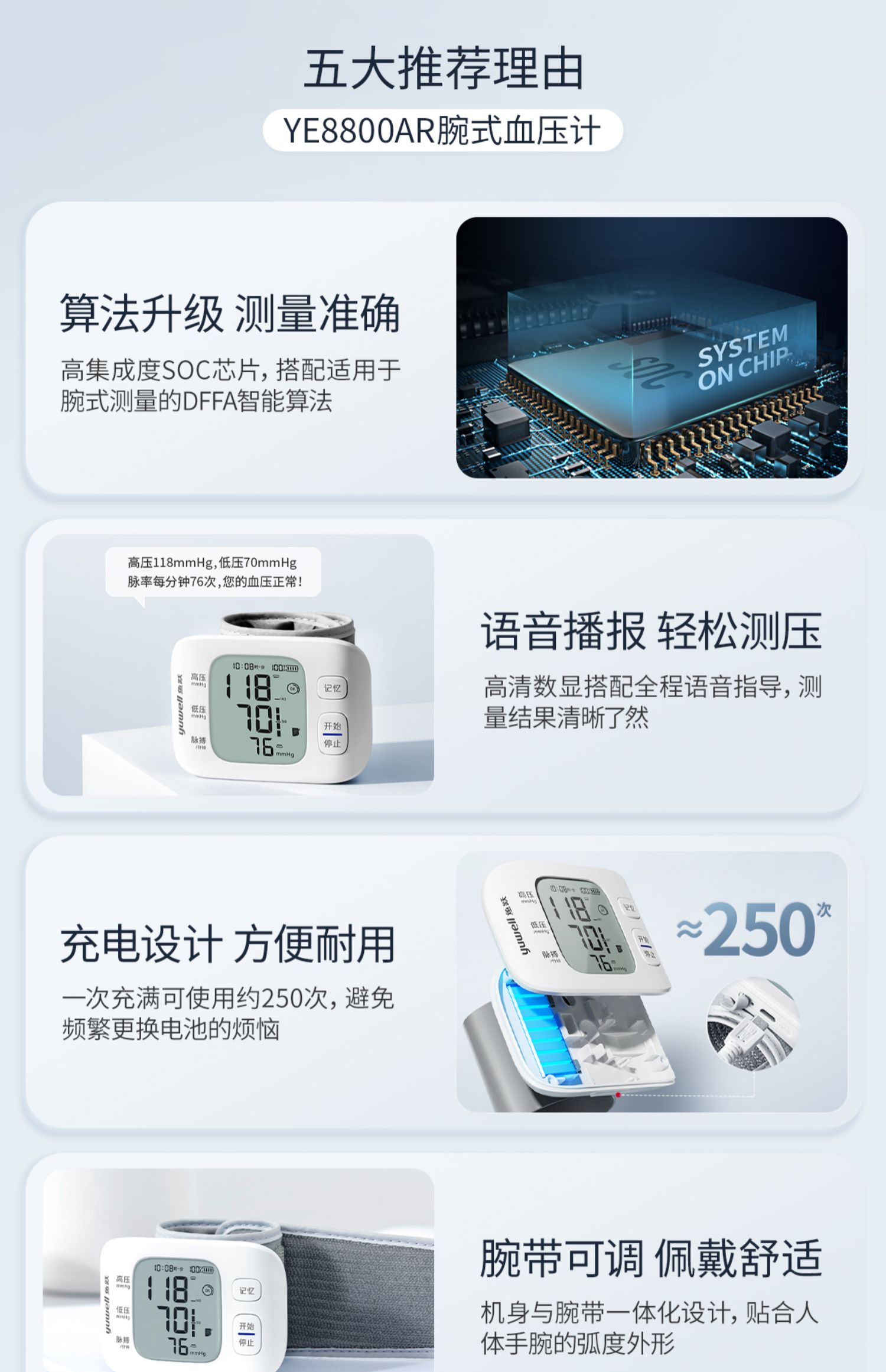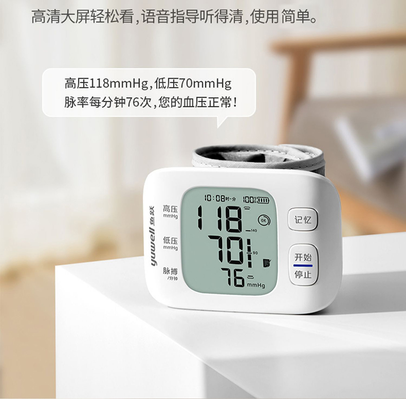 鱼跃YE8800AR电子血压计腕式语音充电款