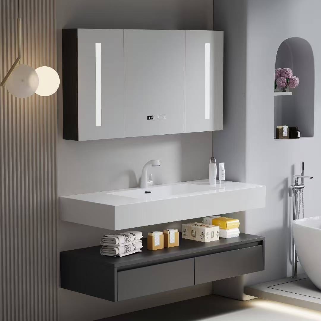 8092-(60cm-120cm)灰浴室柜 全白+智能镜柜