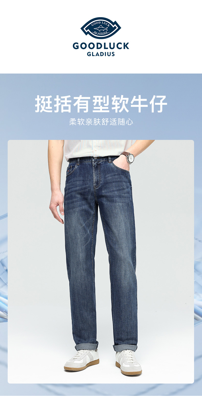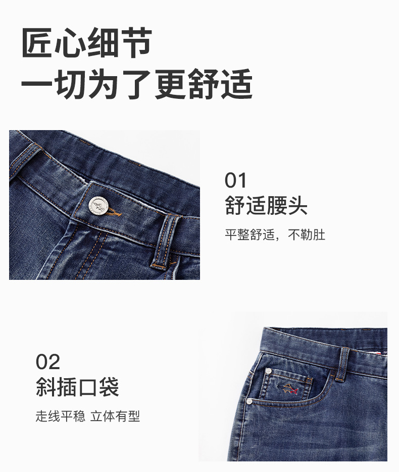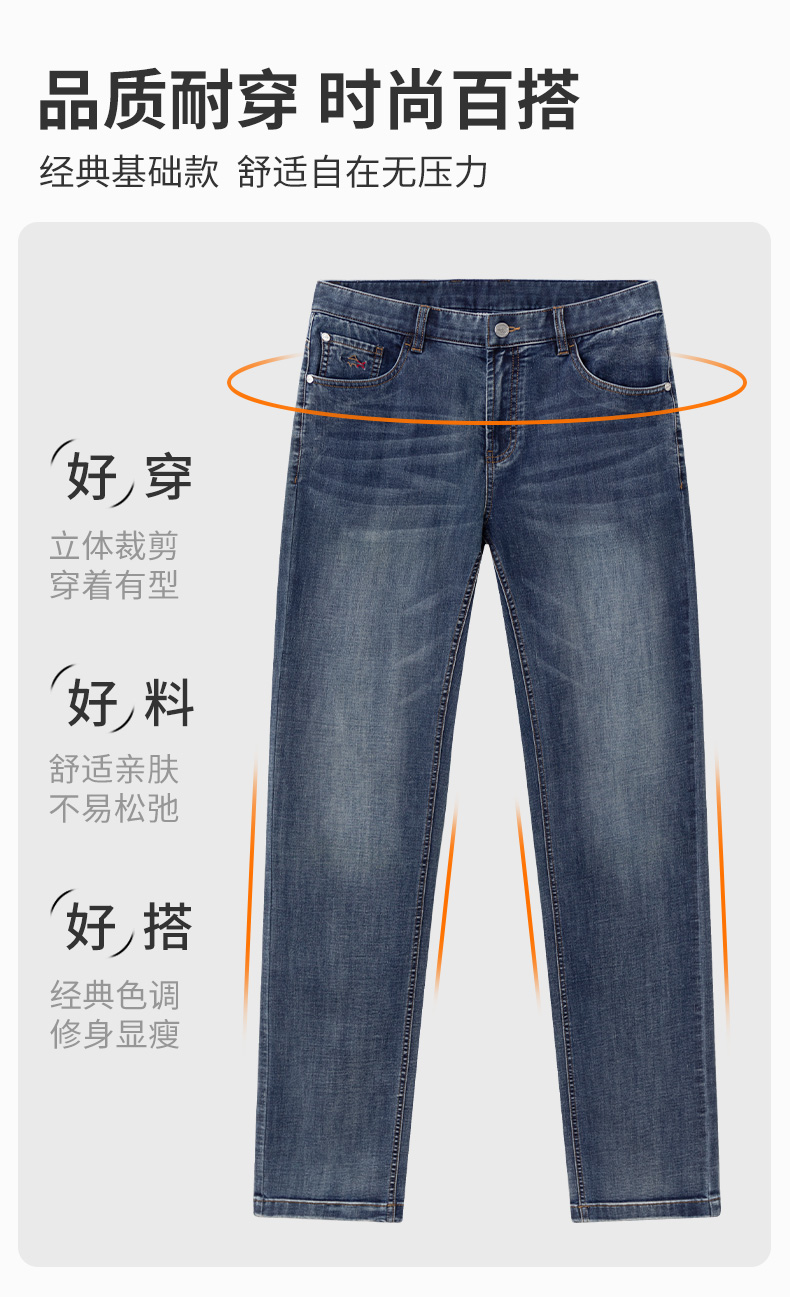 【棉混纺】德鲨男士弹力牛仔裤2026春夏季新品直筒休闲裤子男长裤