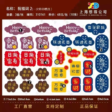 想得 一次性巧克力转印模 祝福词 中号寿字 平安喜乐 大号發字 DIY巧克力模亲子DIY