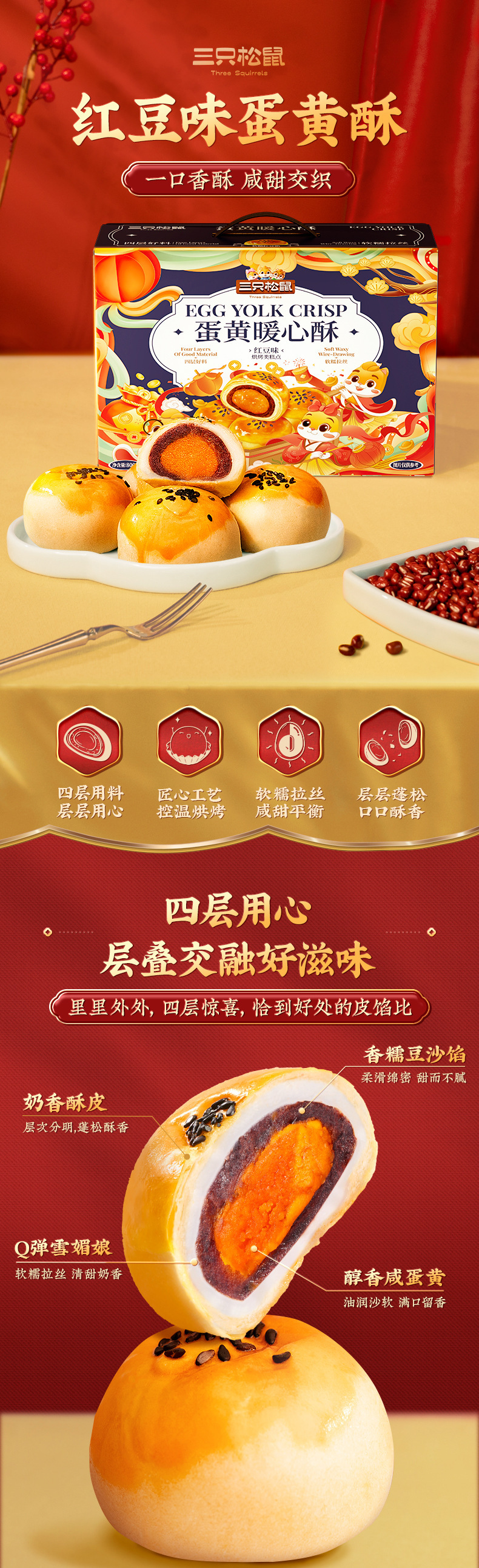 「送礼优选」三只松鼠蛋黄酥800g烘焙糕点礼盒装年货送礼蛋黄酥零食