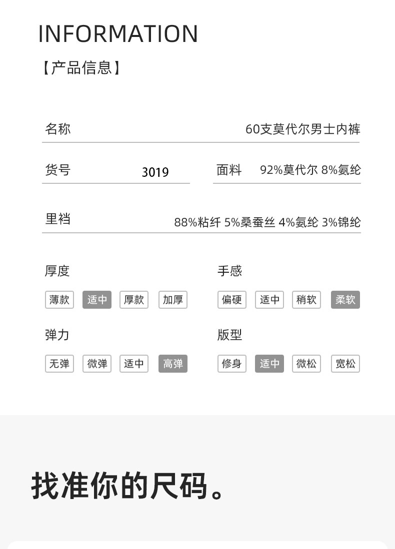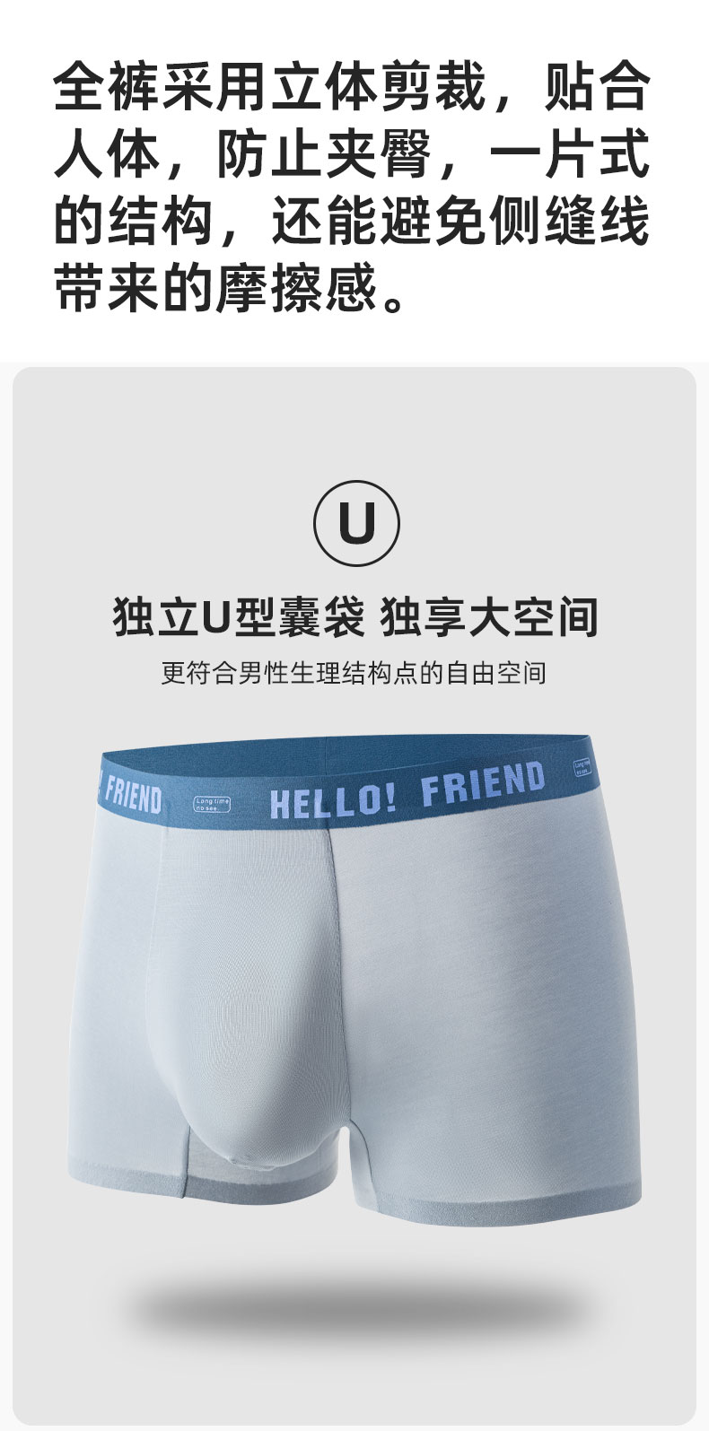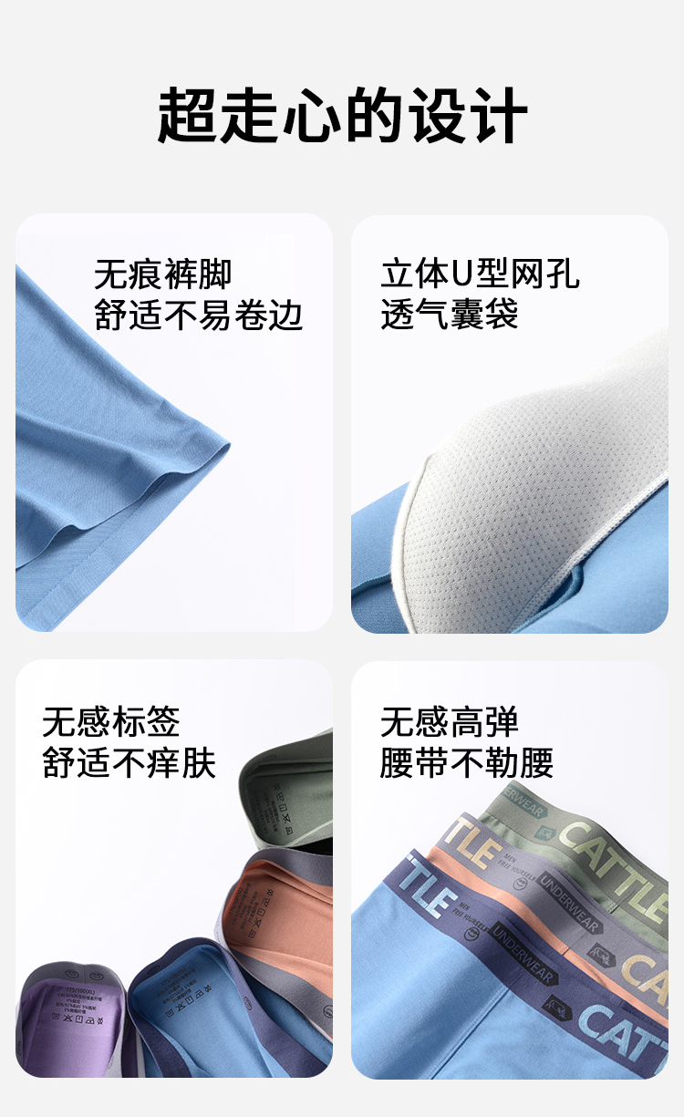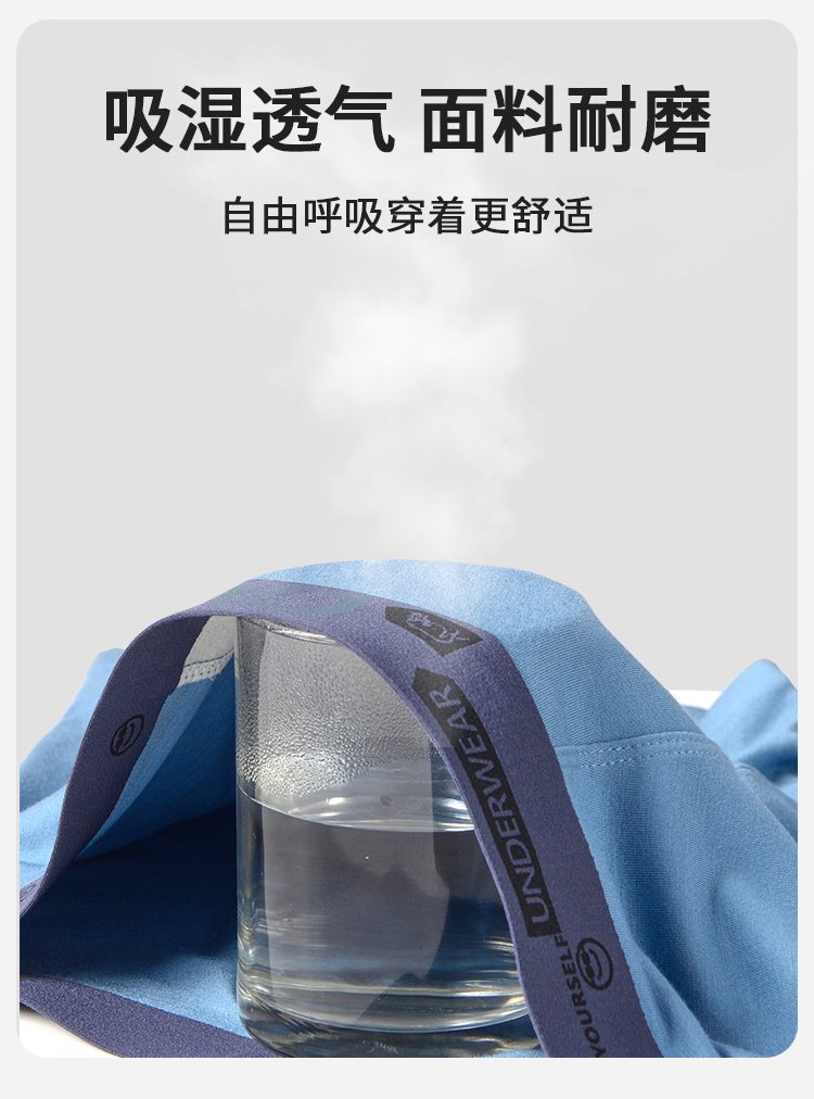 男士60支莫代尔腰头印花无痕好友腰头撞色平角内裤3019/3030