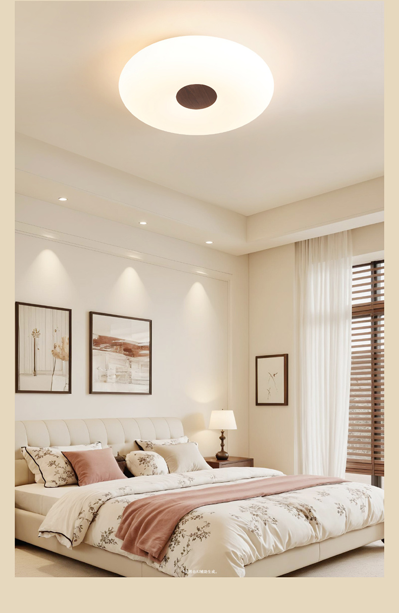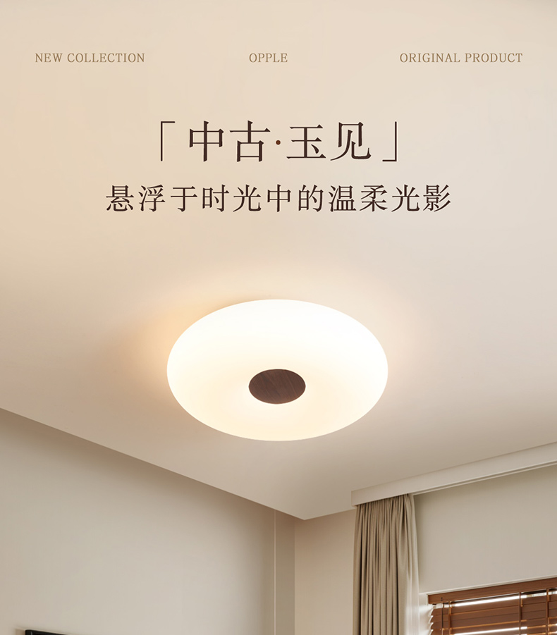欧普(OPPLE)玉见卧中古风室圆形胡桃木色儿童房吸顶灯