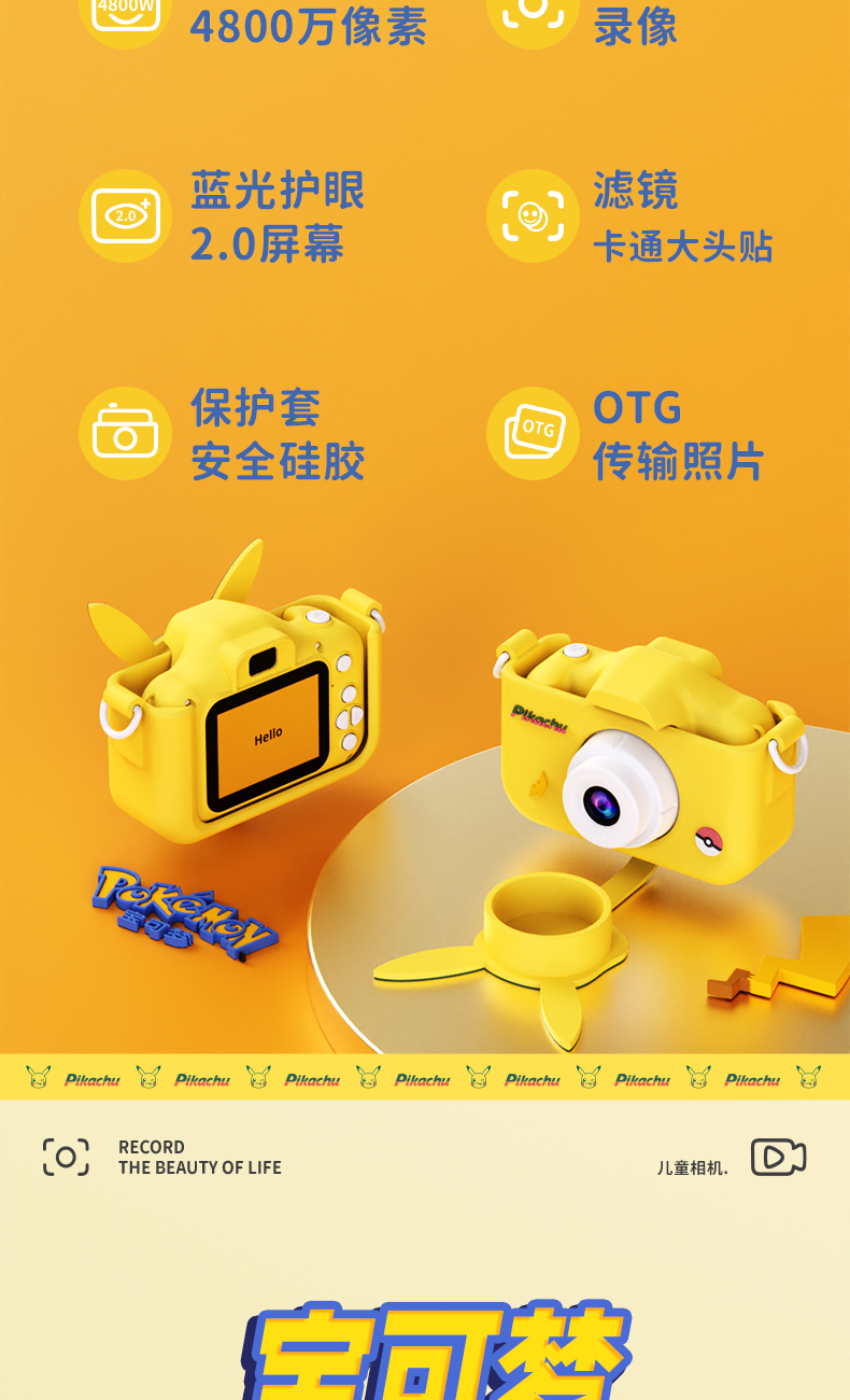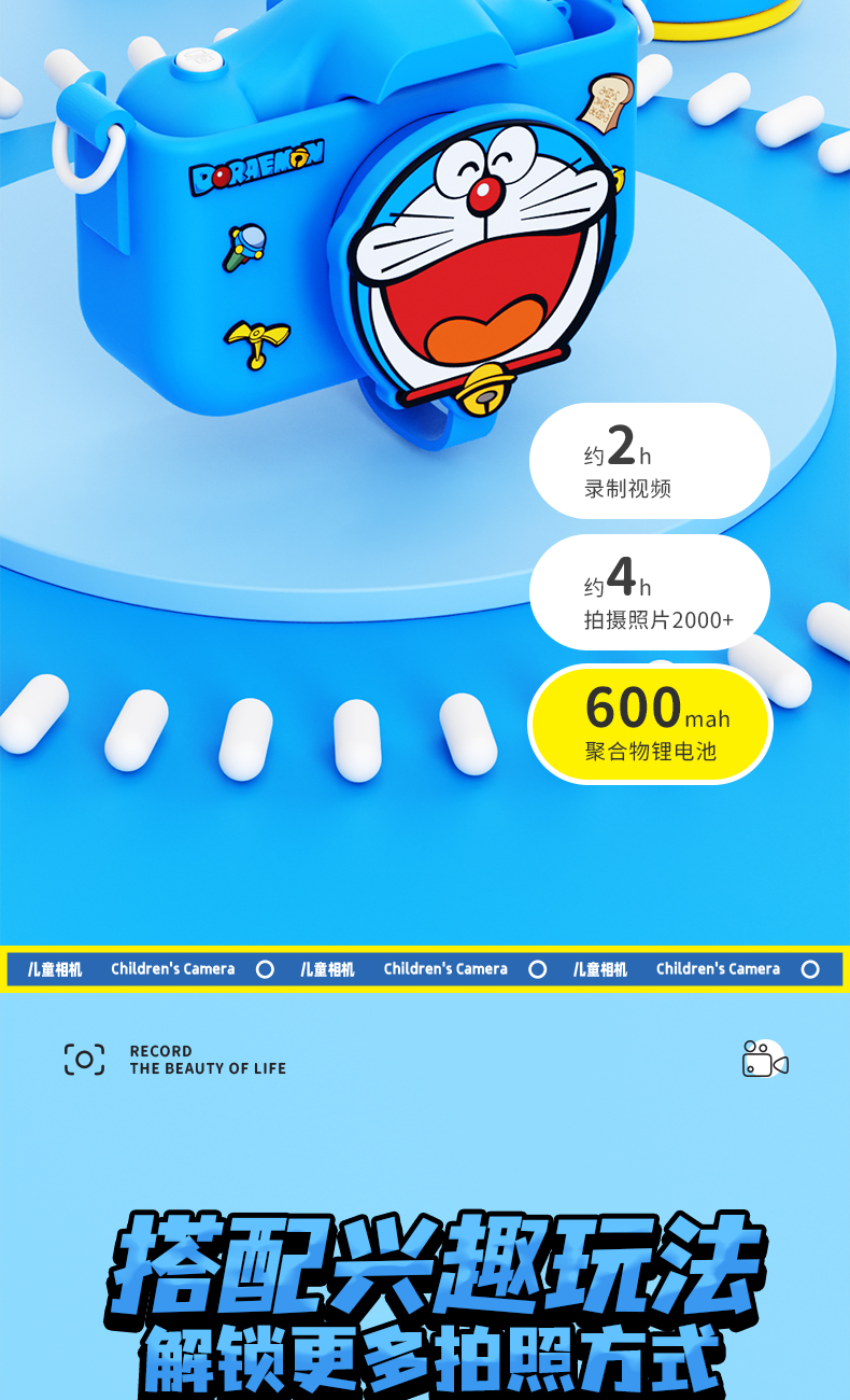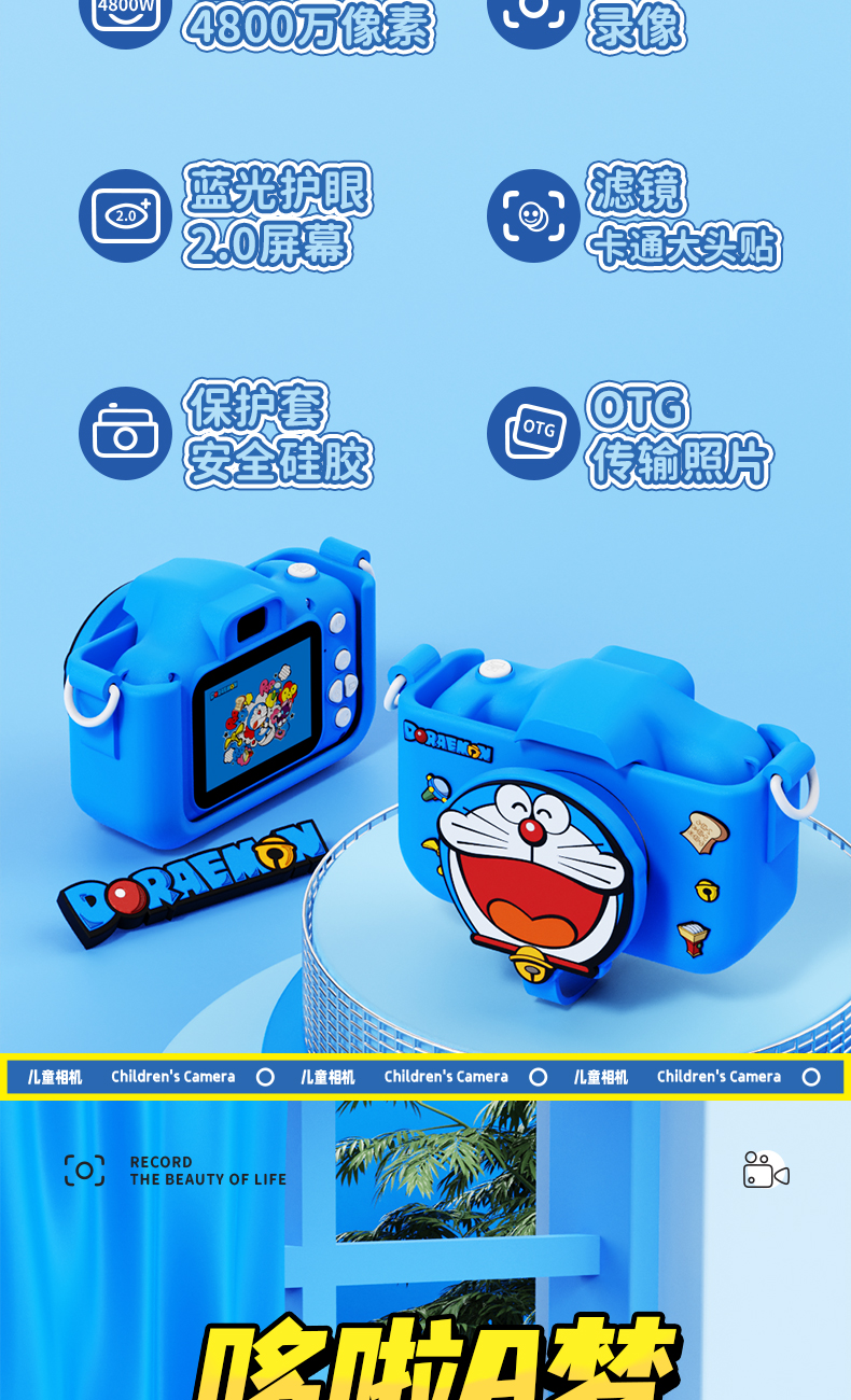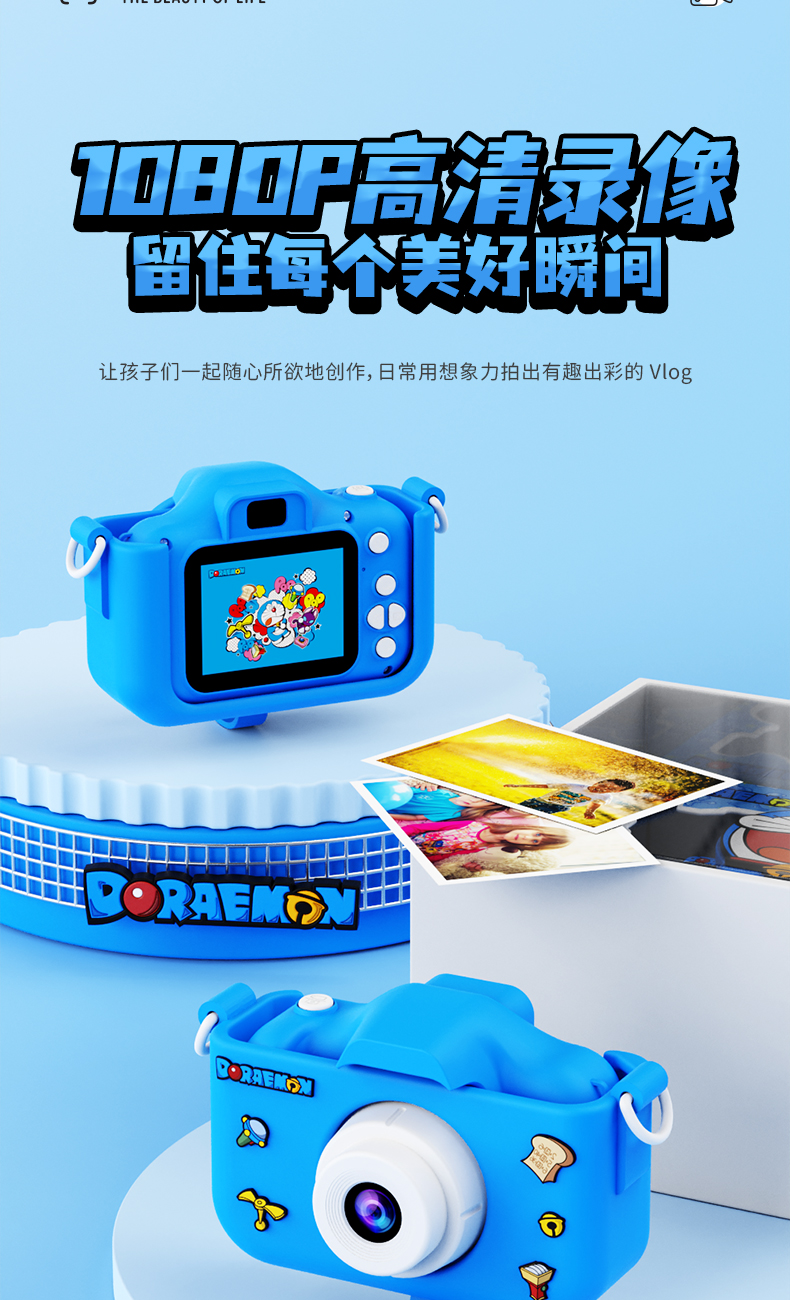 新款宝可梦 奶龙 哆啦A梦儿童数码相机前后双摄4800W像素送64G内存卡
