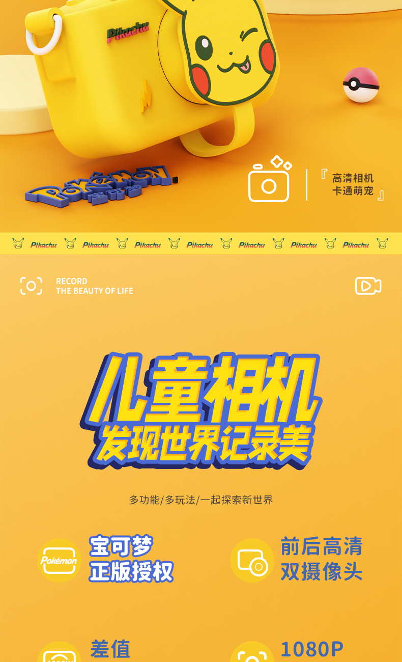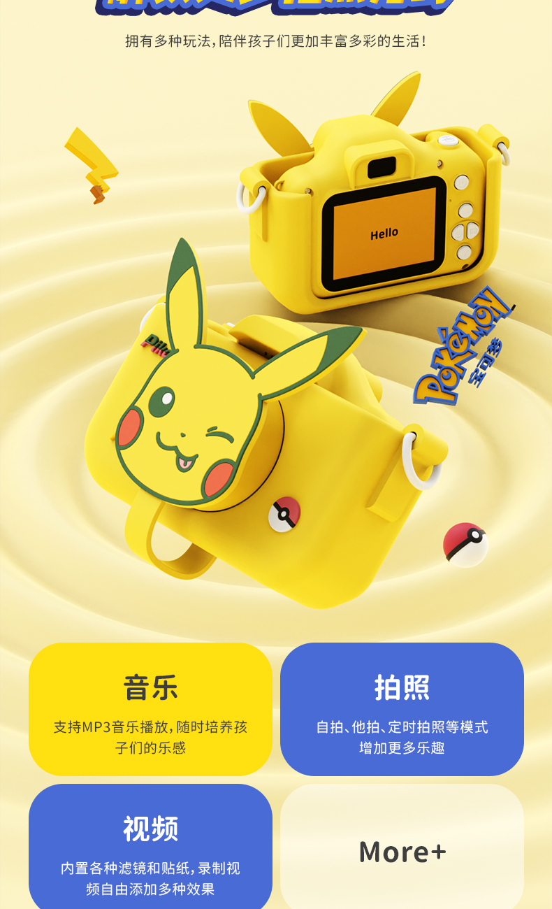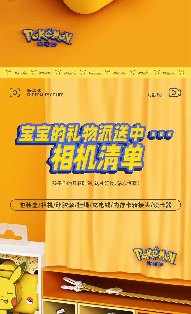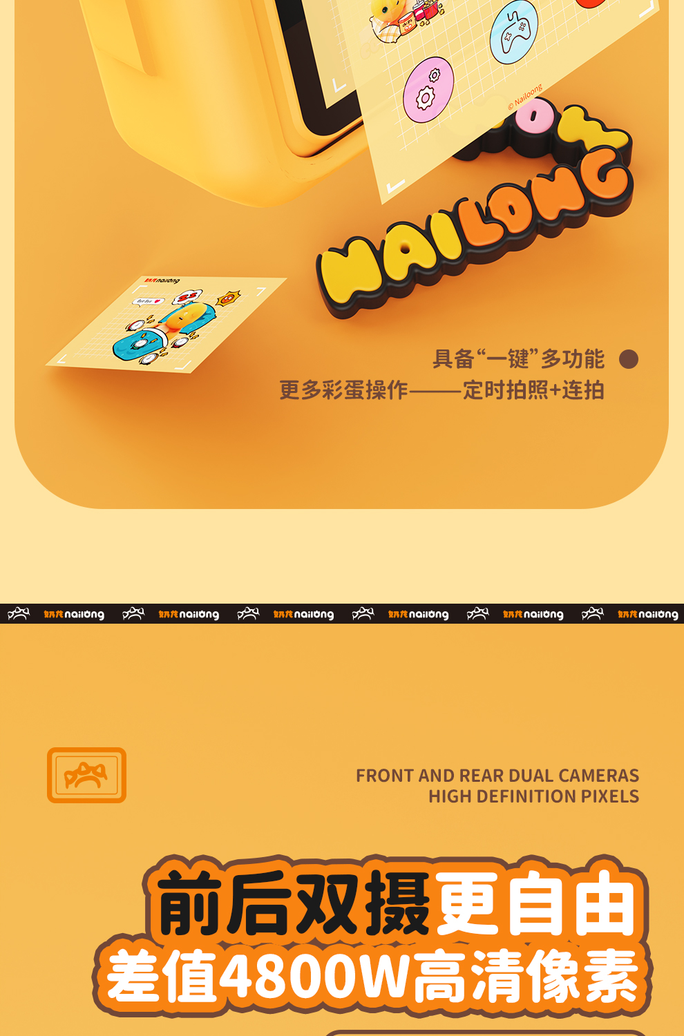 新款宝可梦 奶龙 哆啦A梦儿童数码相机前后双摄4800W像素送64G内存卡