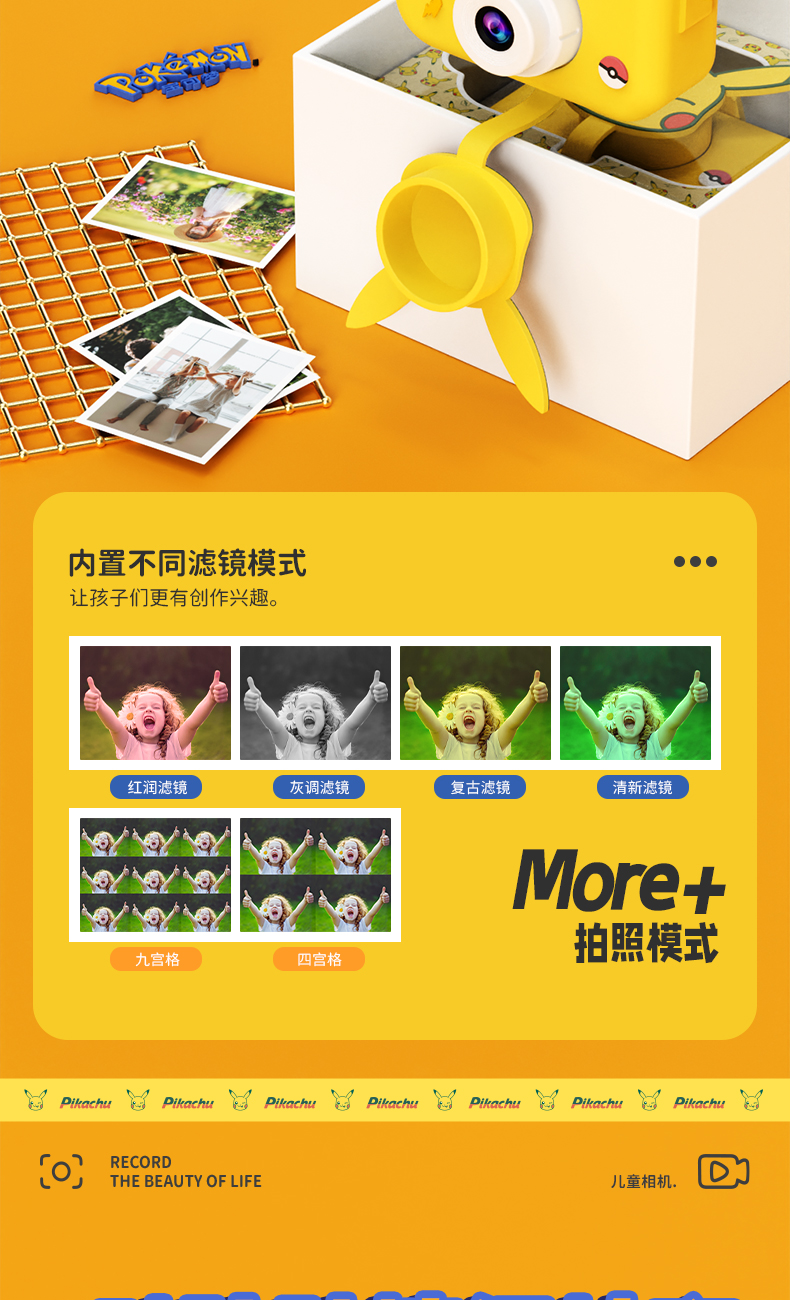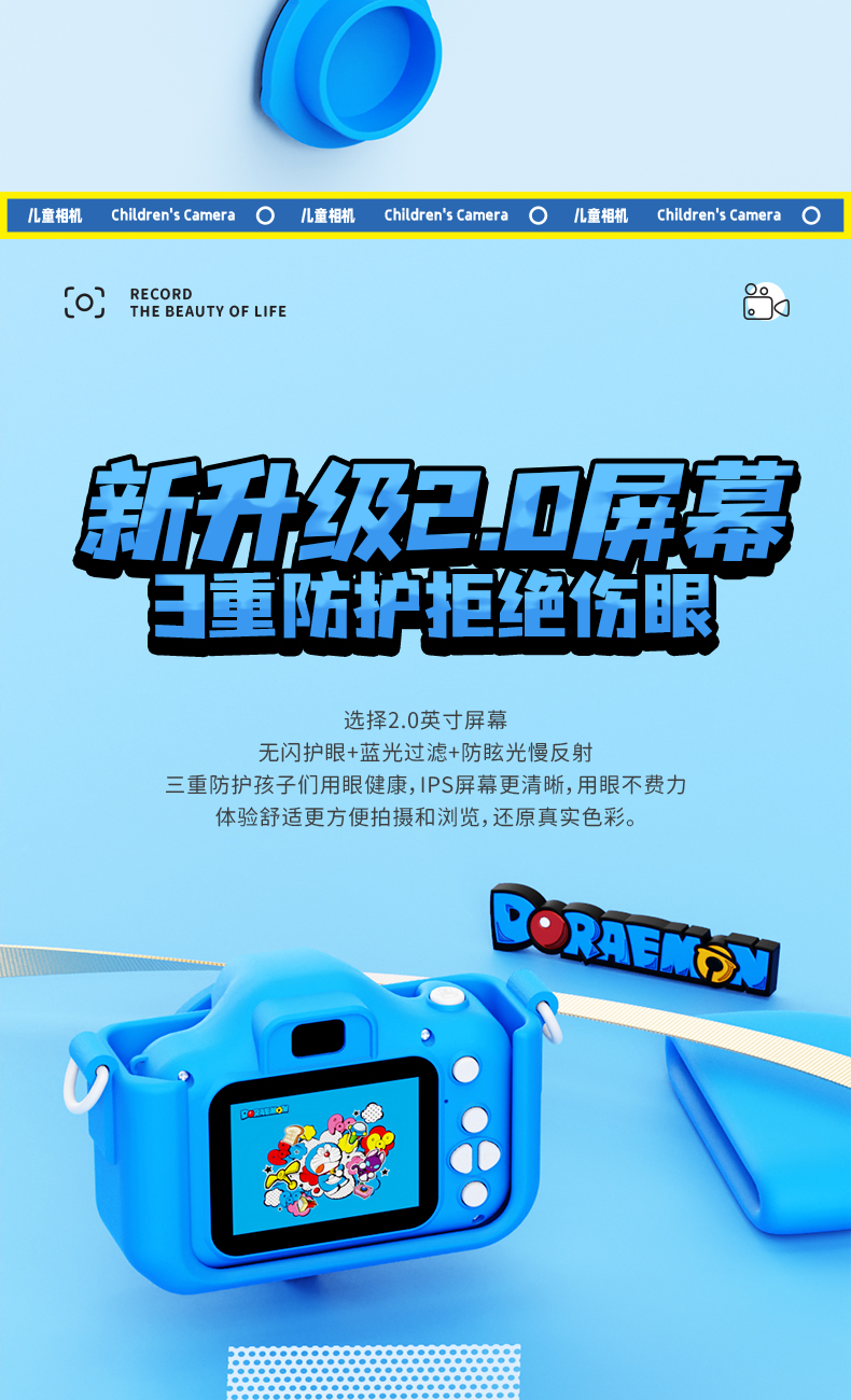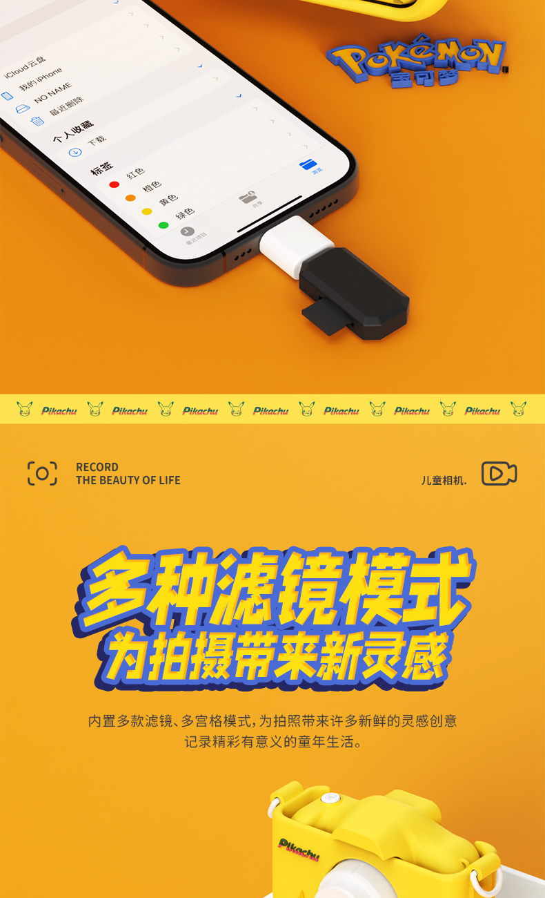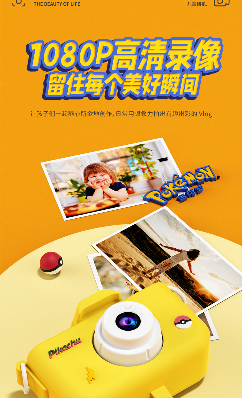 新款宝可梦 奶龙 哆啦A梦儿童数码相机前后双摄4800W像素送64G内存卡
