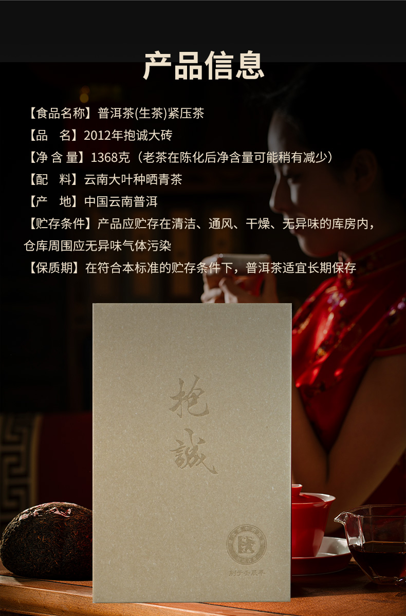澜沧古茶2012年抱诚大砖易武春茶1368g