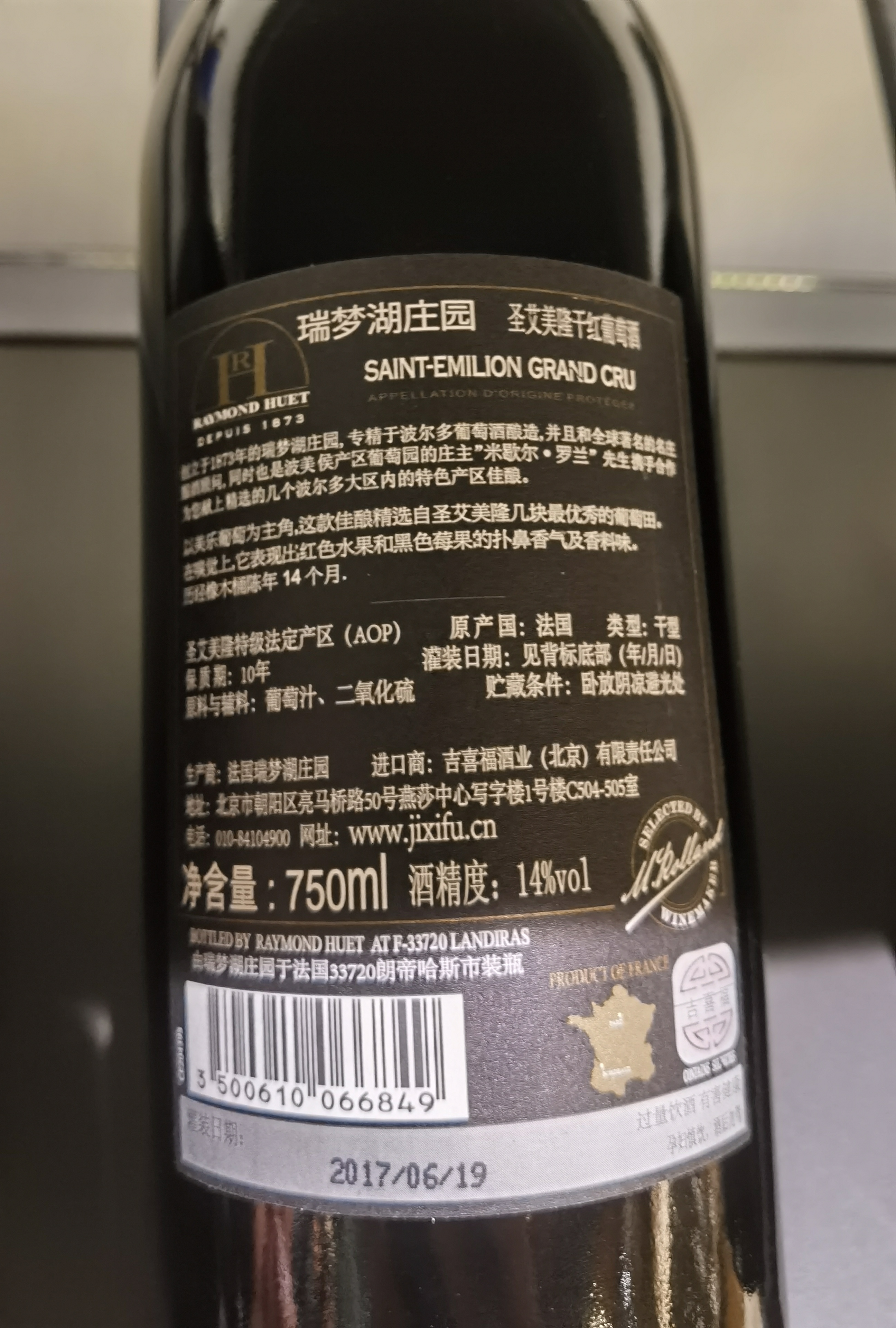 法国瑞梦湖庄园圣艾美隆干红葡萄酒750ml【本商城规格1件即为1瓶】