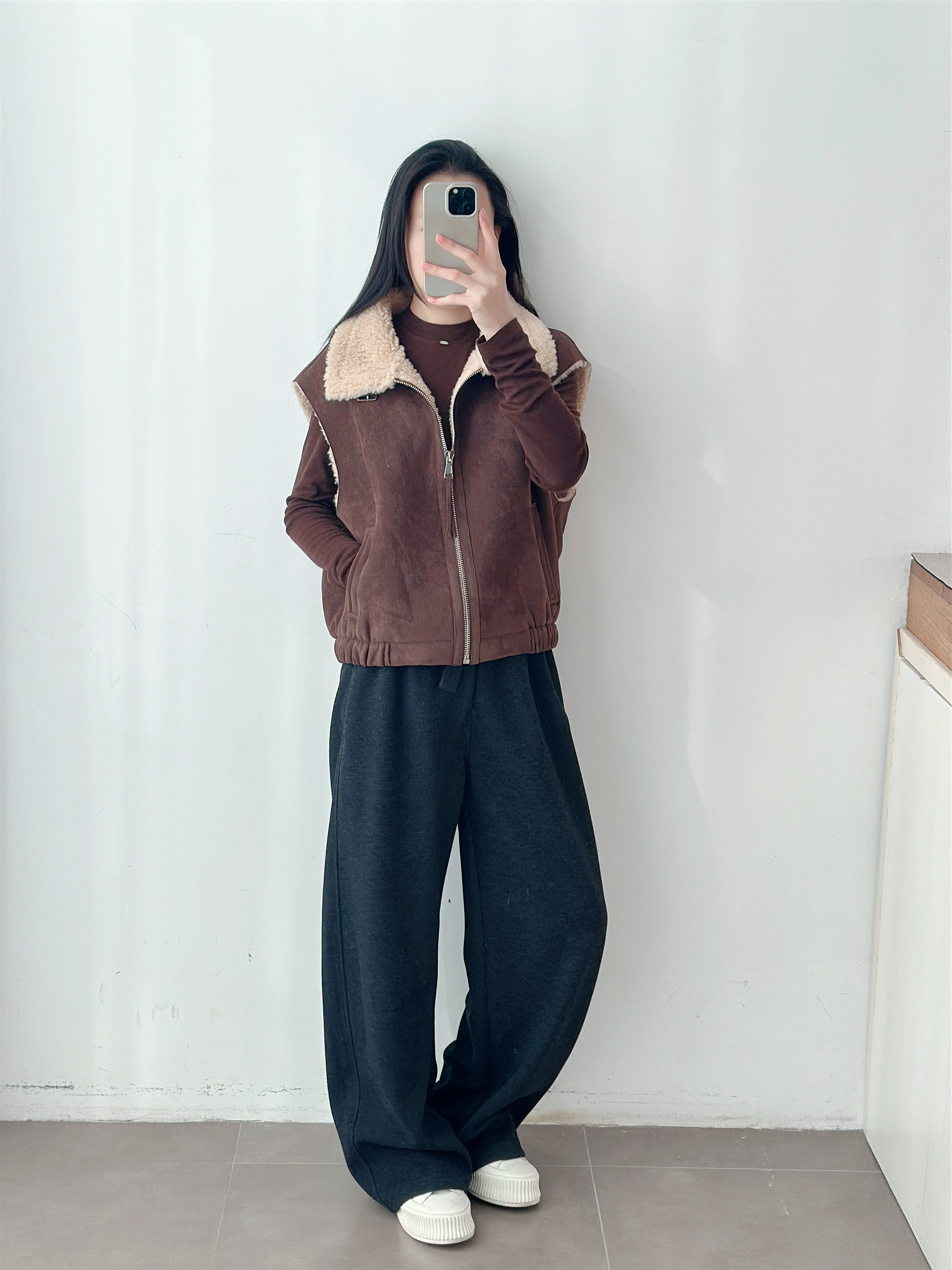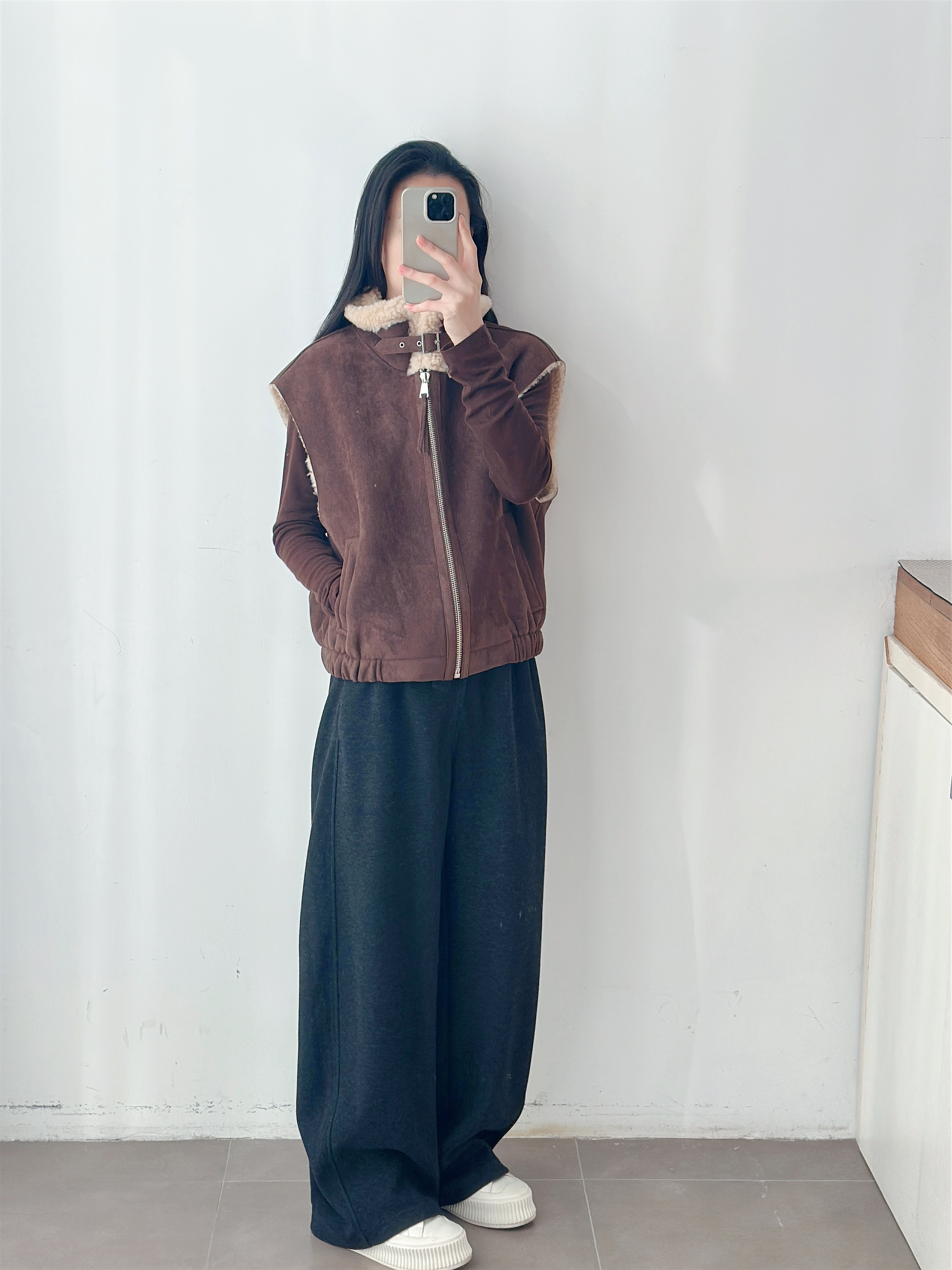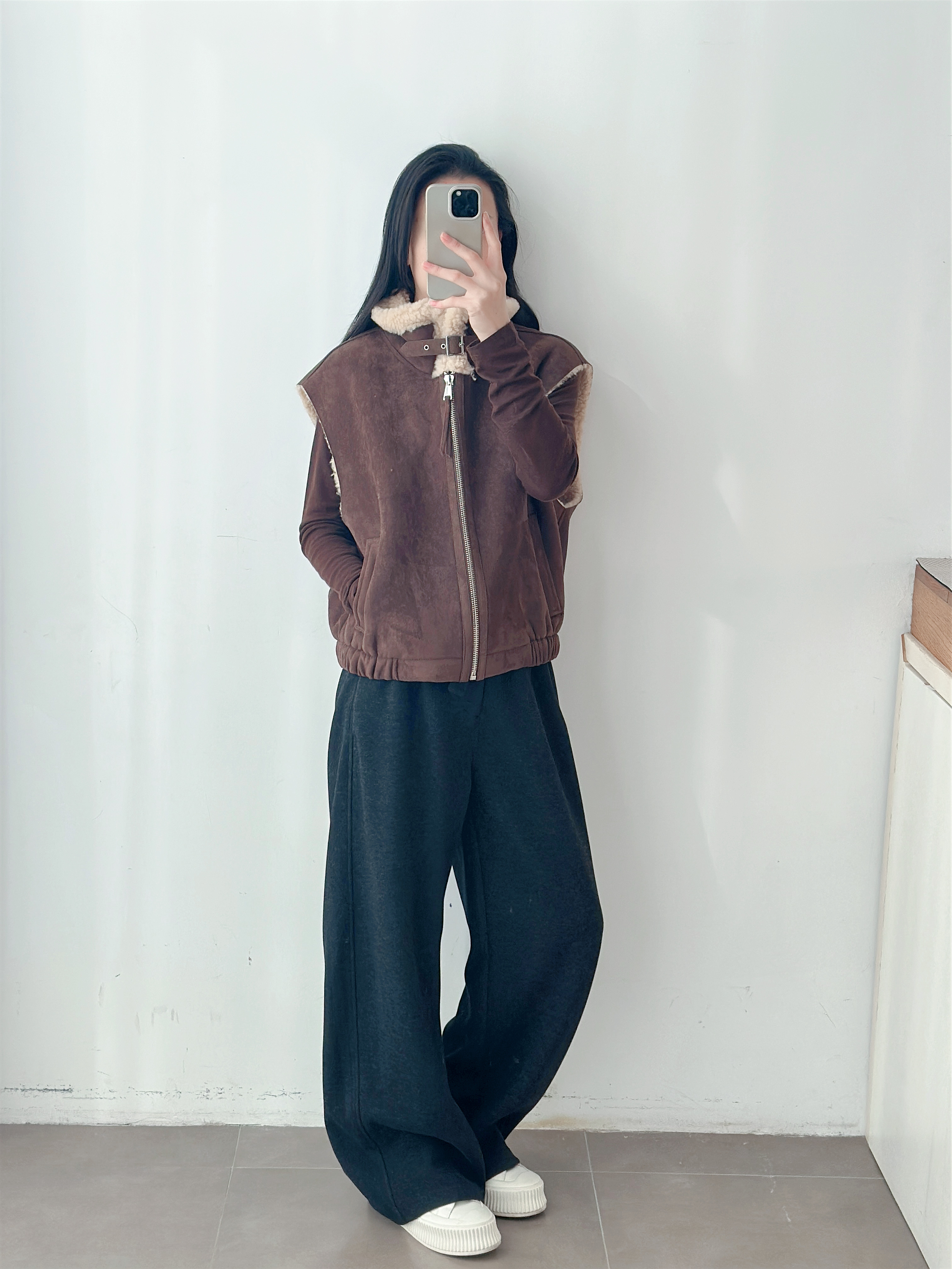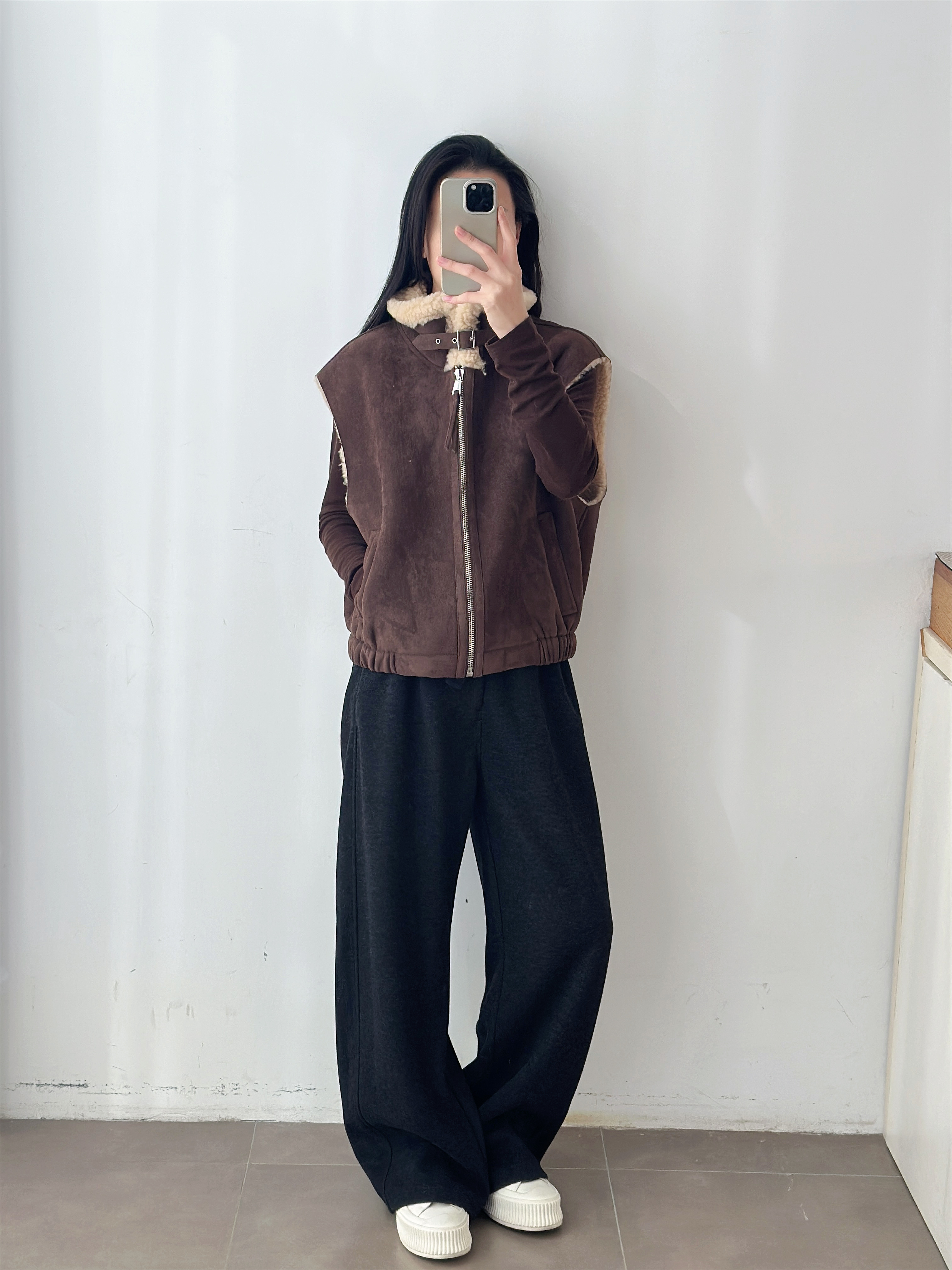 绵羊毛皮毛一体马甲女厚实绒毛感复古麂皮绒马夹外套