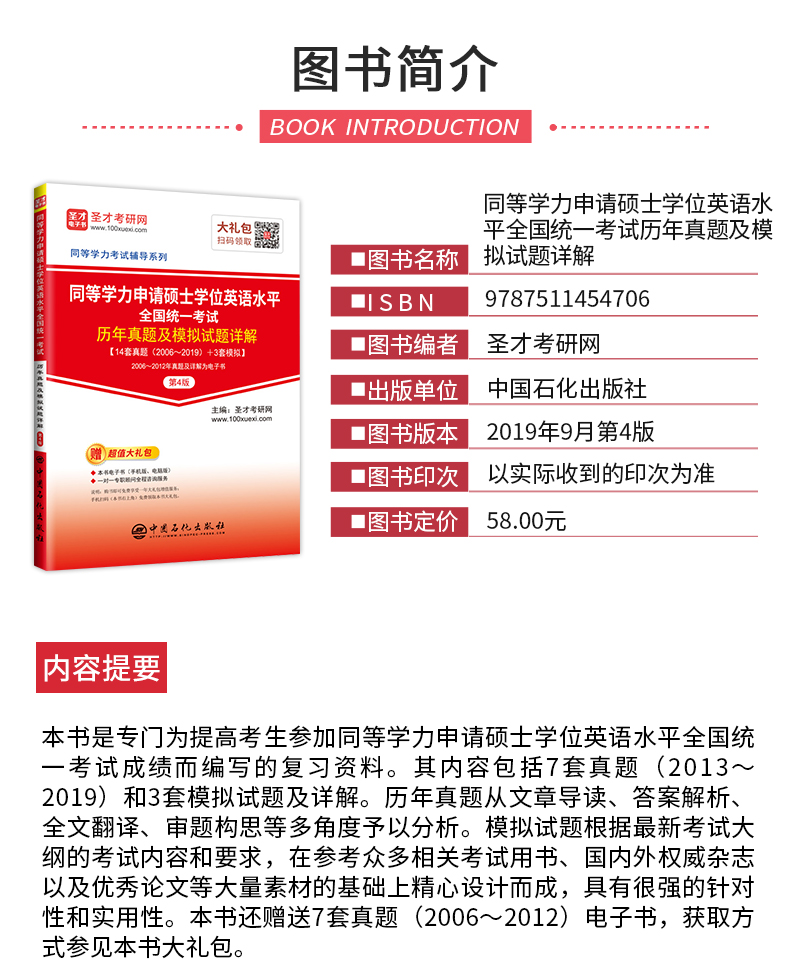 【旗舰店】同等学力申请硕士学位英语水平全国统一考试 历年真题及模拟试题详解 第4版 考研英语硕士英语一考研真题试卷词汇书籍