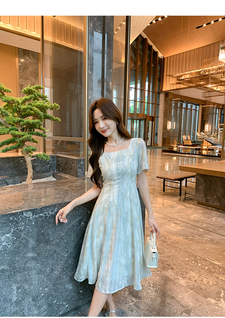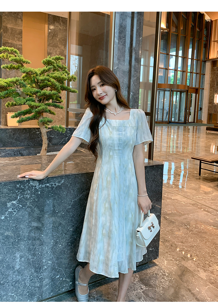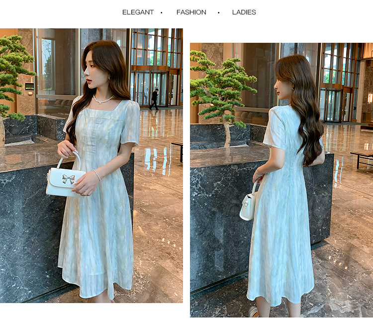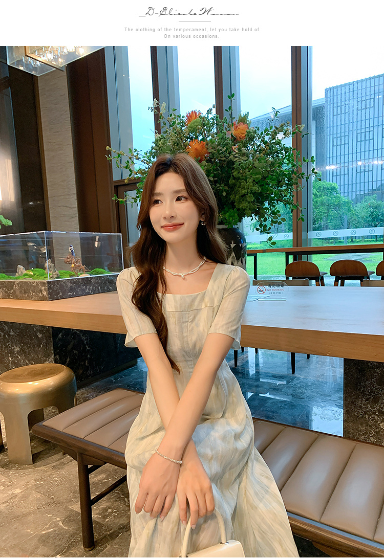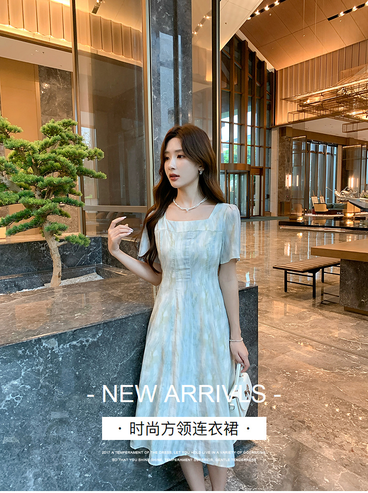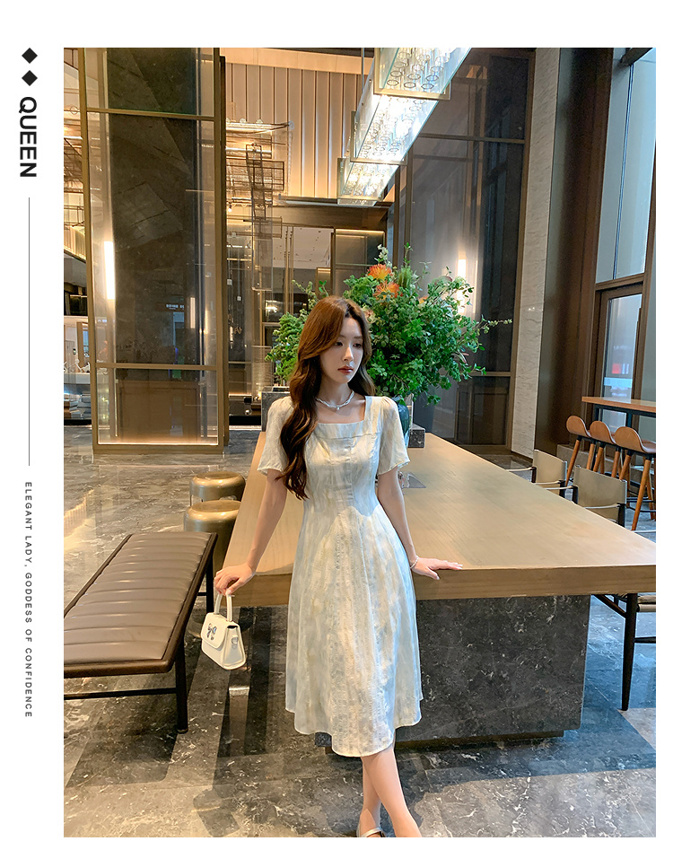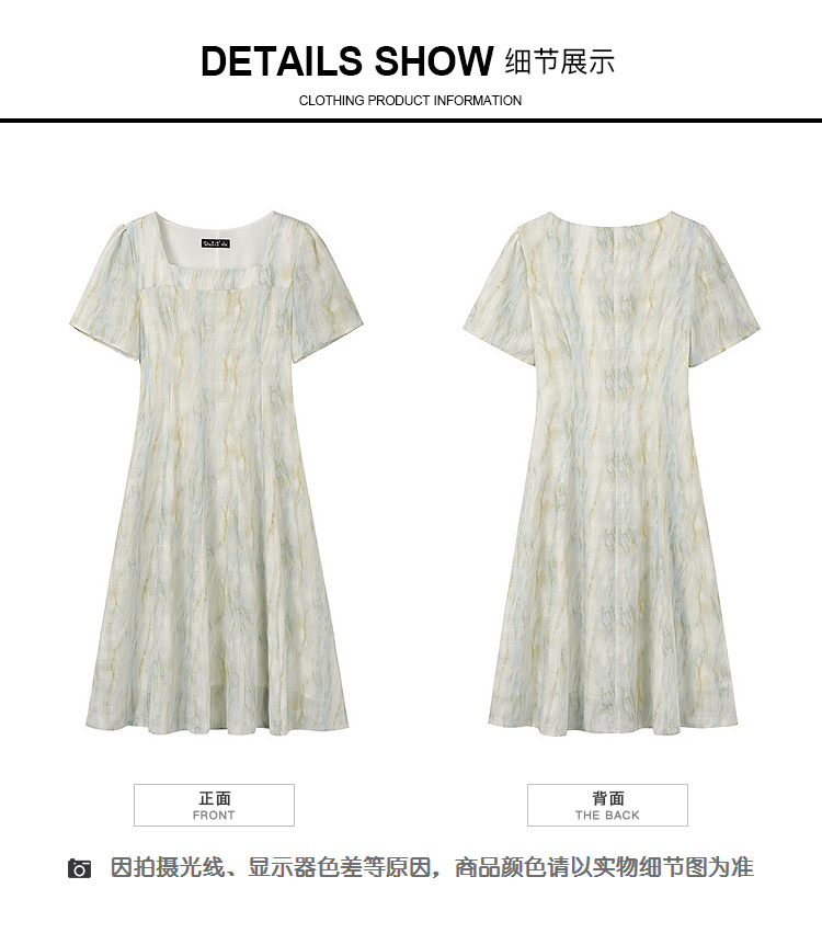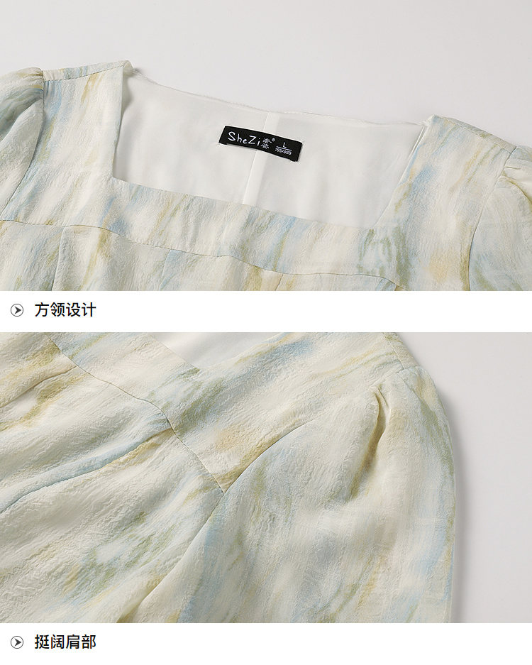 奢姿大码女装2025夏季方领设计轻奢时尚连衣裙胖妹妹减龄印花裙子9952890625