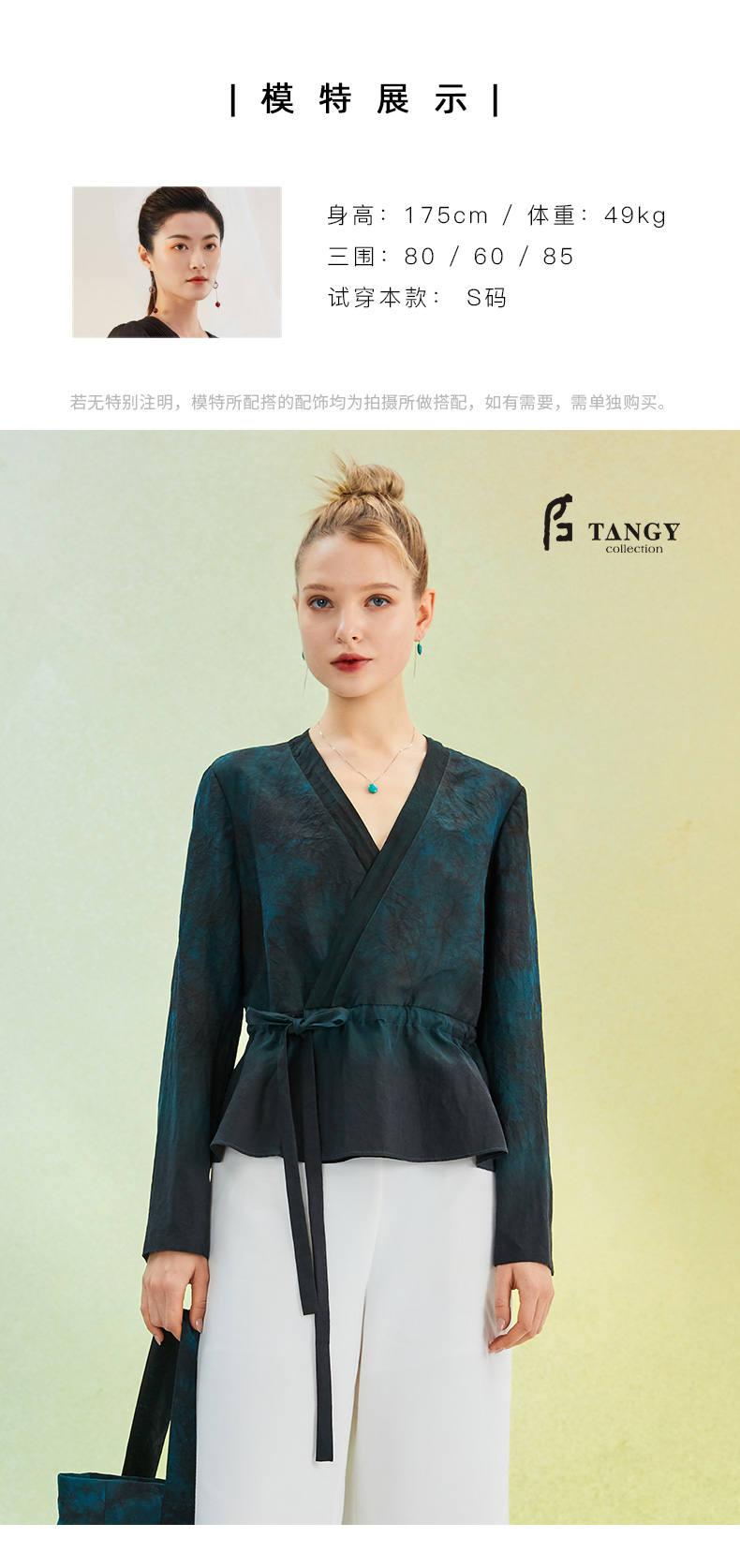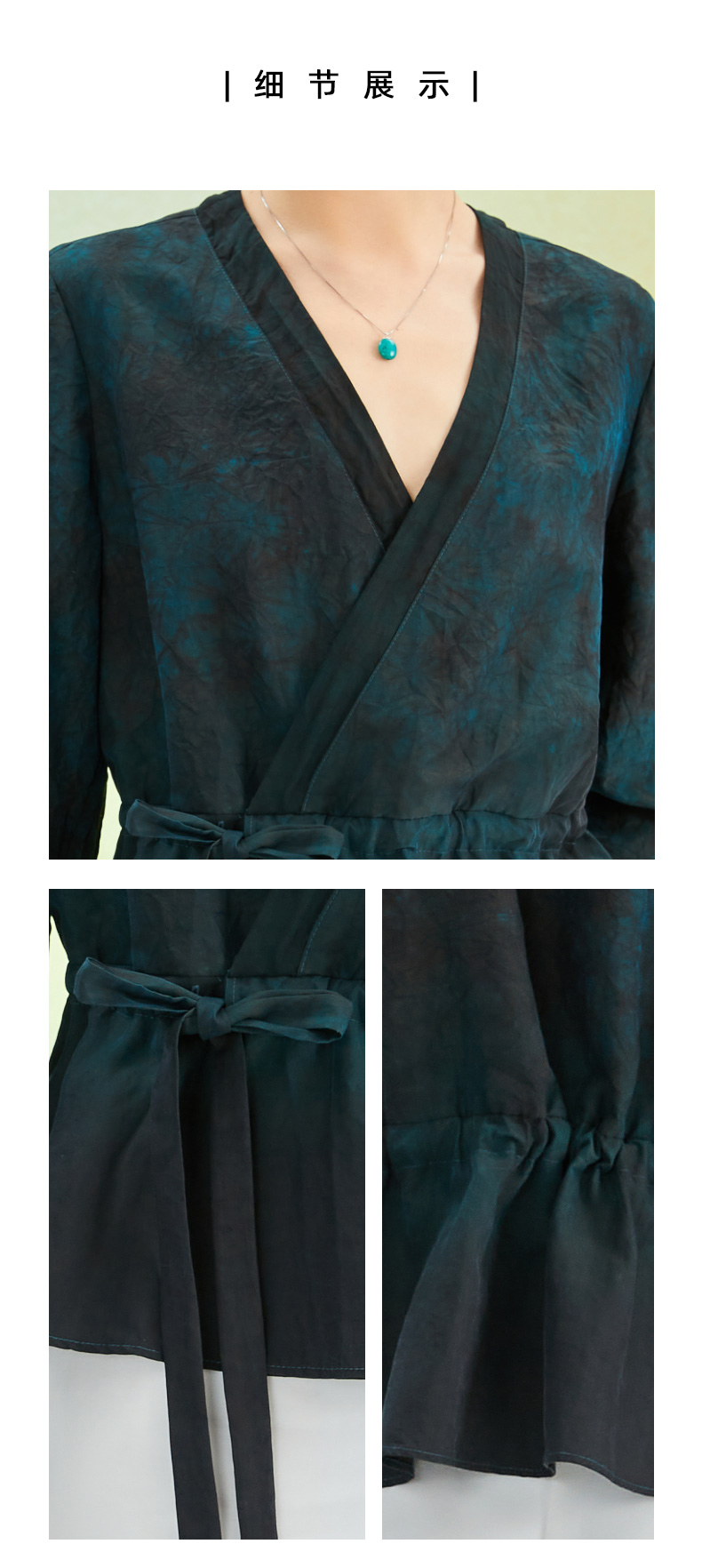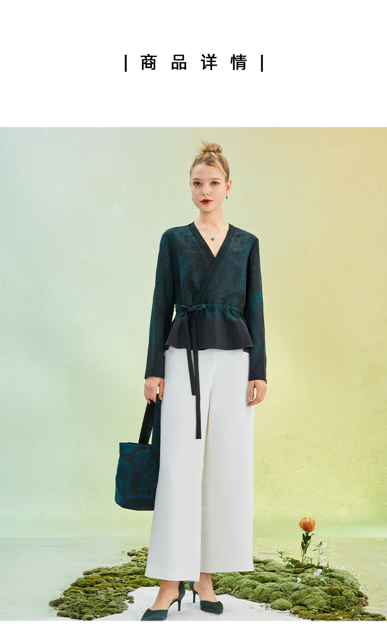 TANGY Collection/天意精品2022年春夏新品抽带收腰V领手工印染莨绸短外套