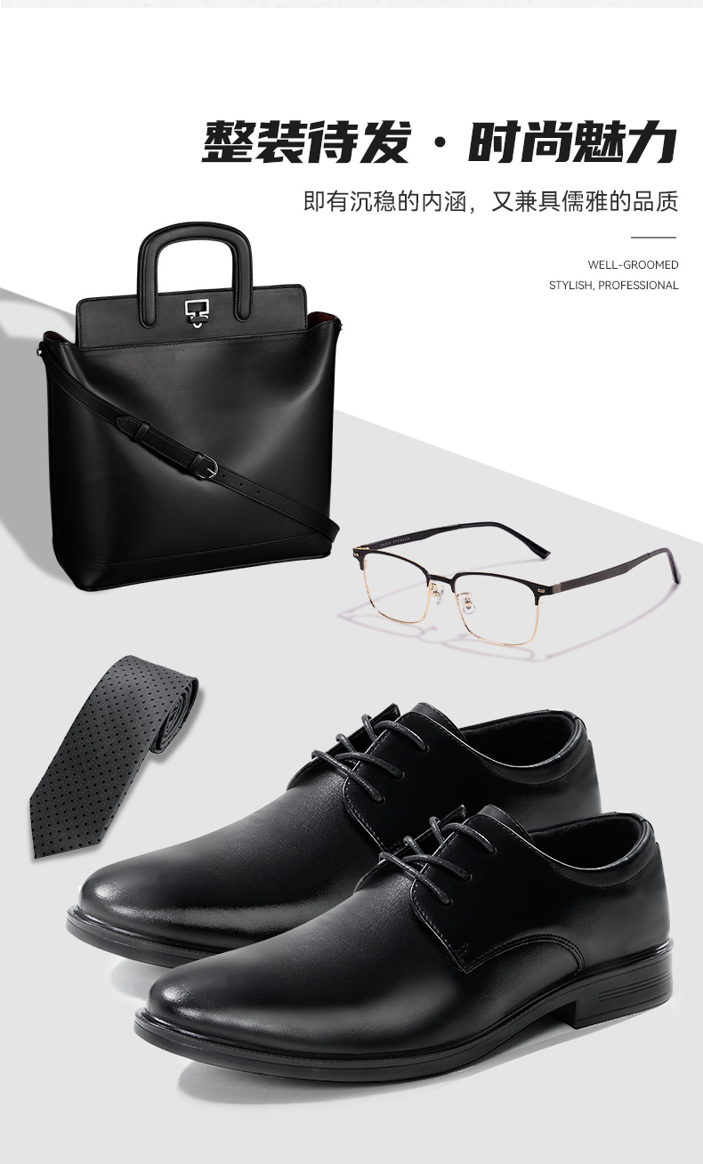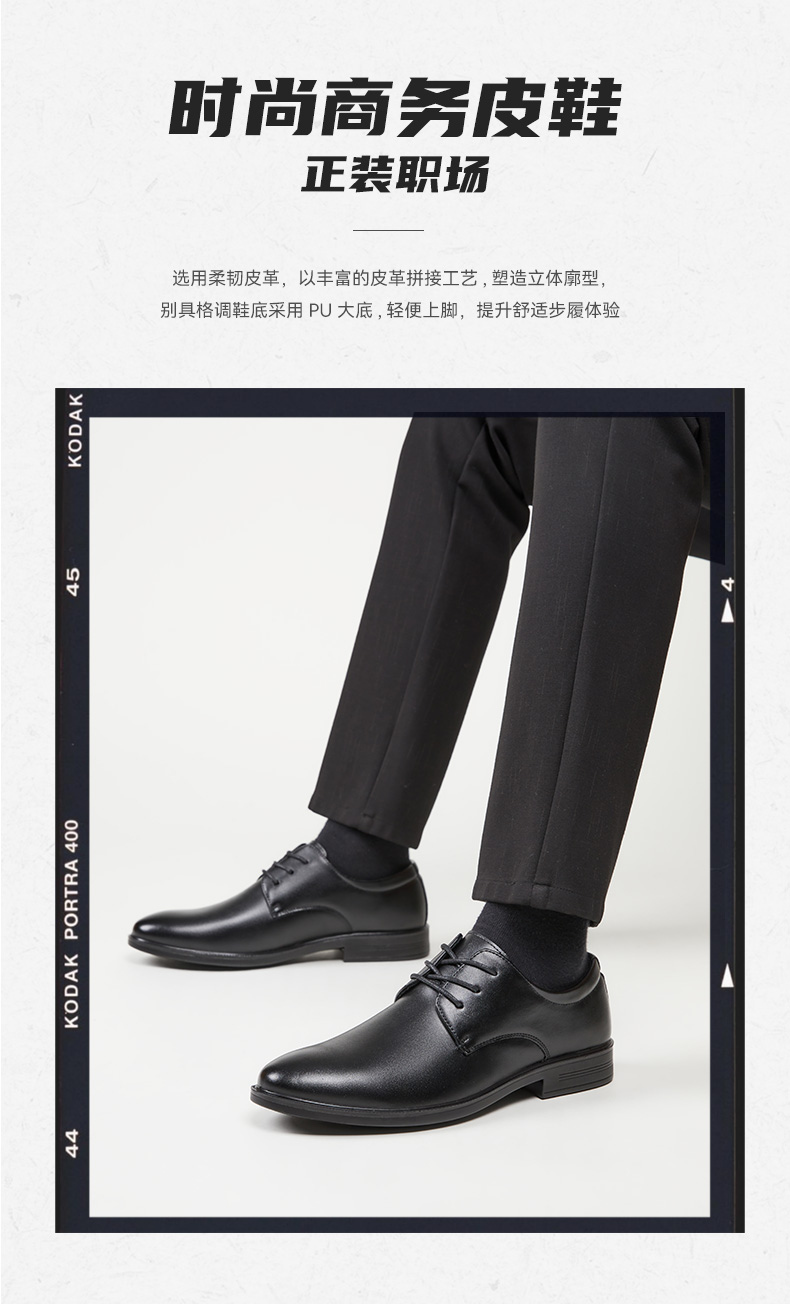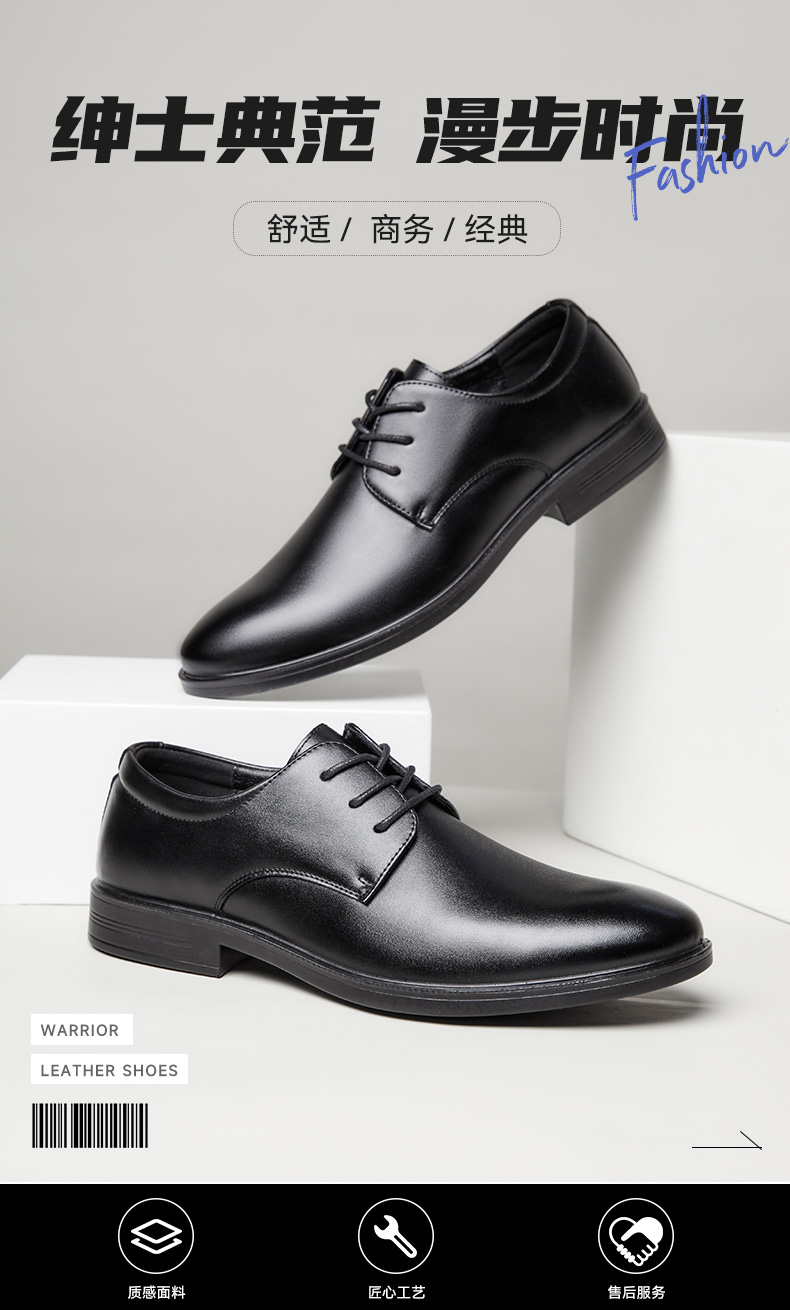 回力皮鞋男款英伦春季商务正装上班休闲皮鞋男士软底黑色结婚鞋子