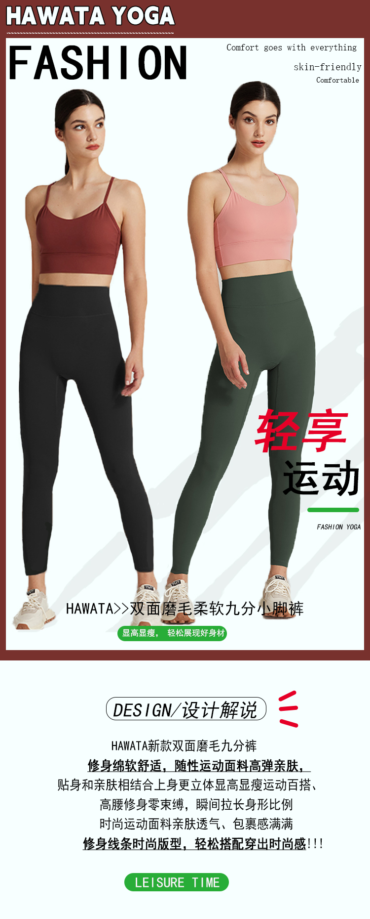 哈瓦塔福利双面磨毛柔软九分小脚裤H321126