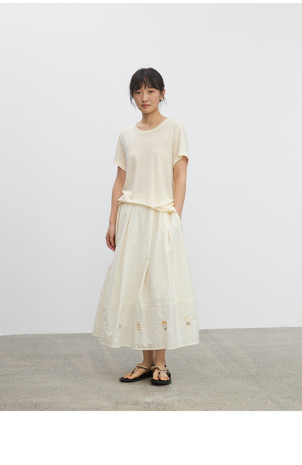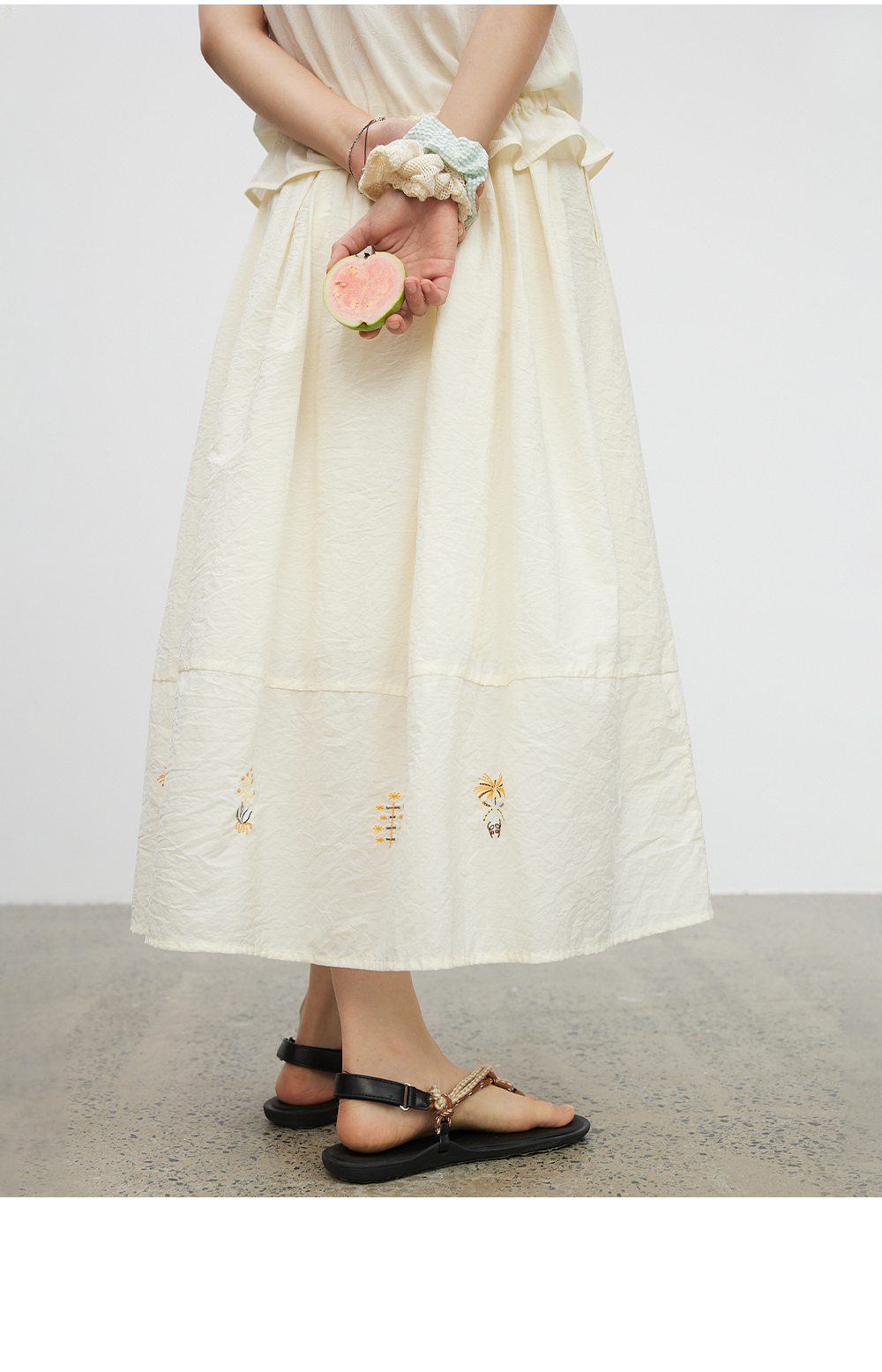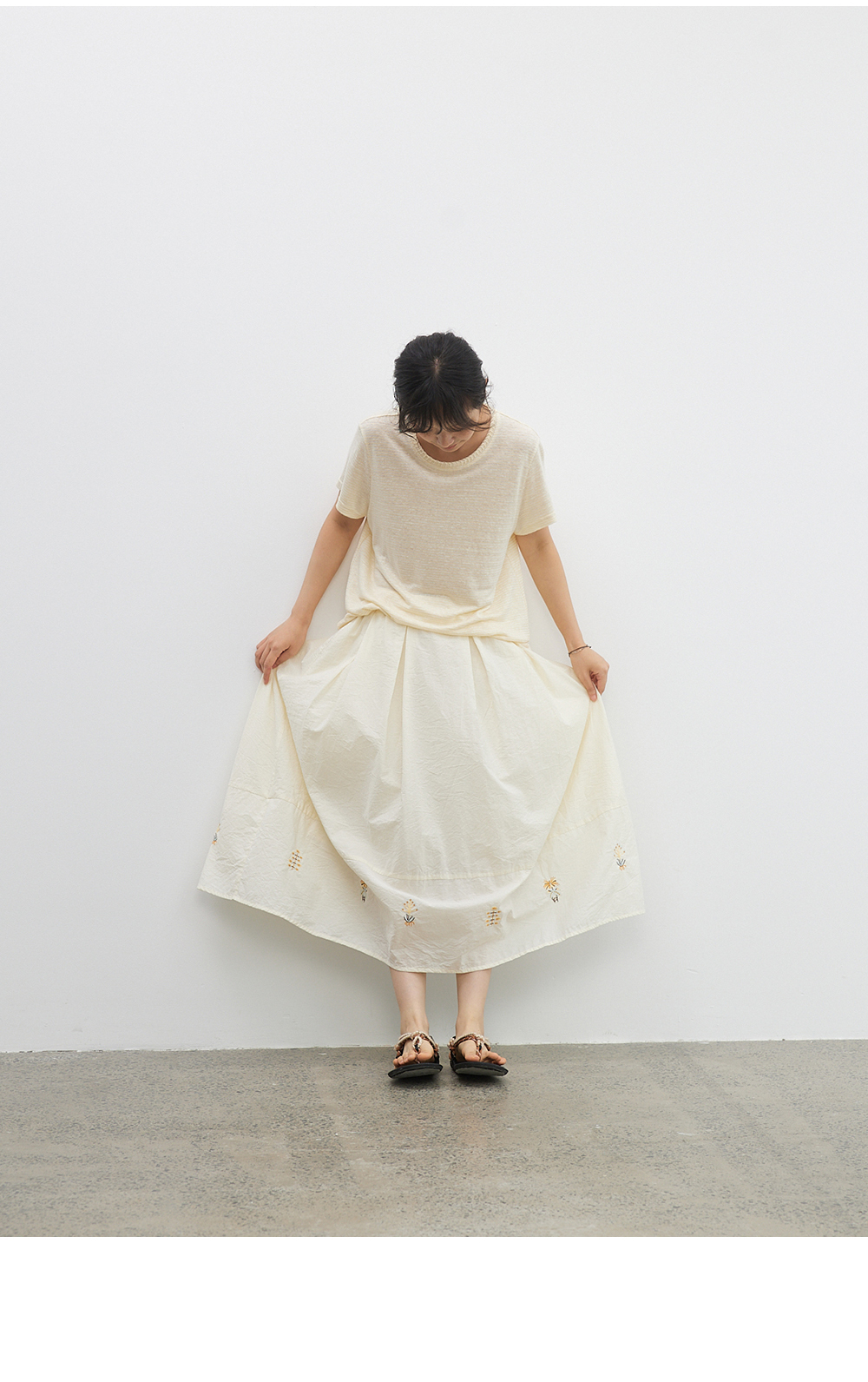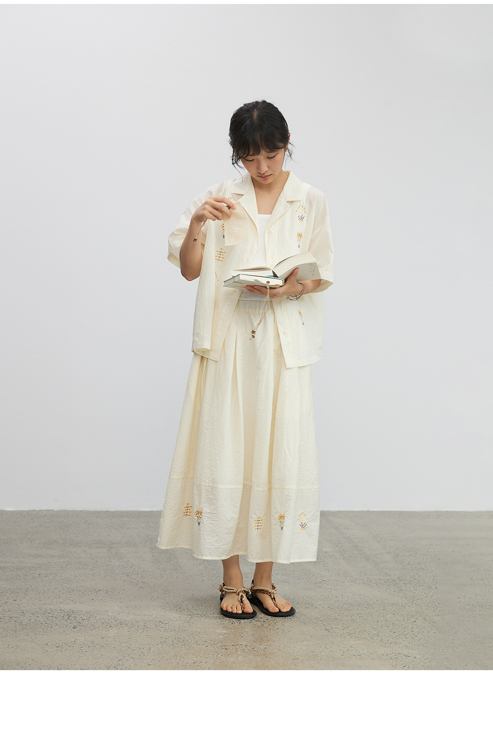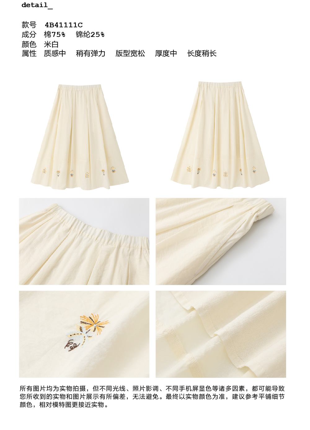 步履不停/4B41111C/文艺风米白色A型绣花半裙