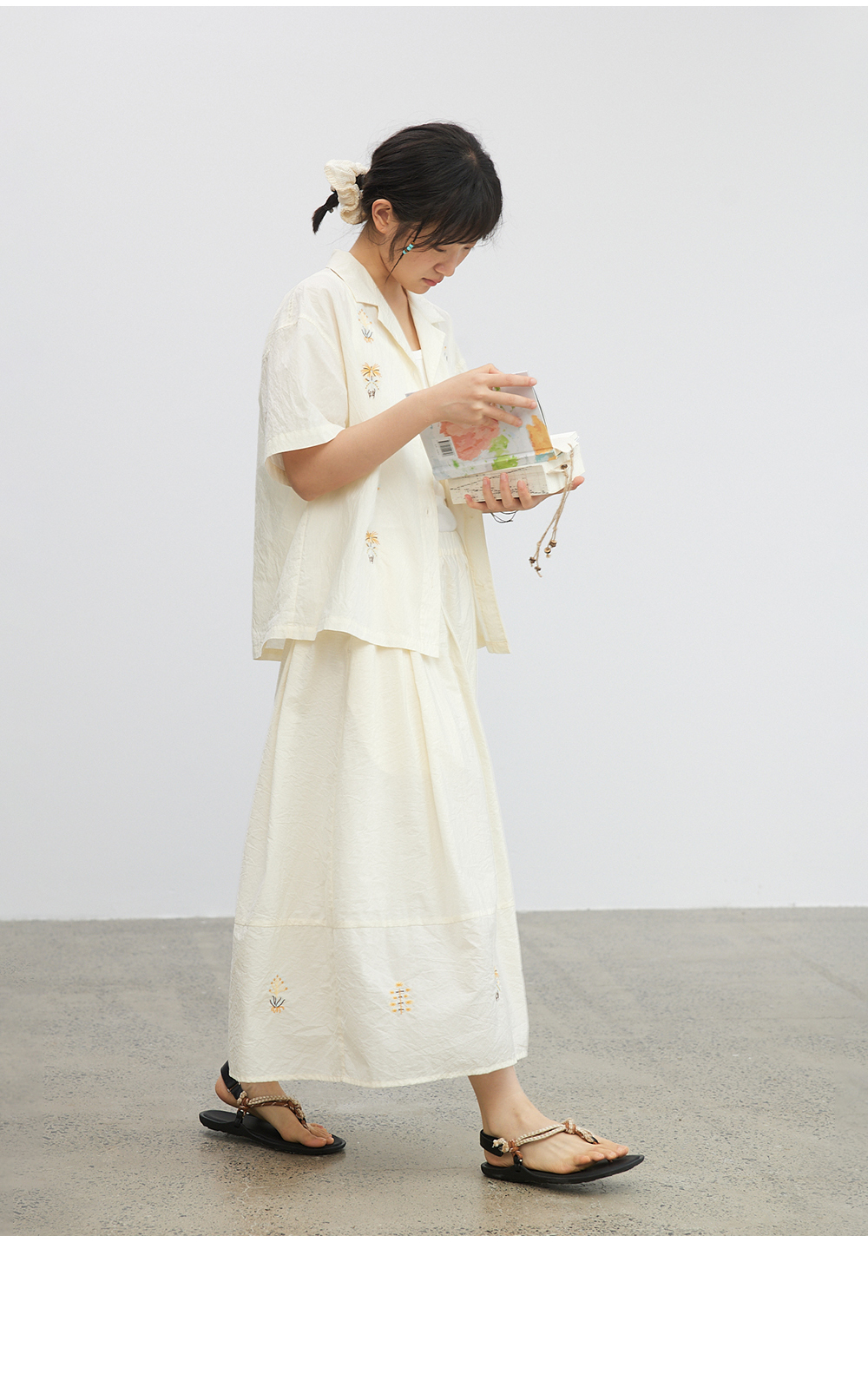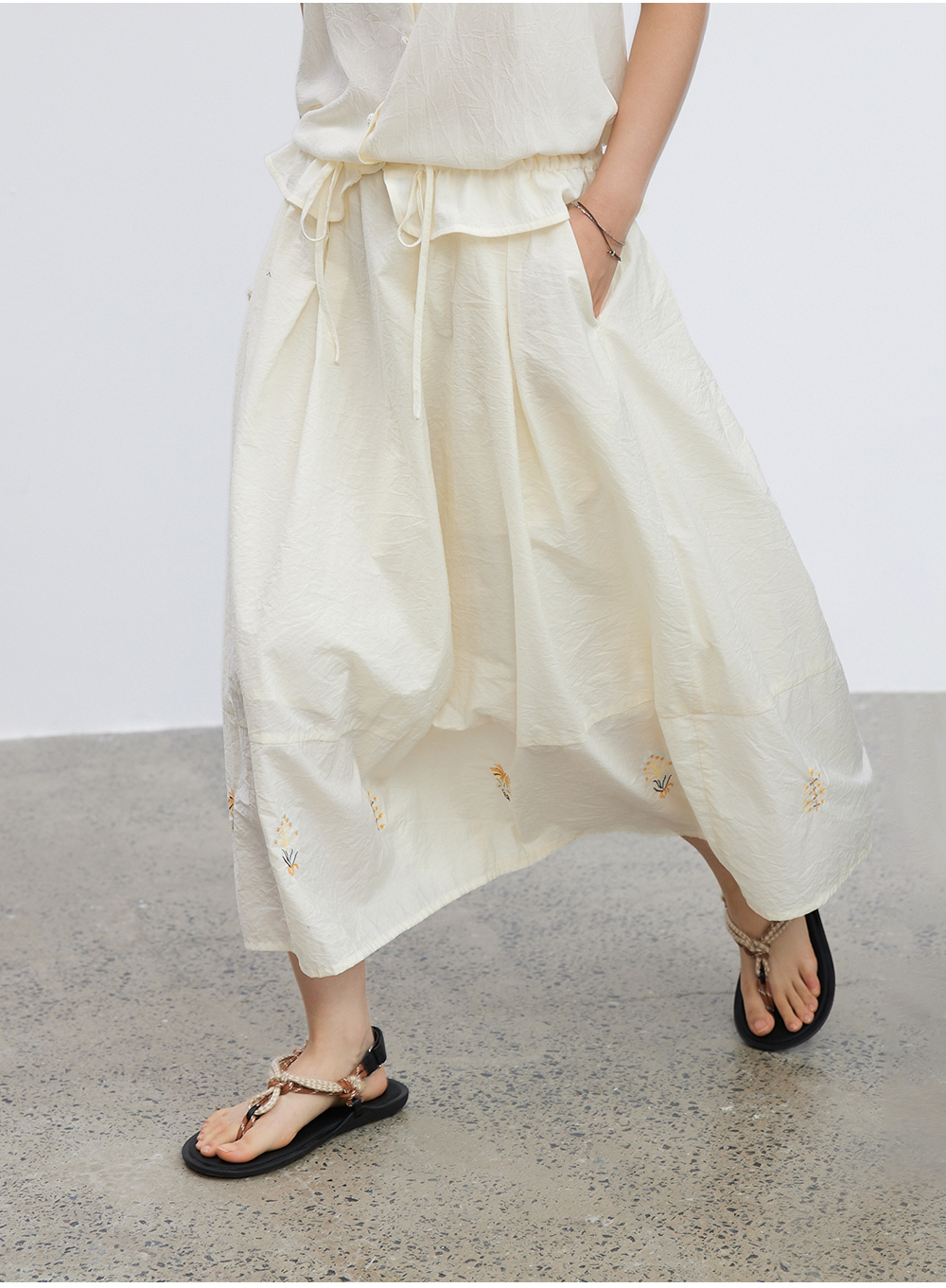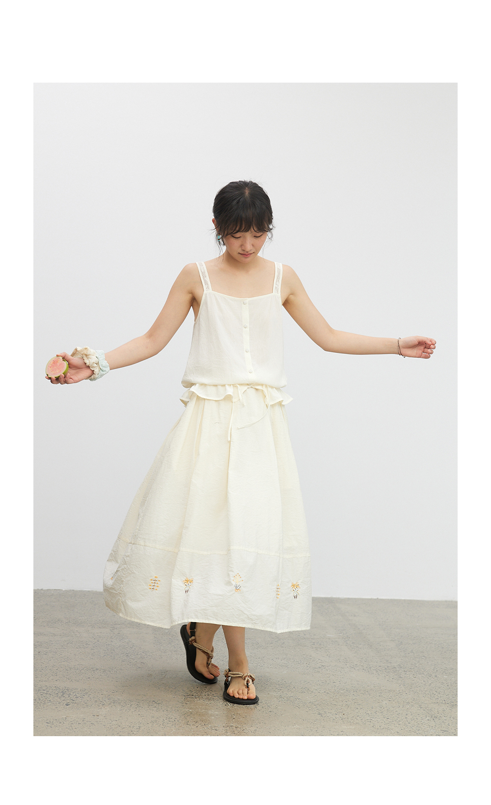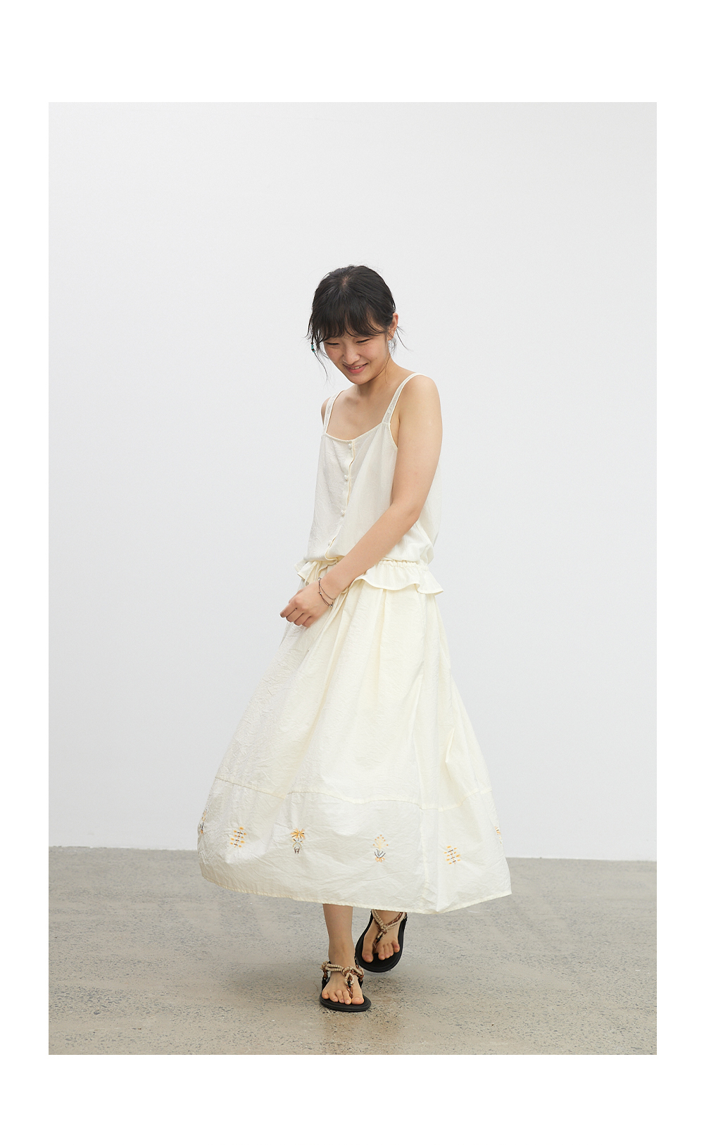 步履不停/4B41111C/文艺风米白色A型绣花半裙