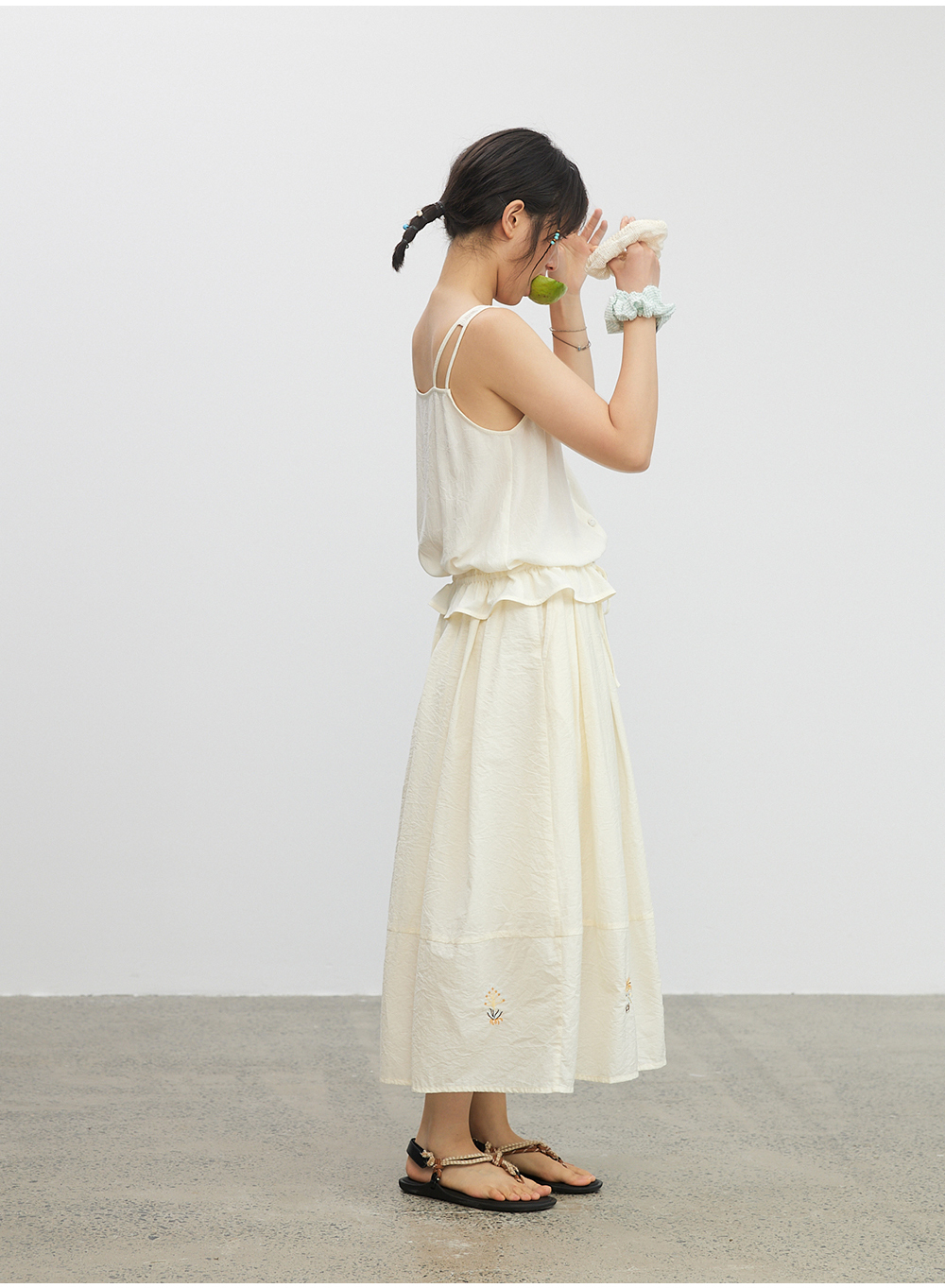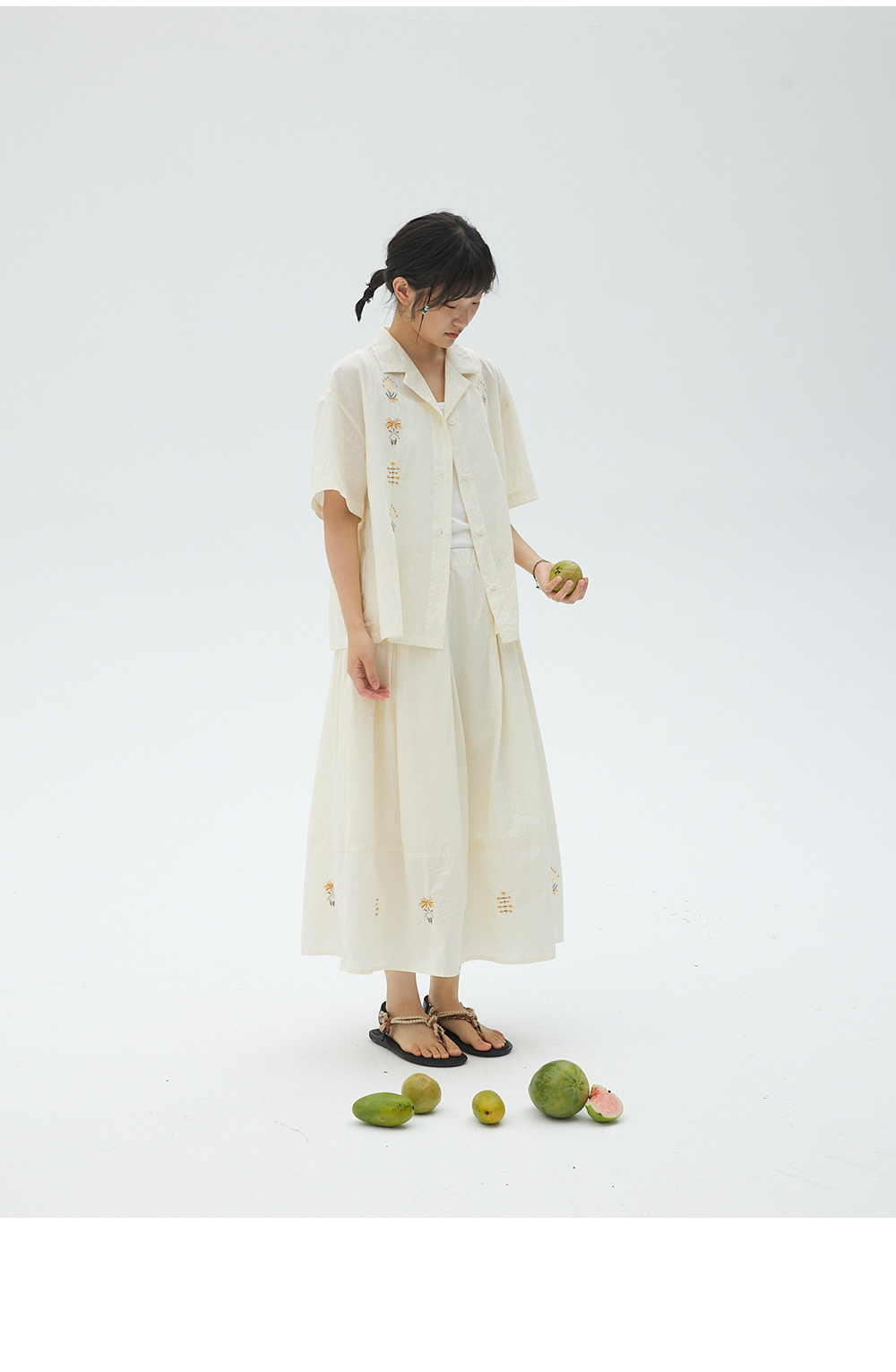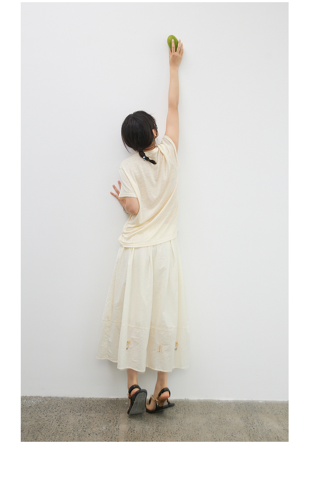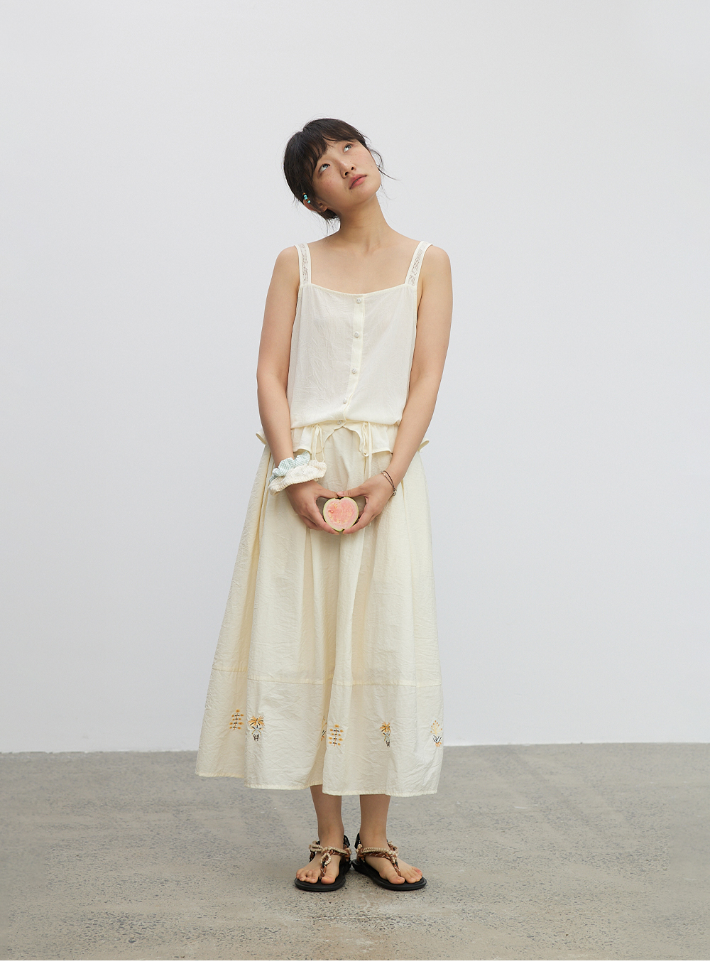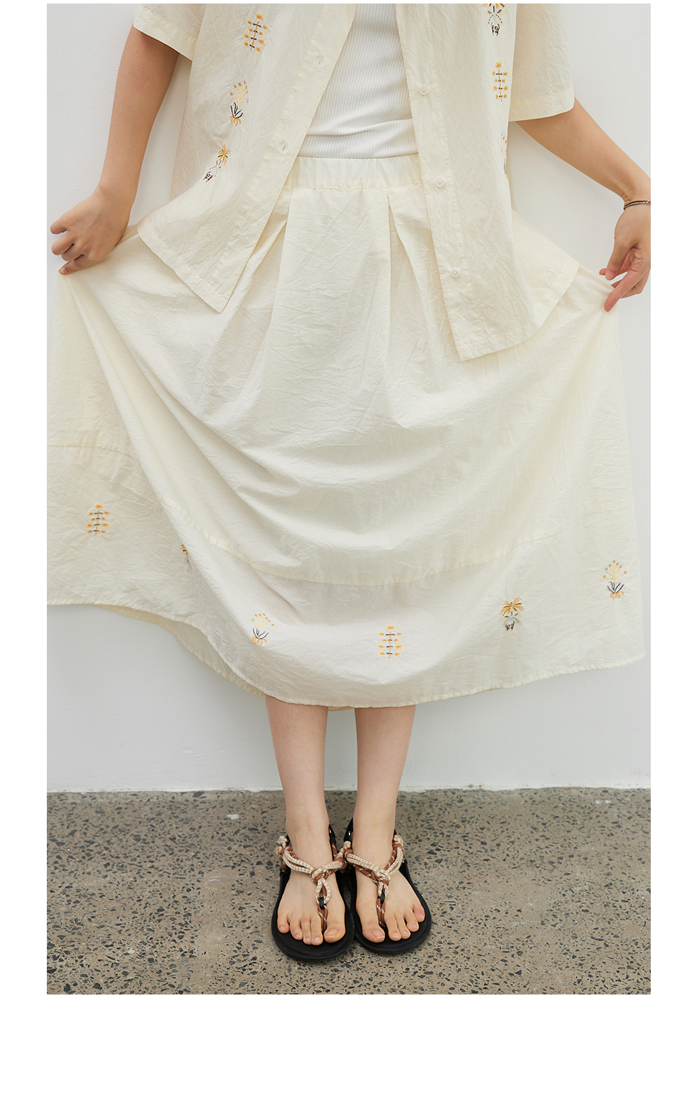 步履不停/4B41111C/文艺风米白色A型绣花半裙