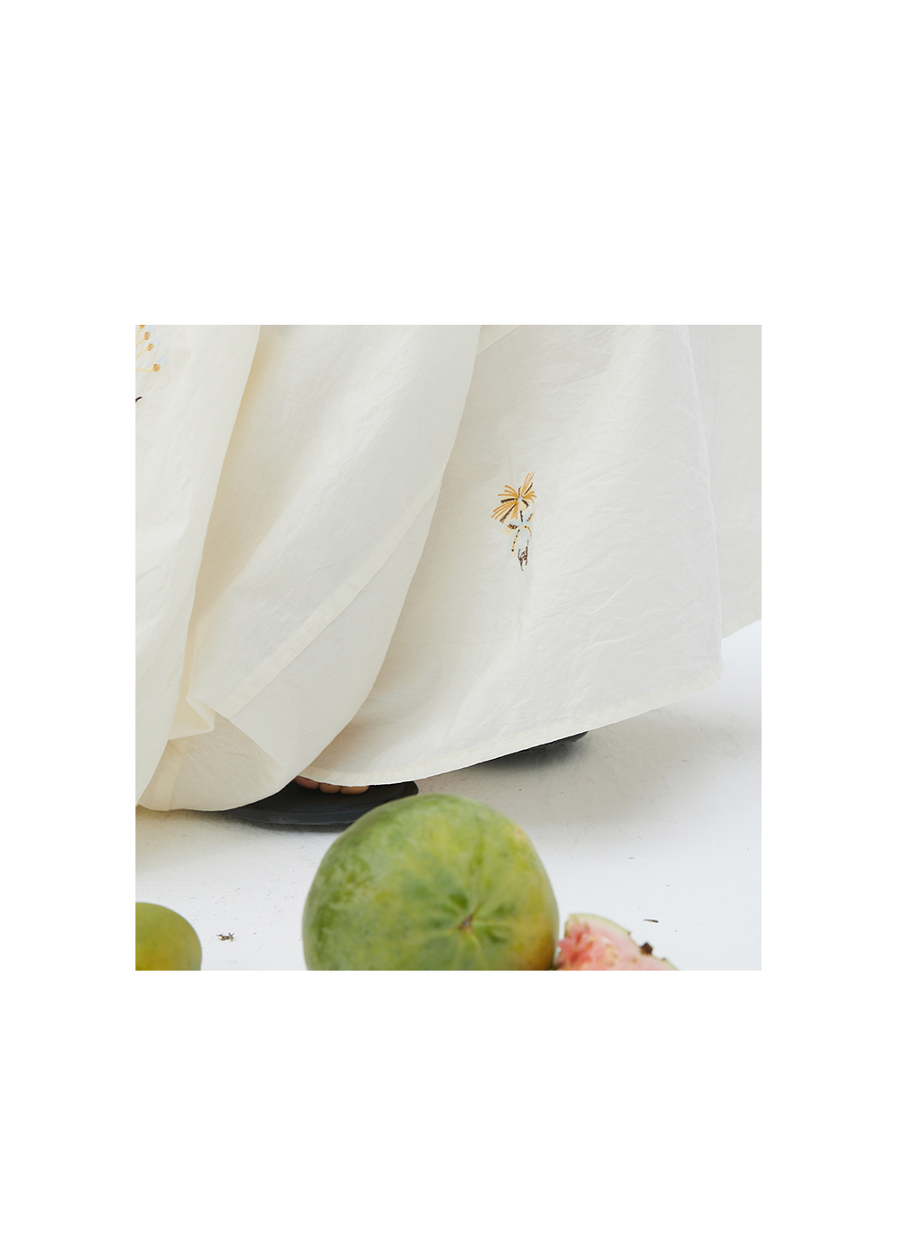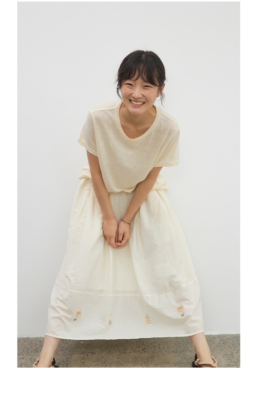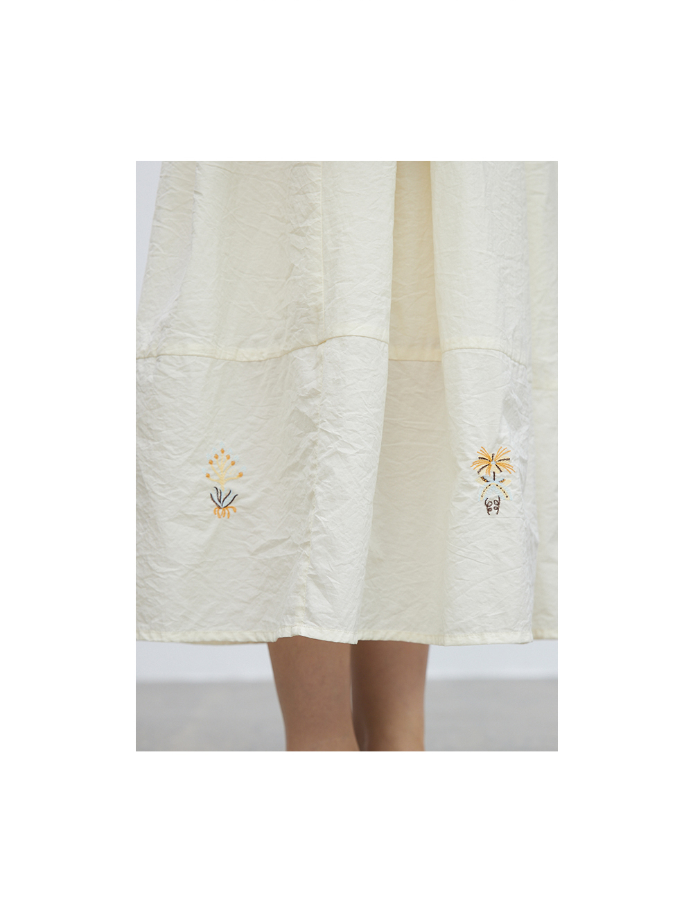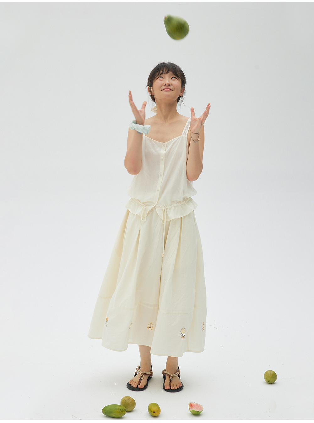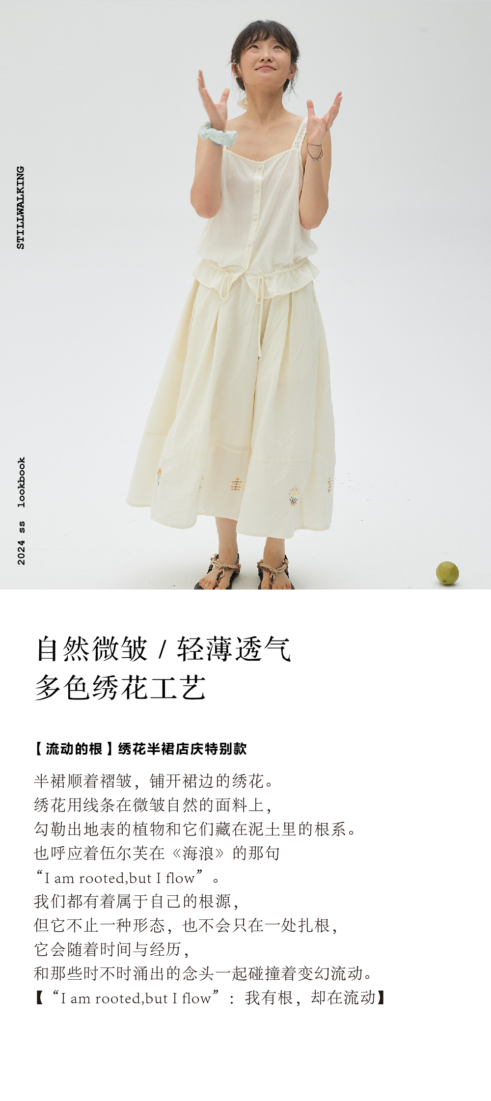 步履不停/4B41111C/文艺风米白色A型绣花半裙