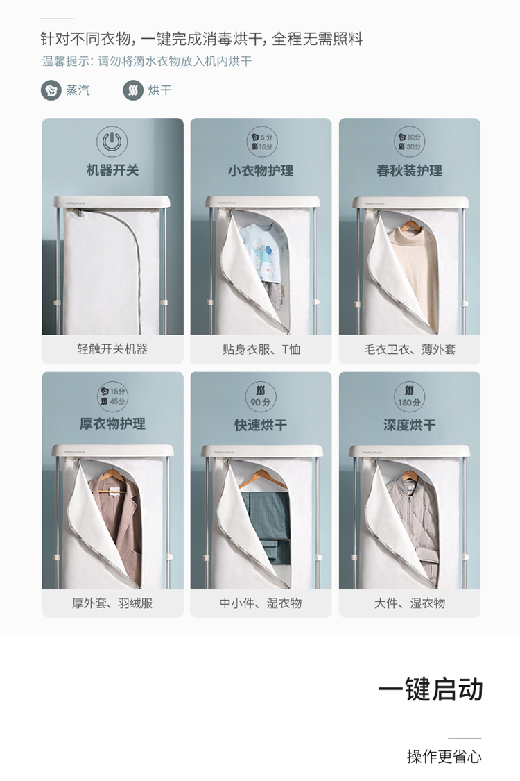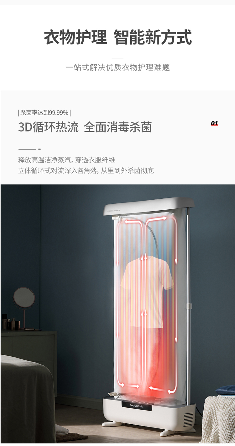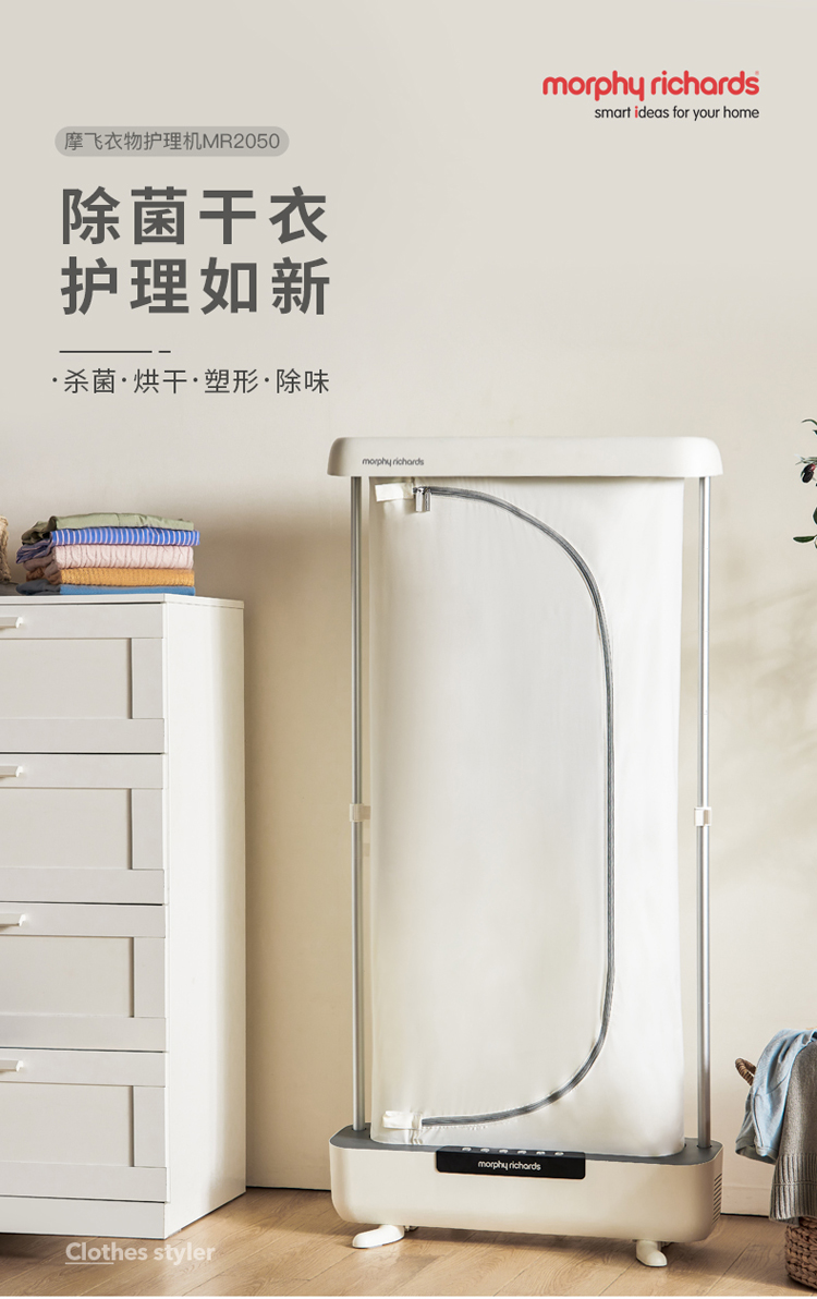 摩飞电器(Morphyrichards)干衣机挂烫机折叠式智能衣物护理机蒸汽消毒杀菌除螨机 MR2050