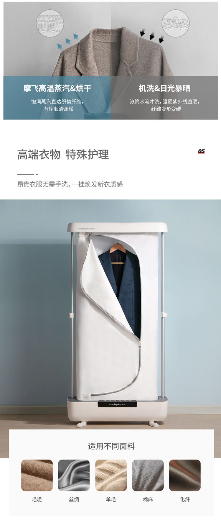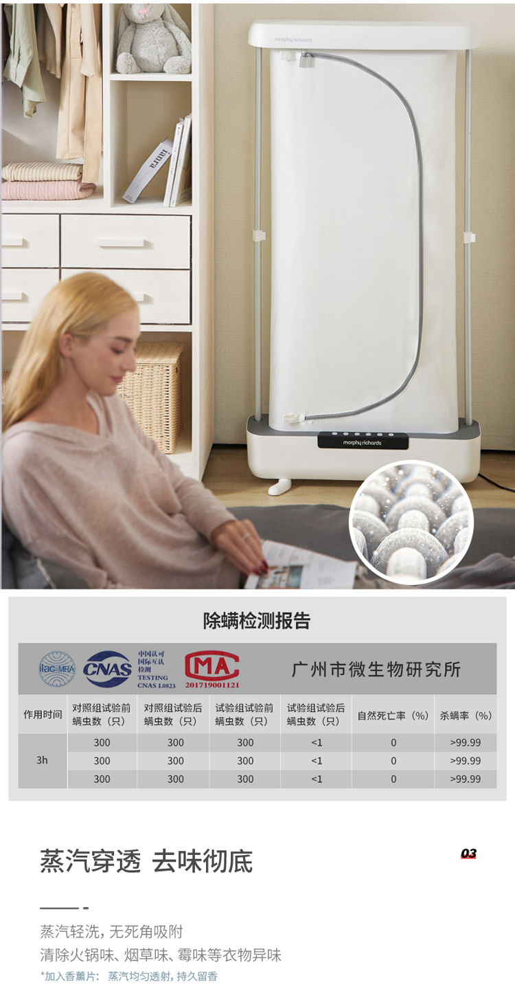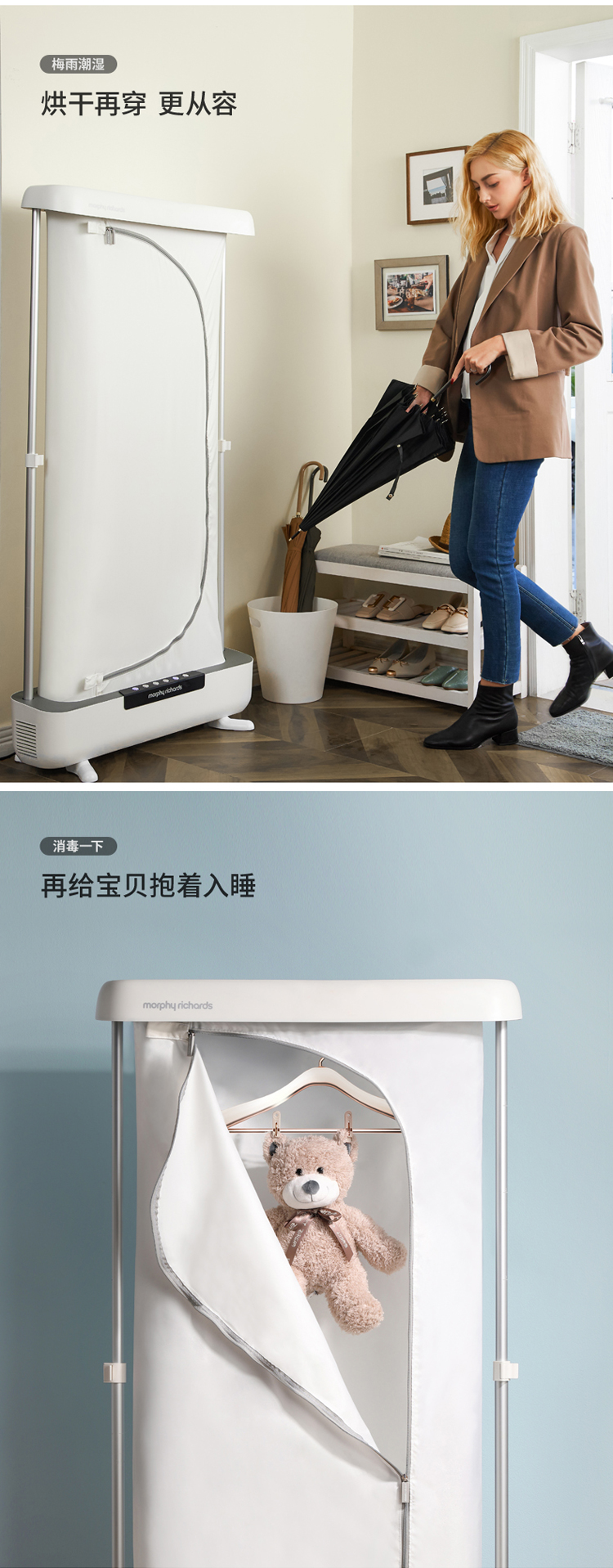 摩飞电器(Morphyrichards)干衣机挂烫机折叠式智能衣物护理机蒸汽消毒杀菌除螨机 MR2050