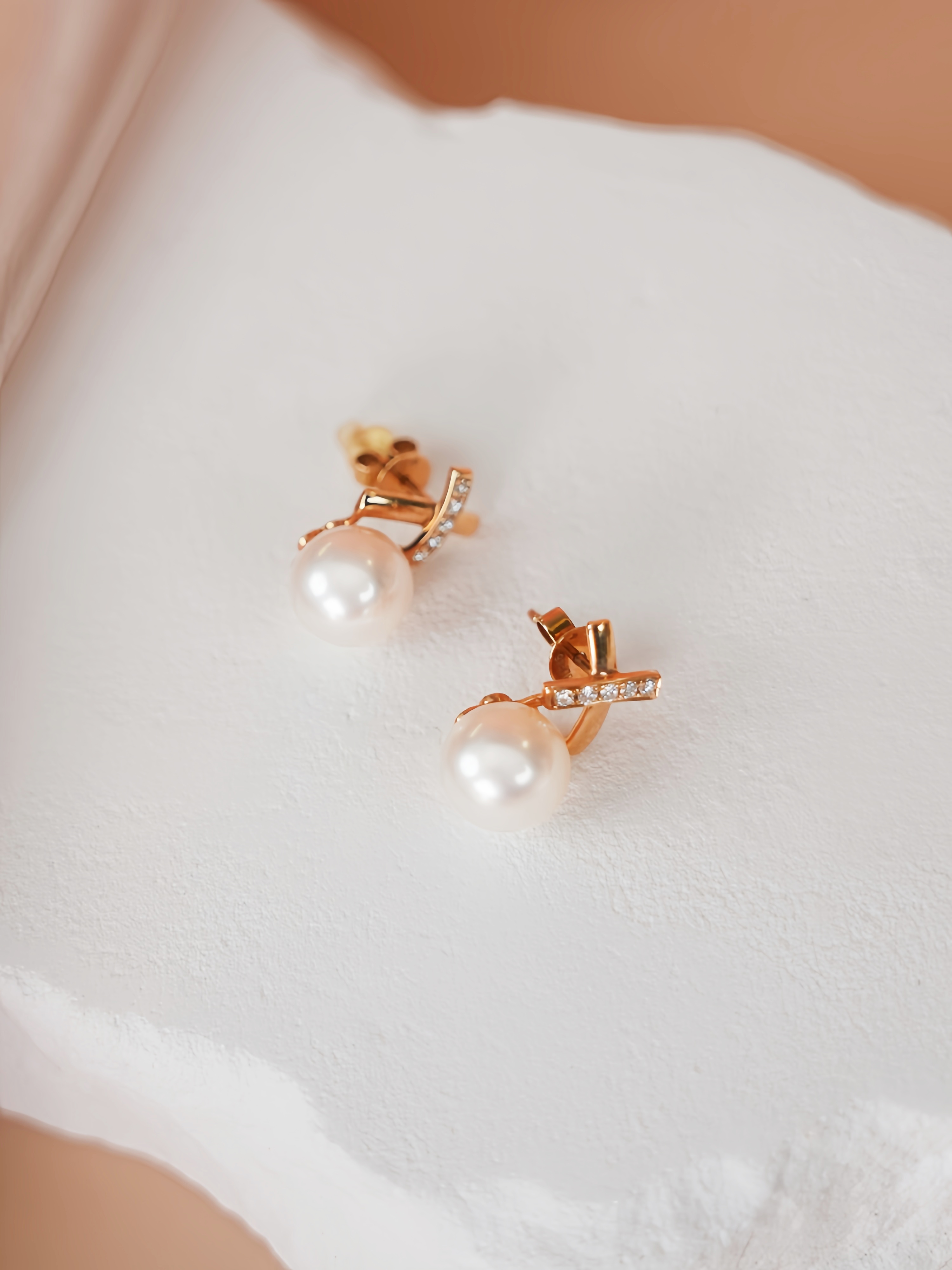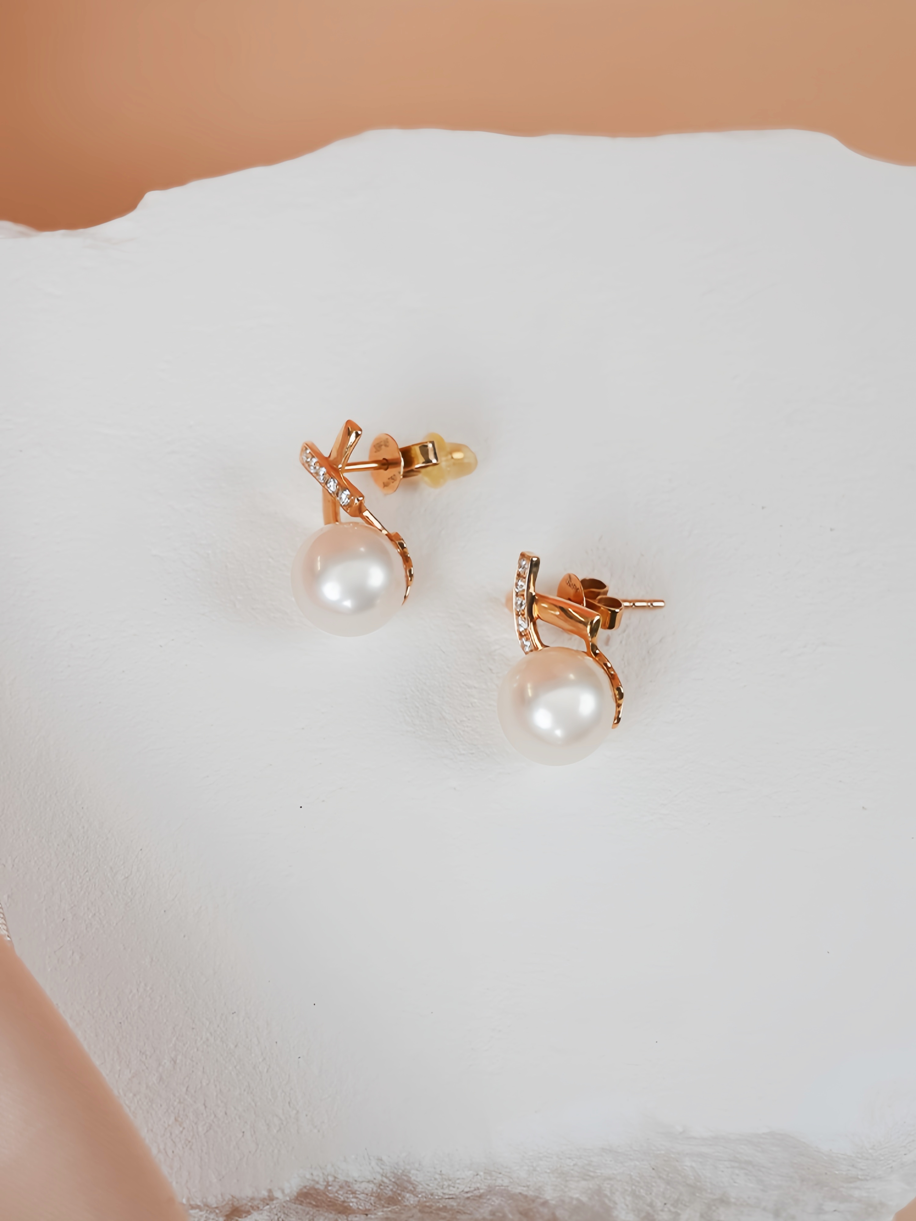 【现货】18K金珍珠耳钉法式复古镶钻交织小众设计款【尺寸8.1mm】 【一物一证书】