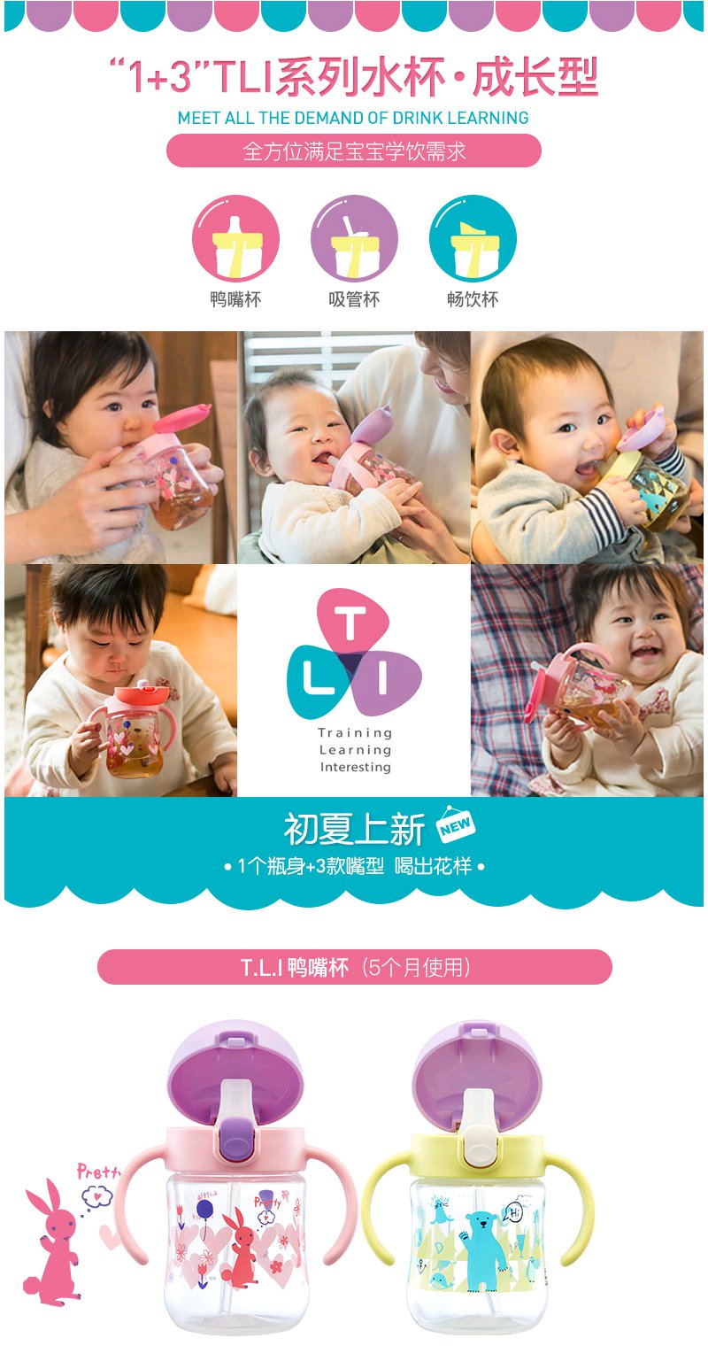 Richell/利其尔 T.L.I 儿童水杯学饮杯套装 0-3岁宝宝吸管杯200ml