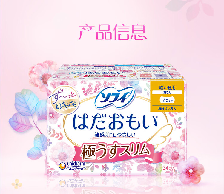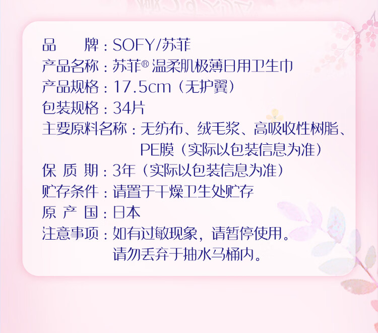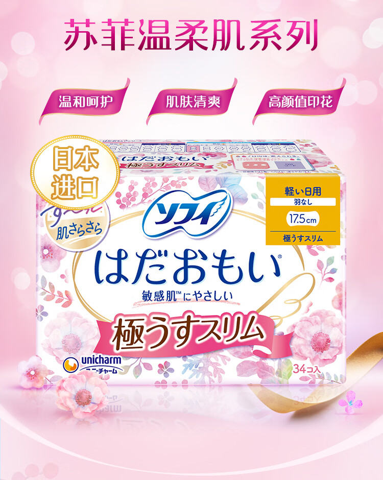 苏菲温柔肌轻柔进口日用迷你卫生巾175mm34片 护垫