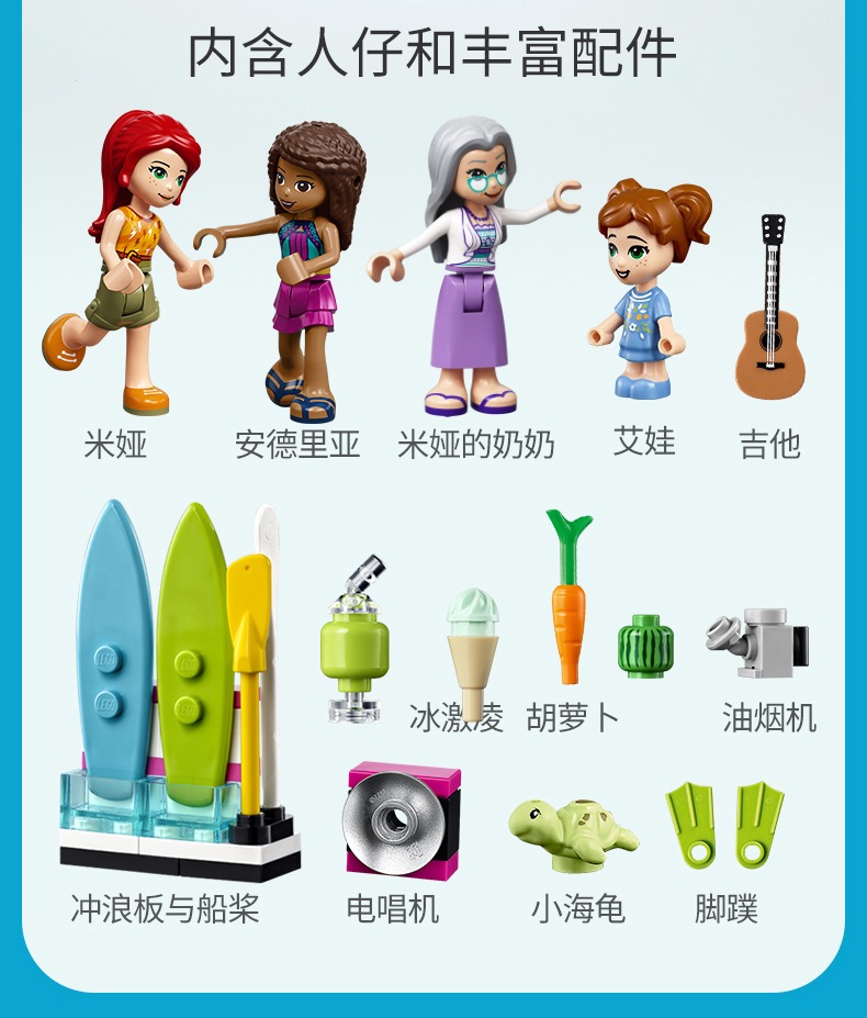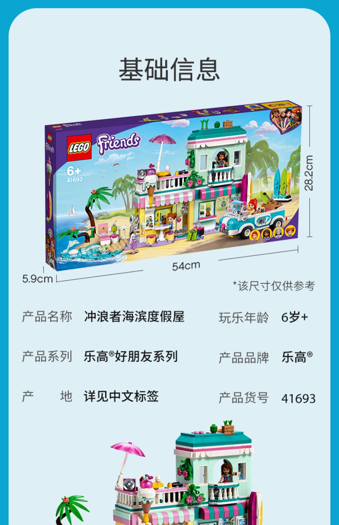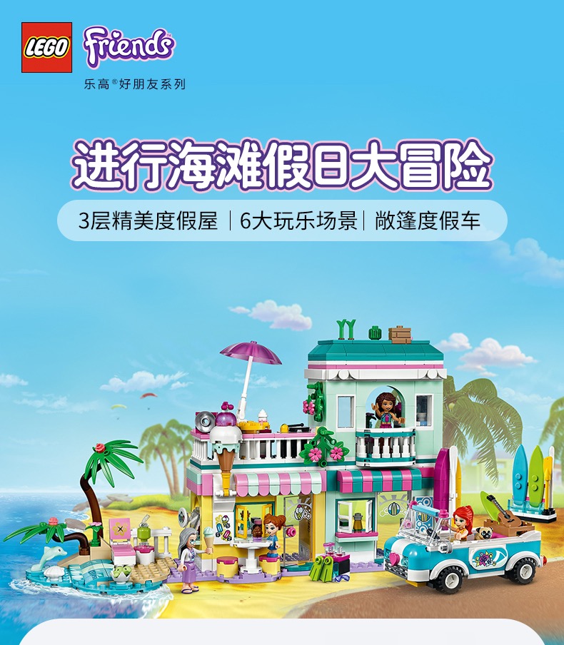 LEGO乐高41693好朋友系列冲浪者海滨度假屋