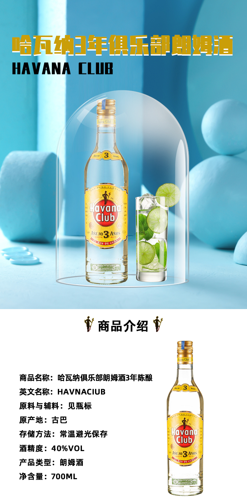 哈瓦纳俱乐部朗姆酒3年陈酿