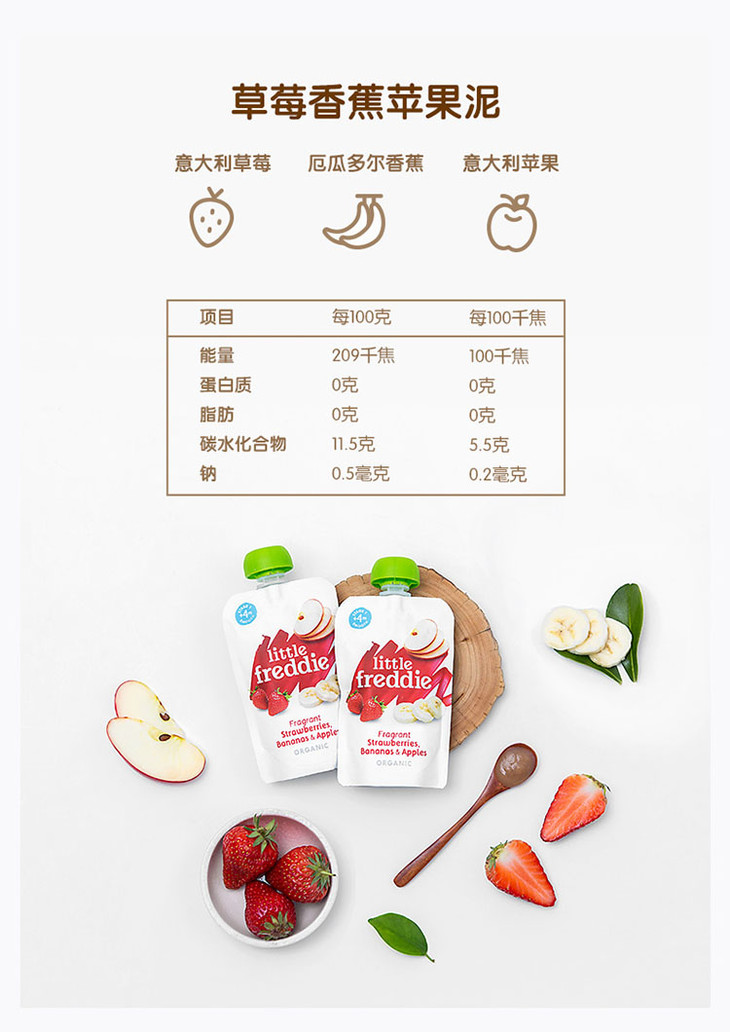 LittleFreddie小皮香蕉草莓苹果泥100g