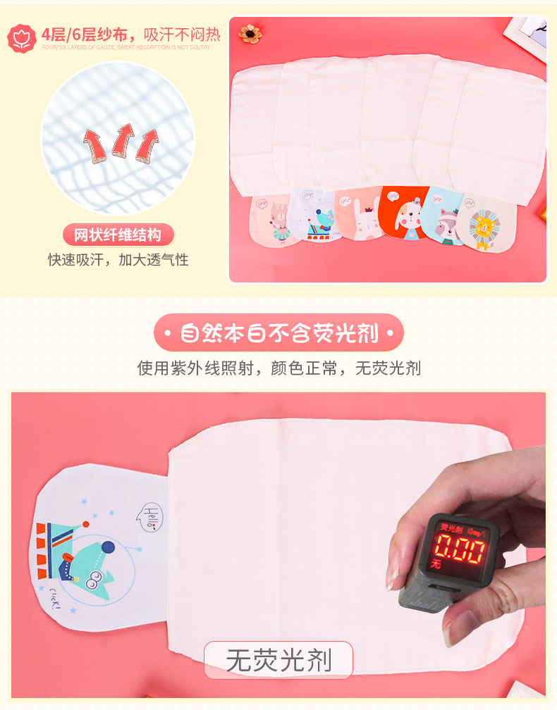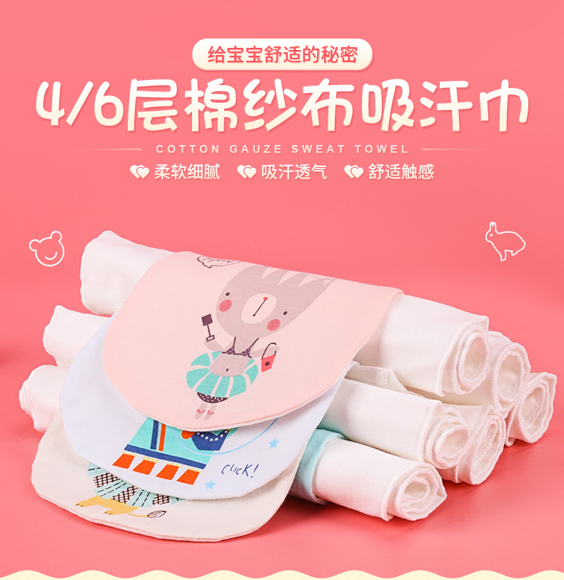 卡呗迩棉纱6层隔背巾L码XQA4045-6872K儿童纯棉幼儿园吸汗巾(颜色随机)