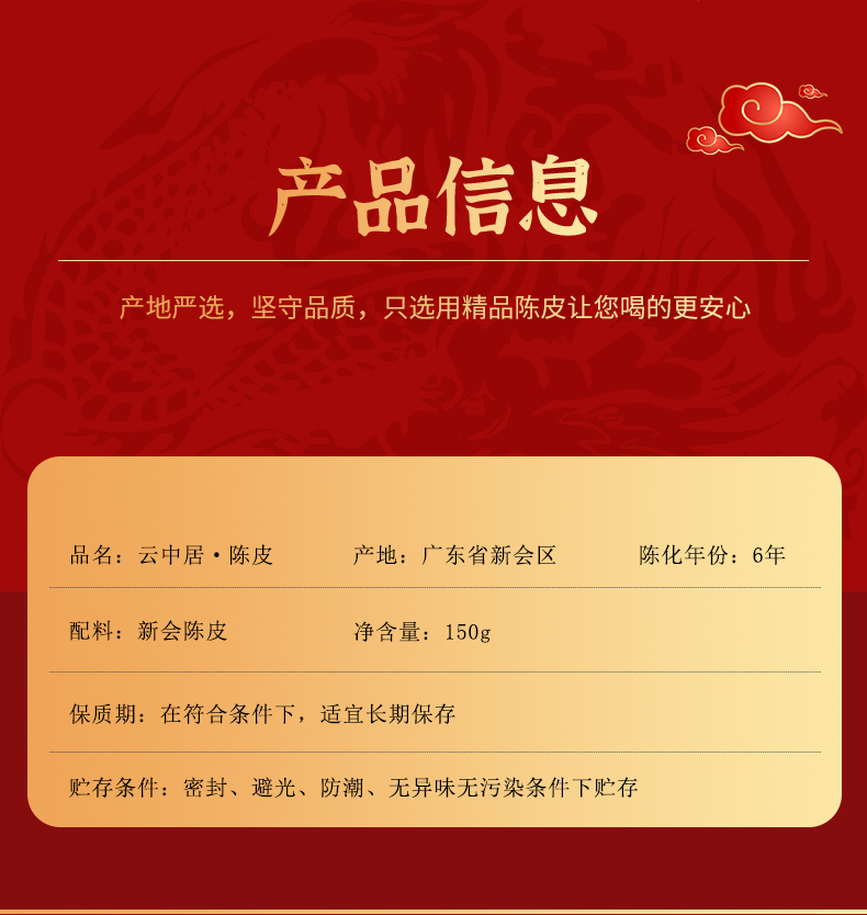 云中居御香系列嘉庆6年陈皮罐装150g
