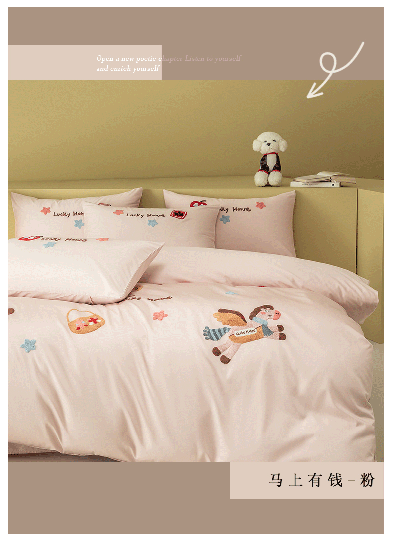 【品牌直发】加倍生活 A类100支全棉纯棉毛巾绣话四件套 马上有钱 马年限定系列 年货节焕新