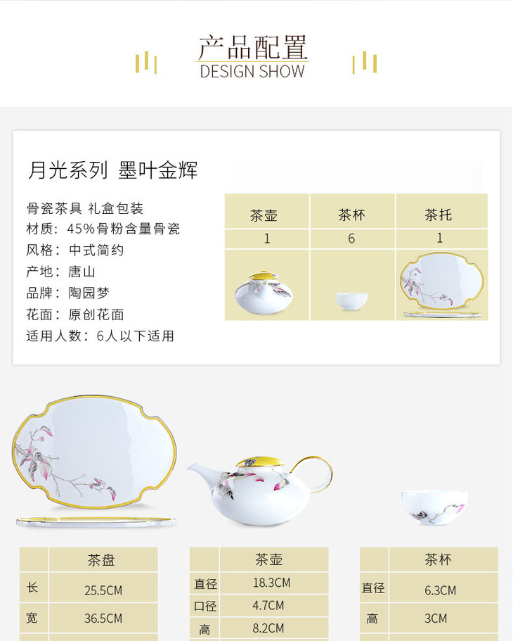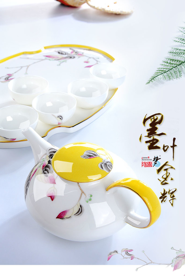 陶园梦墨叶金辉茶具8件套功夫茶套装家用办公