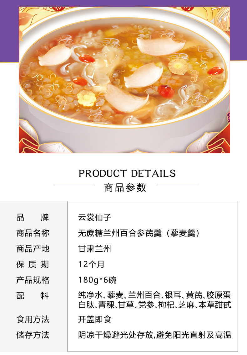 YSXZ-无蔗糖百合参芪羹6碗装【大宗供货请联系客服】