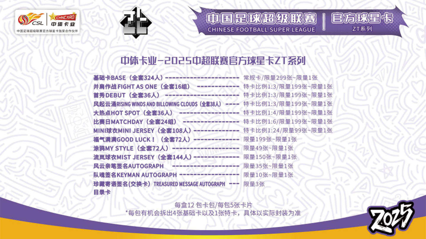小李子2025中超联赛官方球星卡-ZT系列足球球星卡收藏卡
