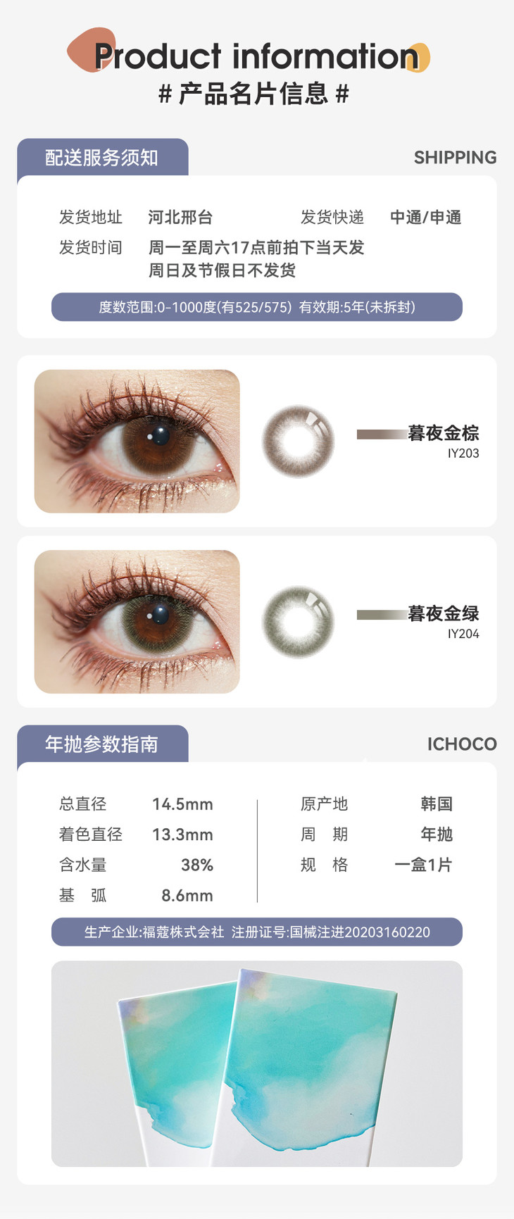 ICHOCO 抹茶巧克力 年抛 | 韩国原装进口1副2片(赠护理液)