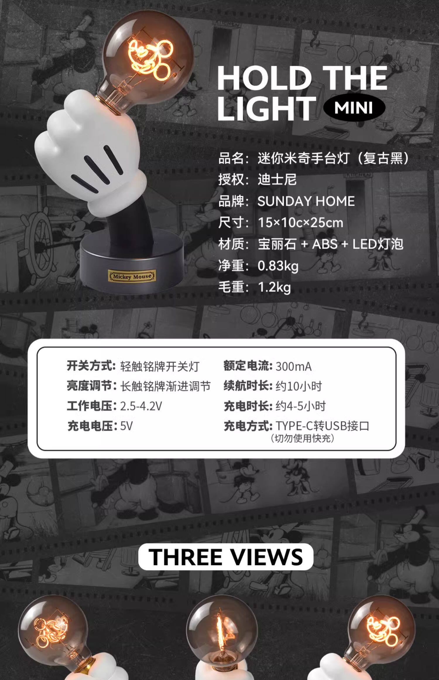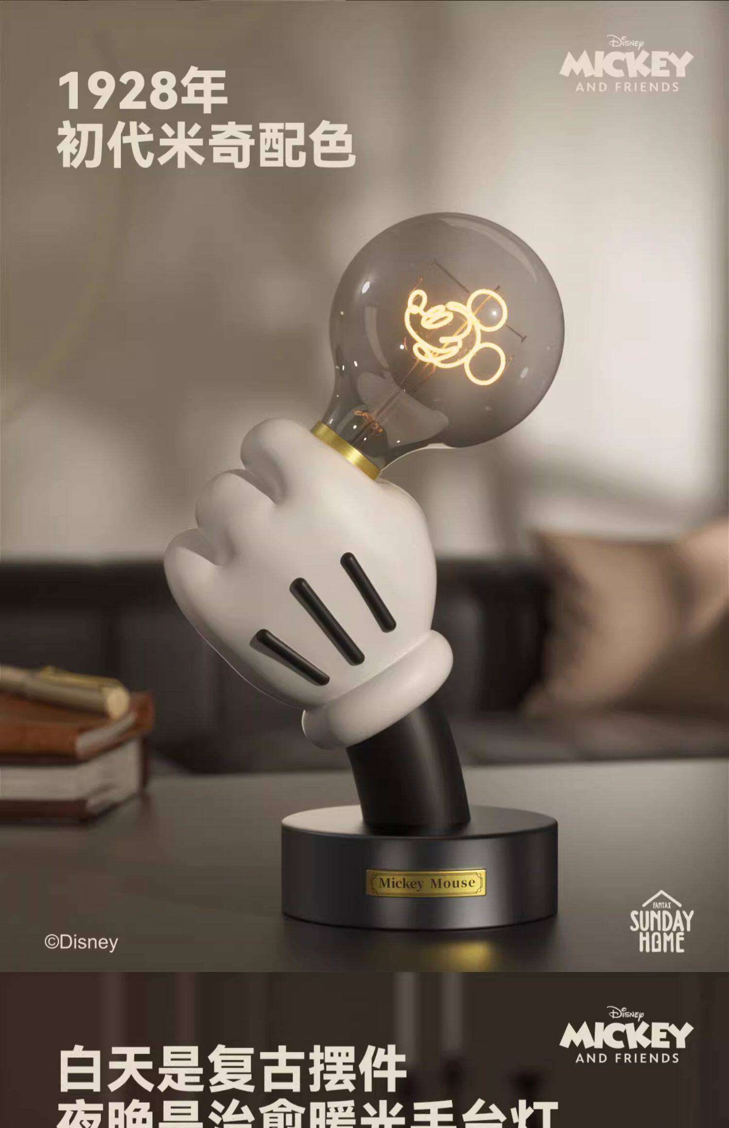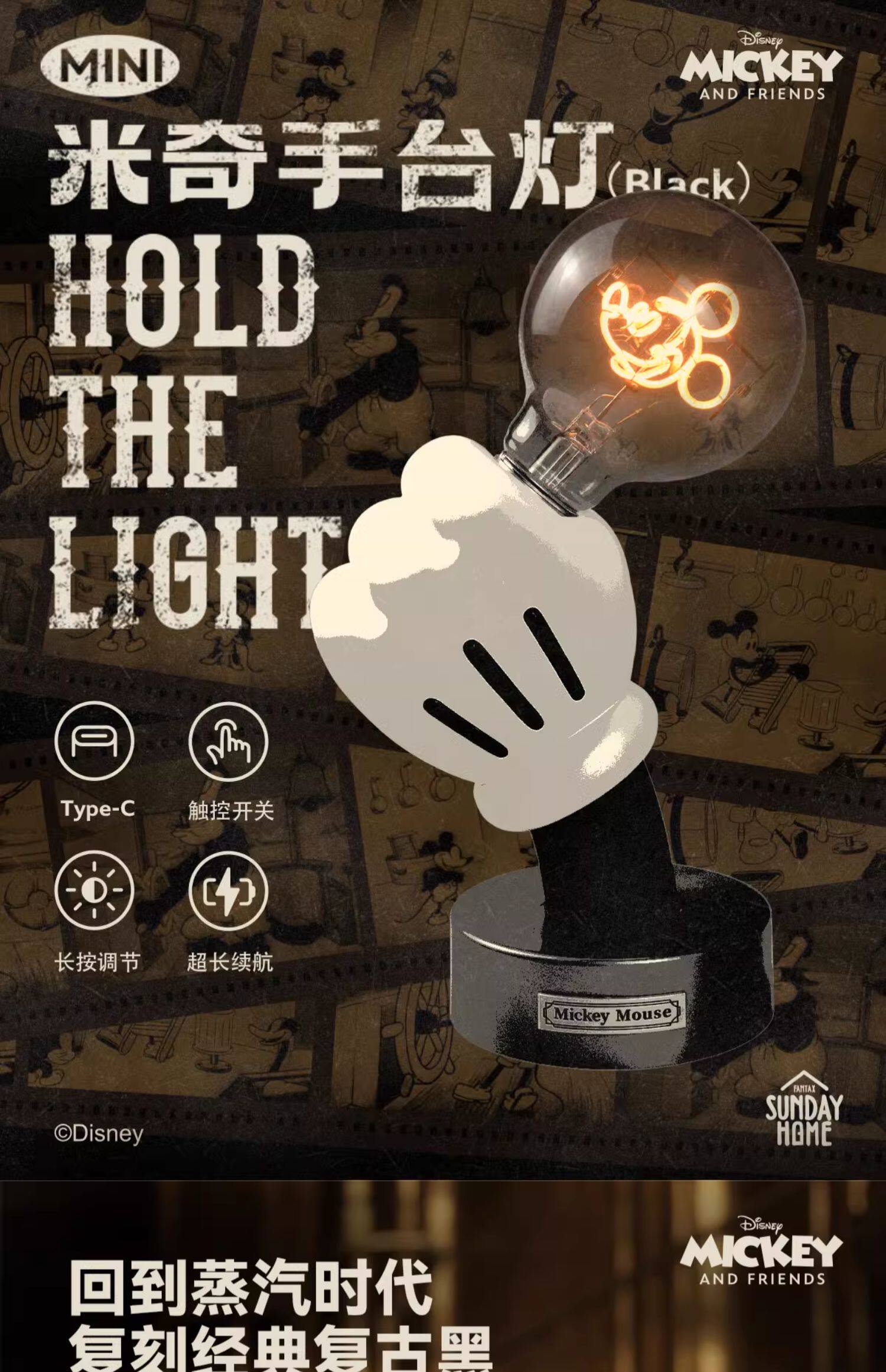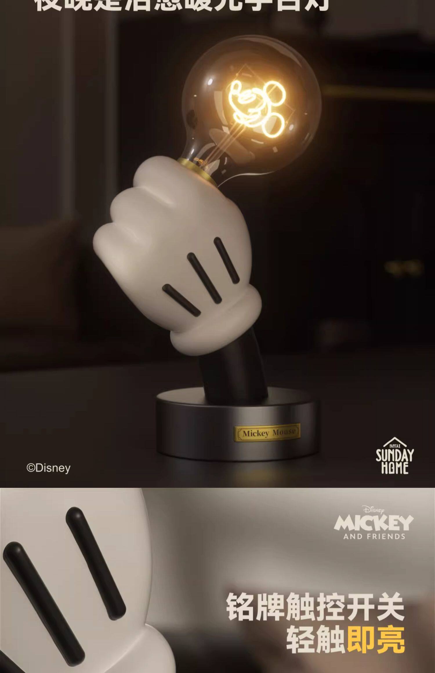 Sunday home mini米奇手台灯 迪士尼米奇灯手台灯摆件家居装饰桌面创意小众氛围礼物