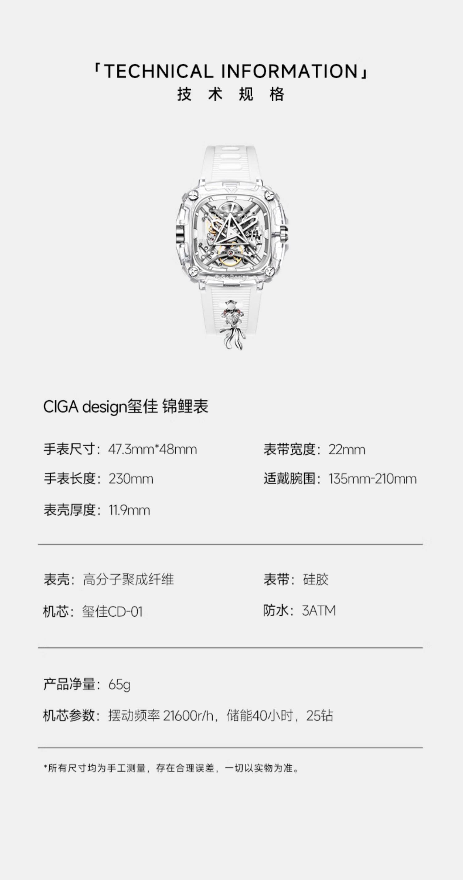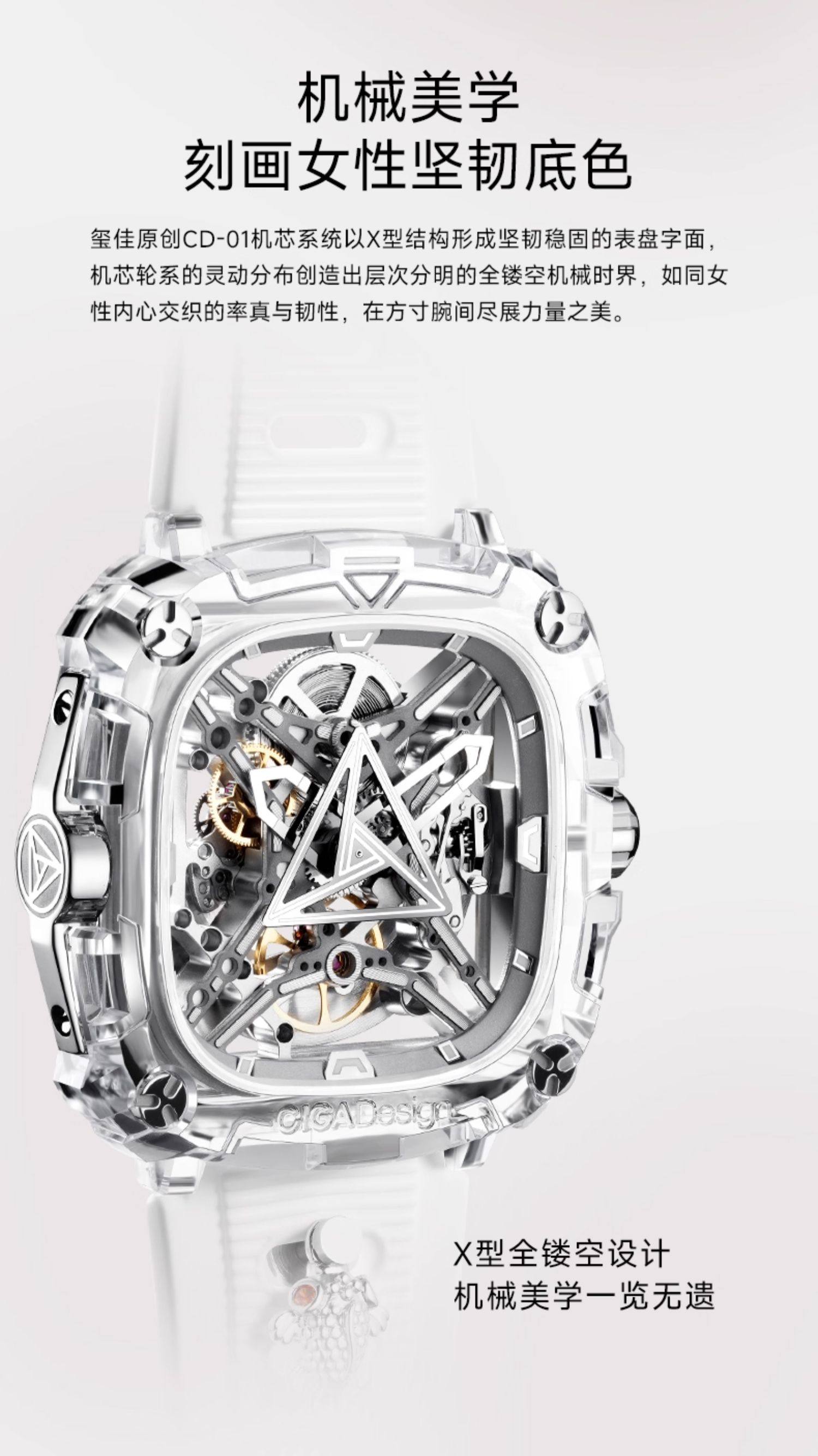CIGA Design/玺佳 X051-CS01-5WH 锦鲤表 透明款 机械手表学生情侣款生日礼物