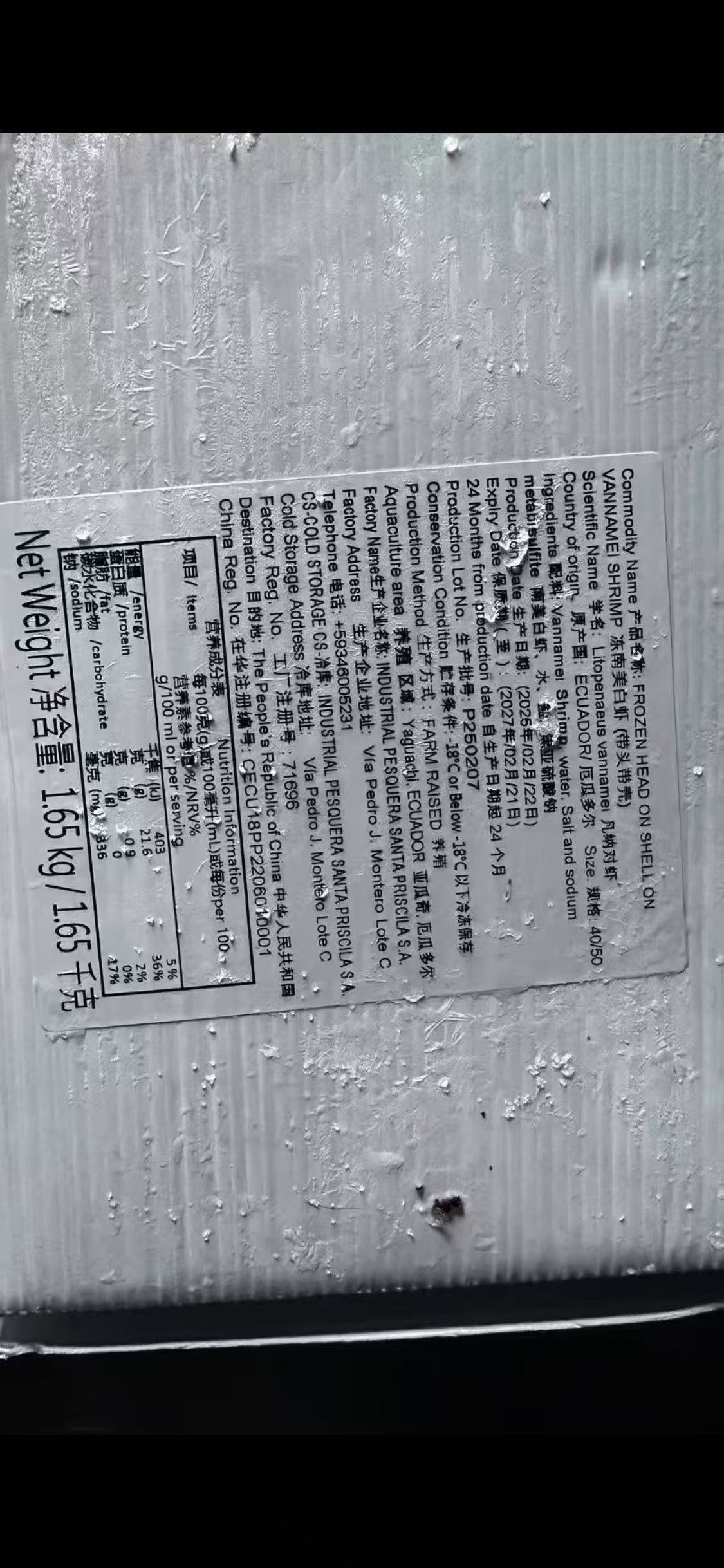 【顺丰冷链】1.65kg进口厄瓜多尔鲜冻白虾