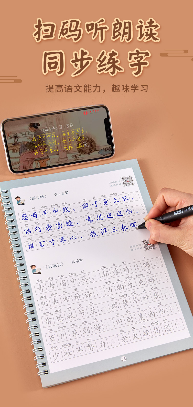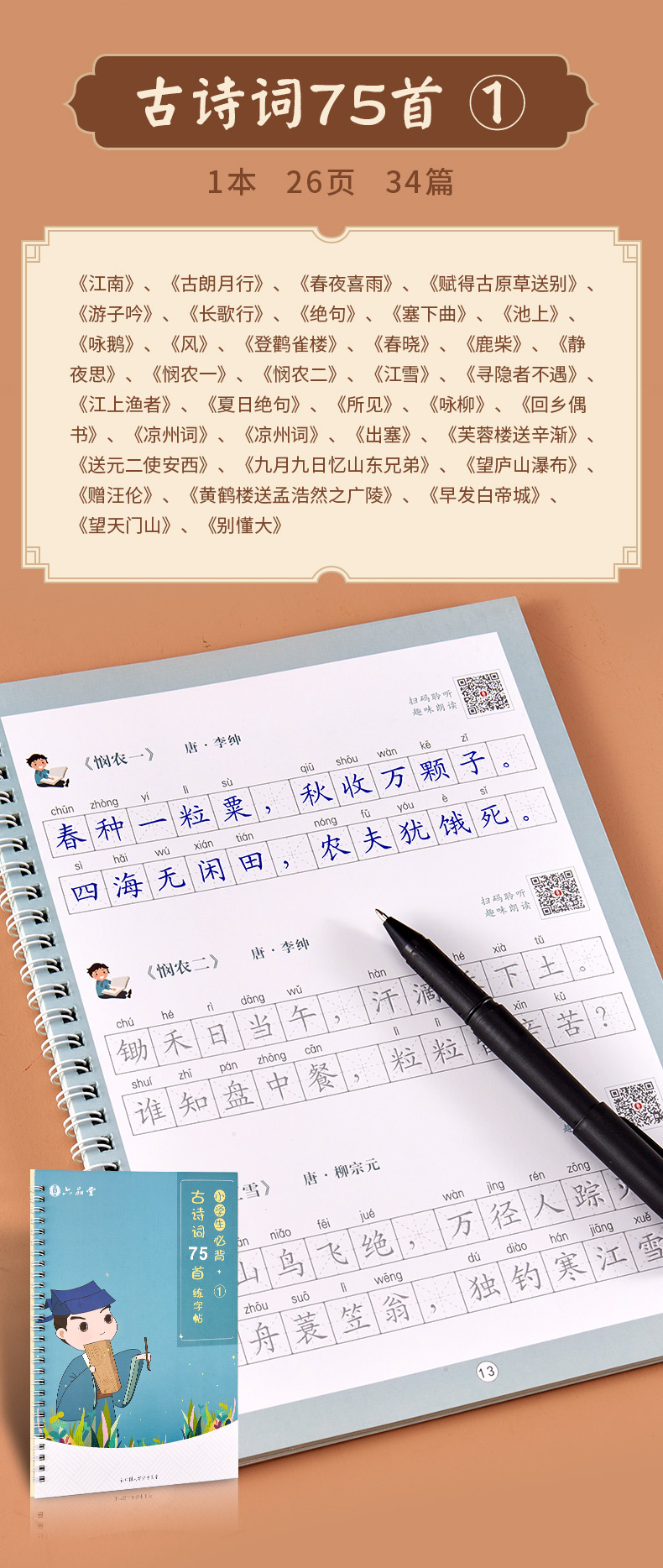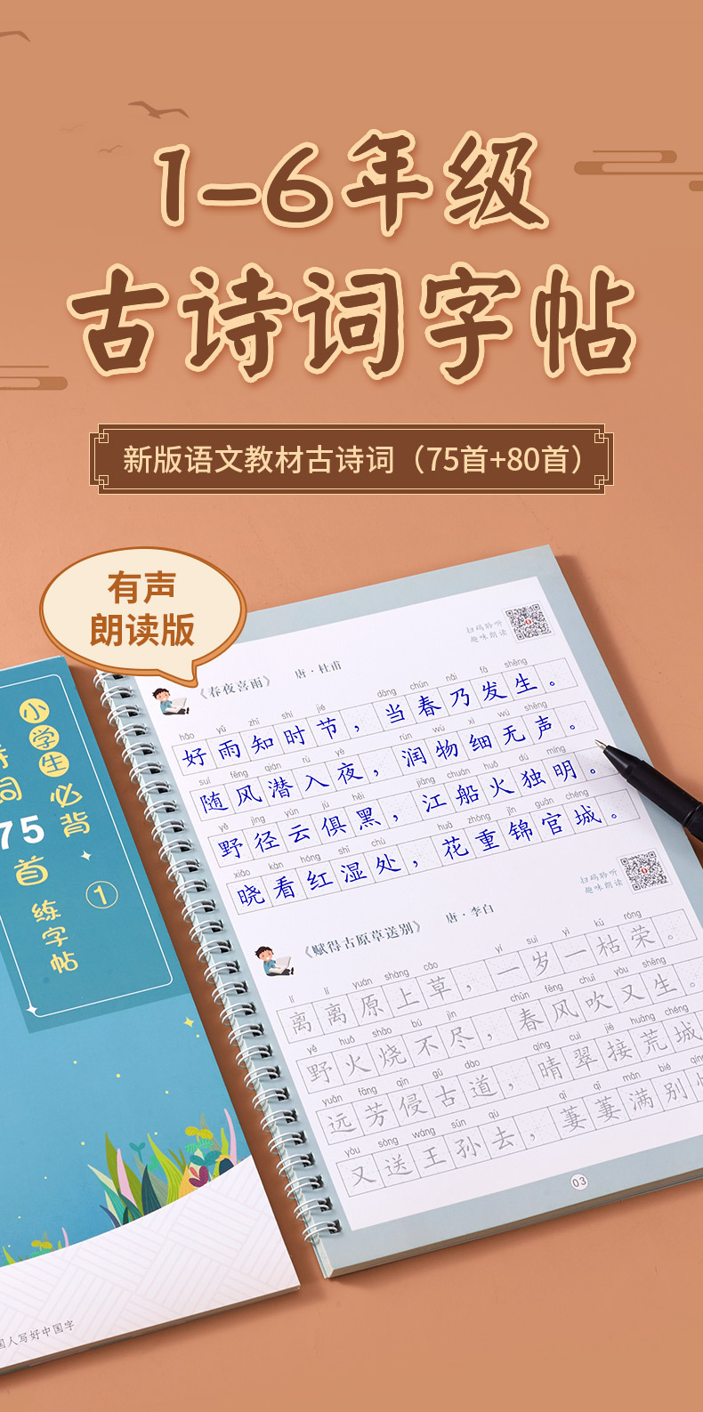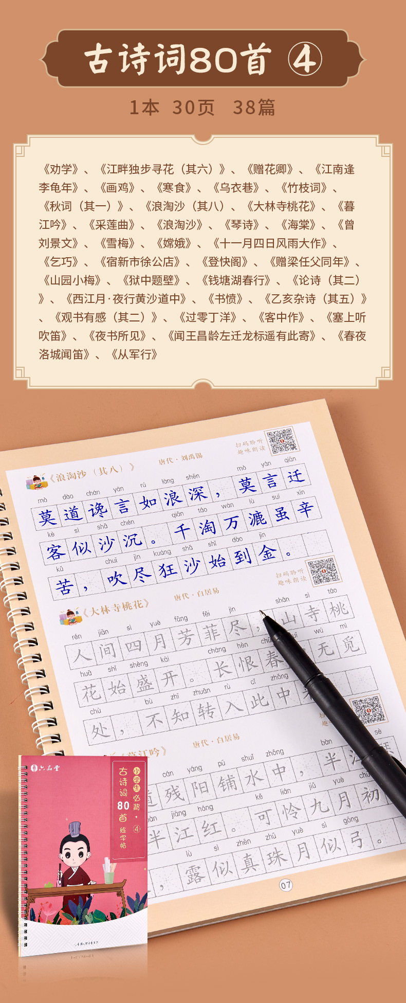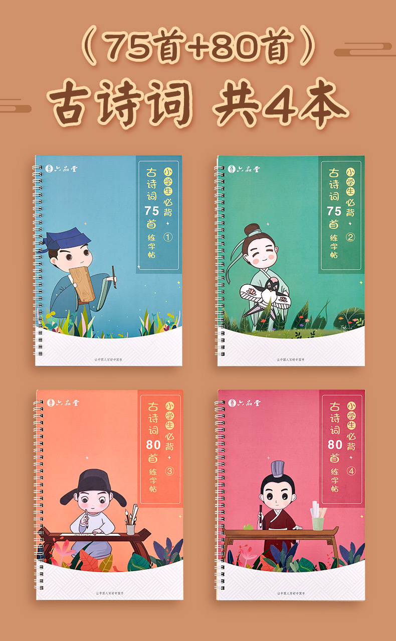 六品堂小学生必背古诗词练字贴1-4(4本套装)