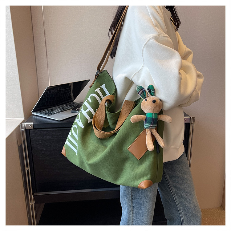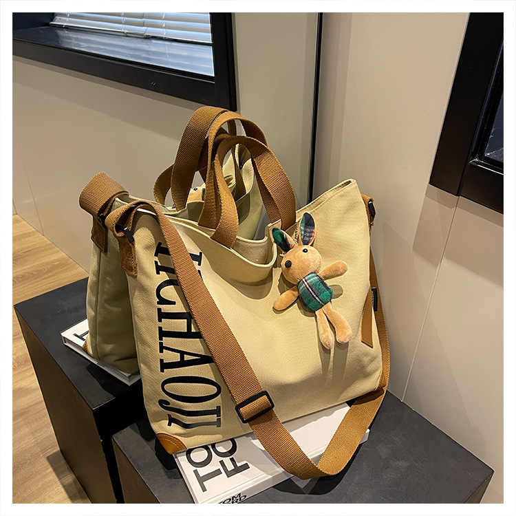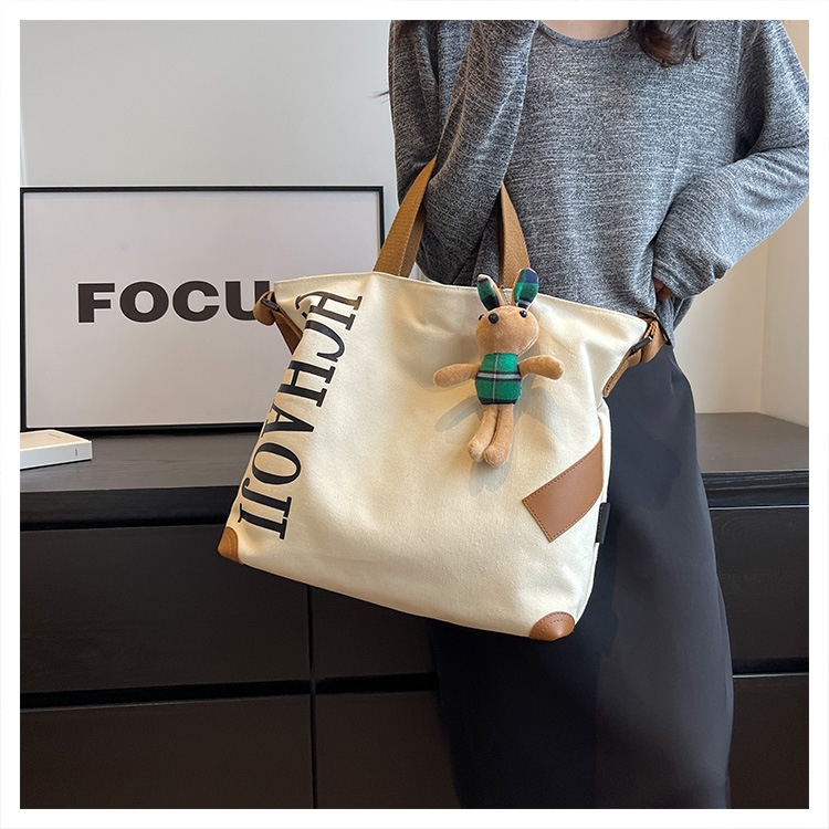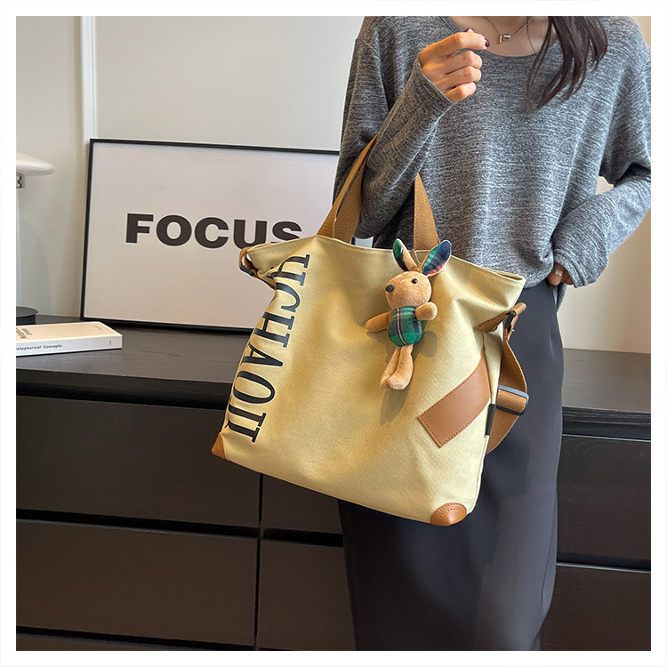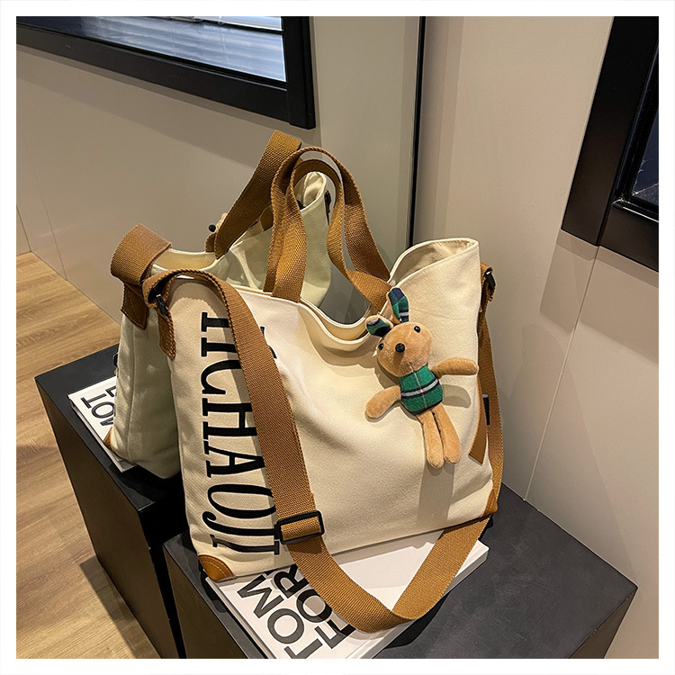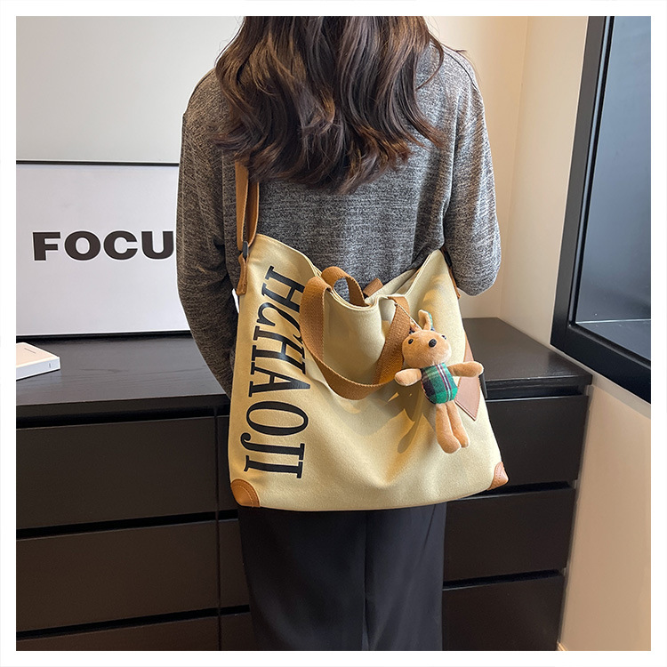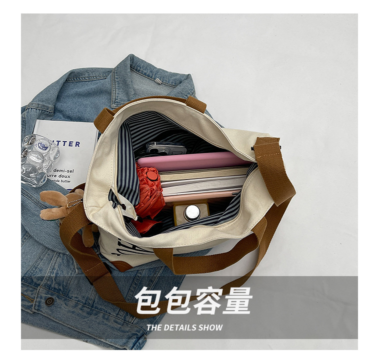 新款百搭日系帆布包 大容量女包 休闲百搭单肩斜挎包 大学生上课通勤托特包女