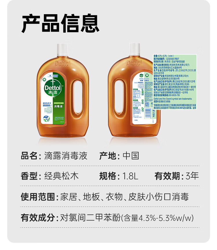 滴露(Dettol)消毒液衣物消毒水1.8L 居家消毒 多种用途