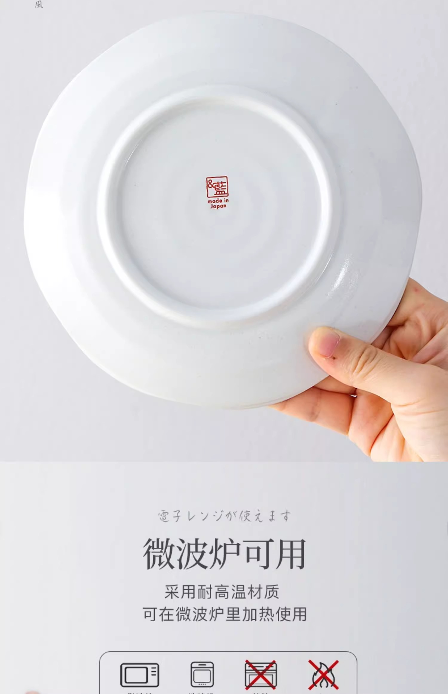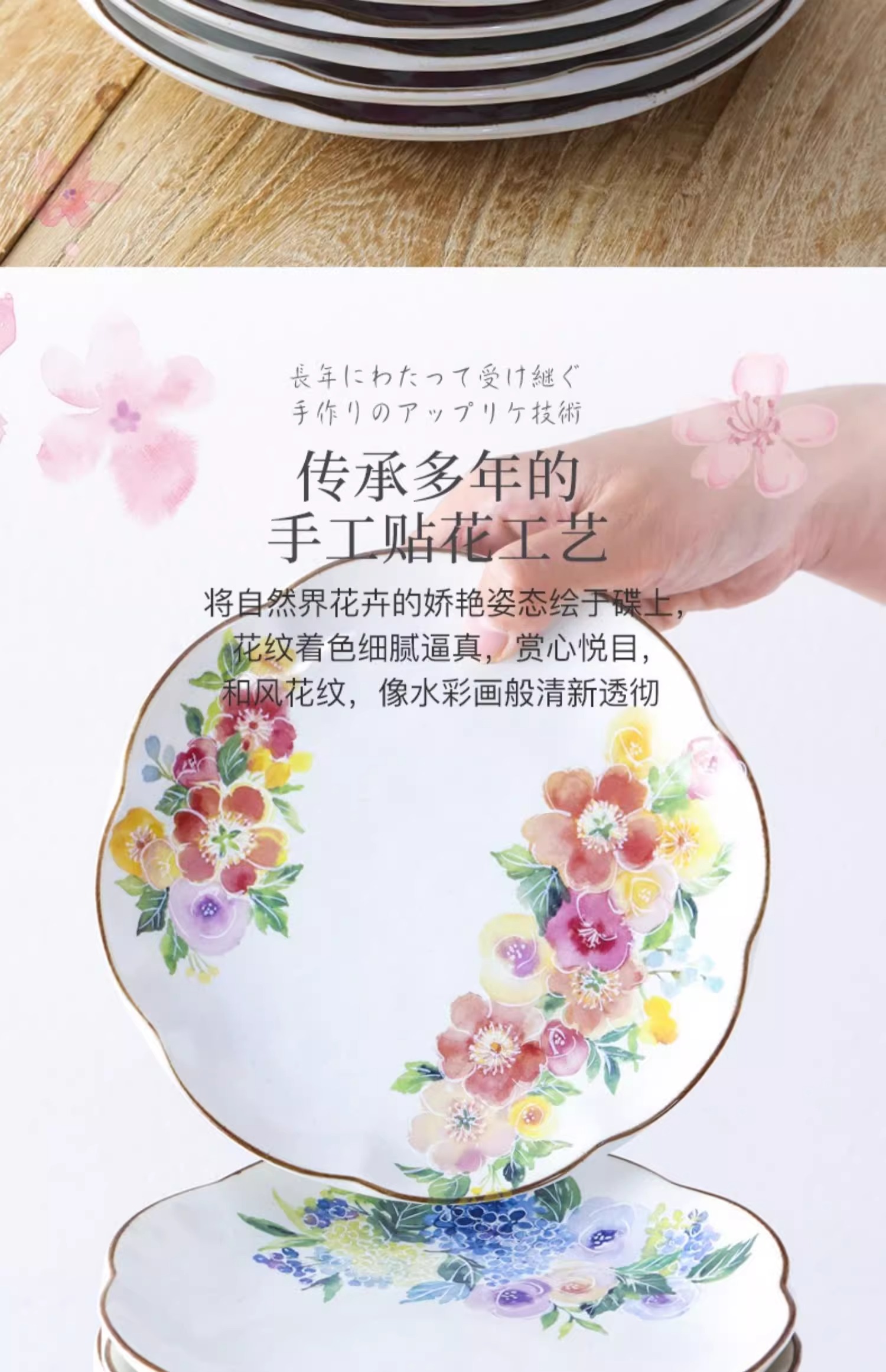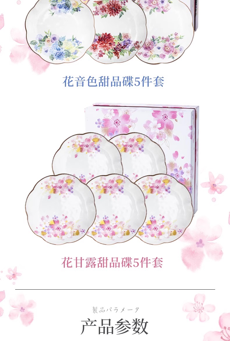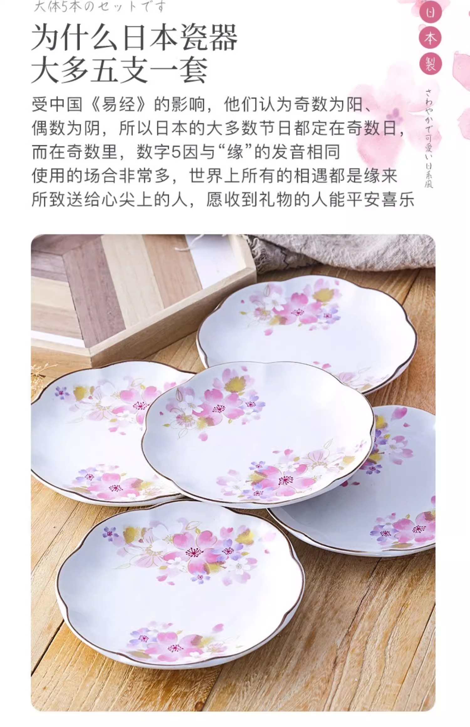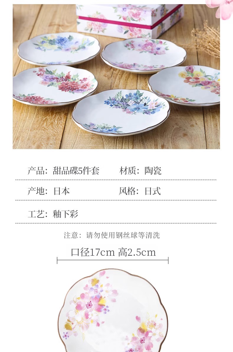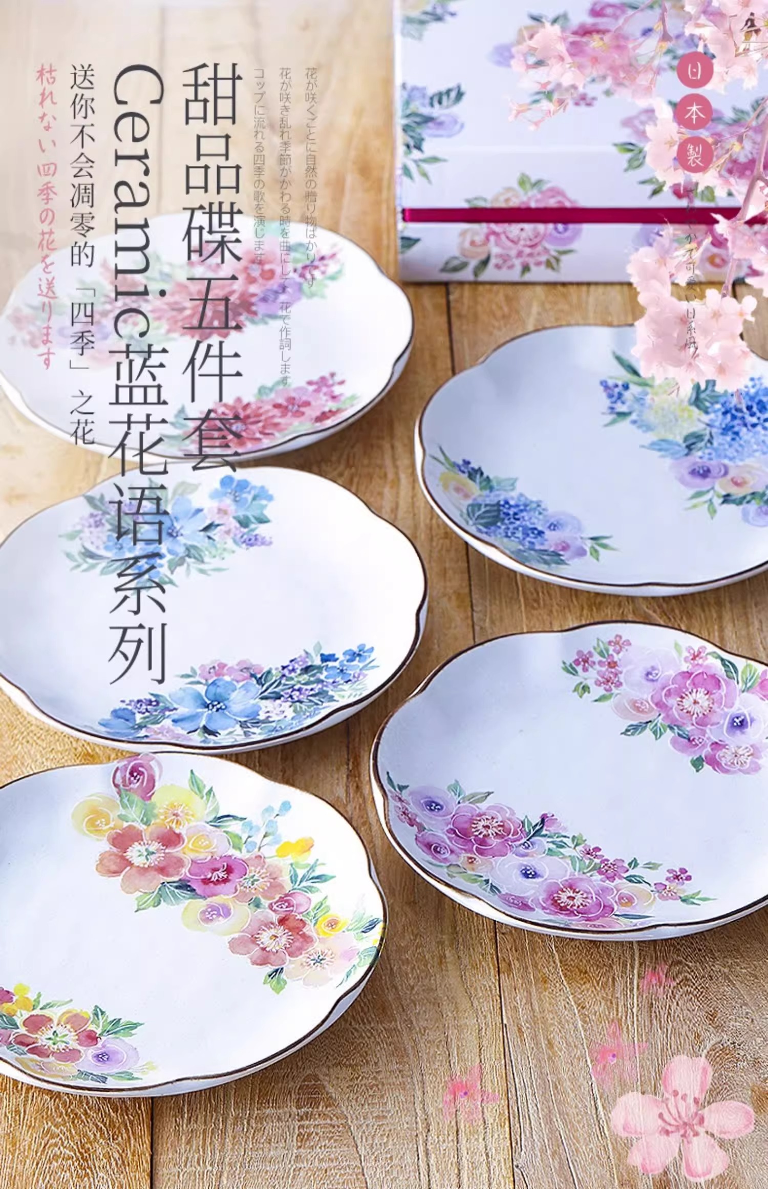日本进口ceramic和蓝陶瓷甜品碟水果盘日式小吃碟子套装和蓝花音色花边五入盘16.5*2.5cm五入碗11*6.6cm一壶五杯茶具
