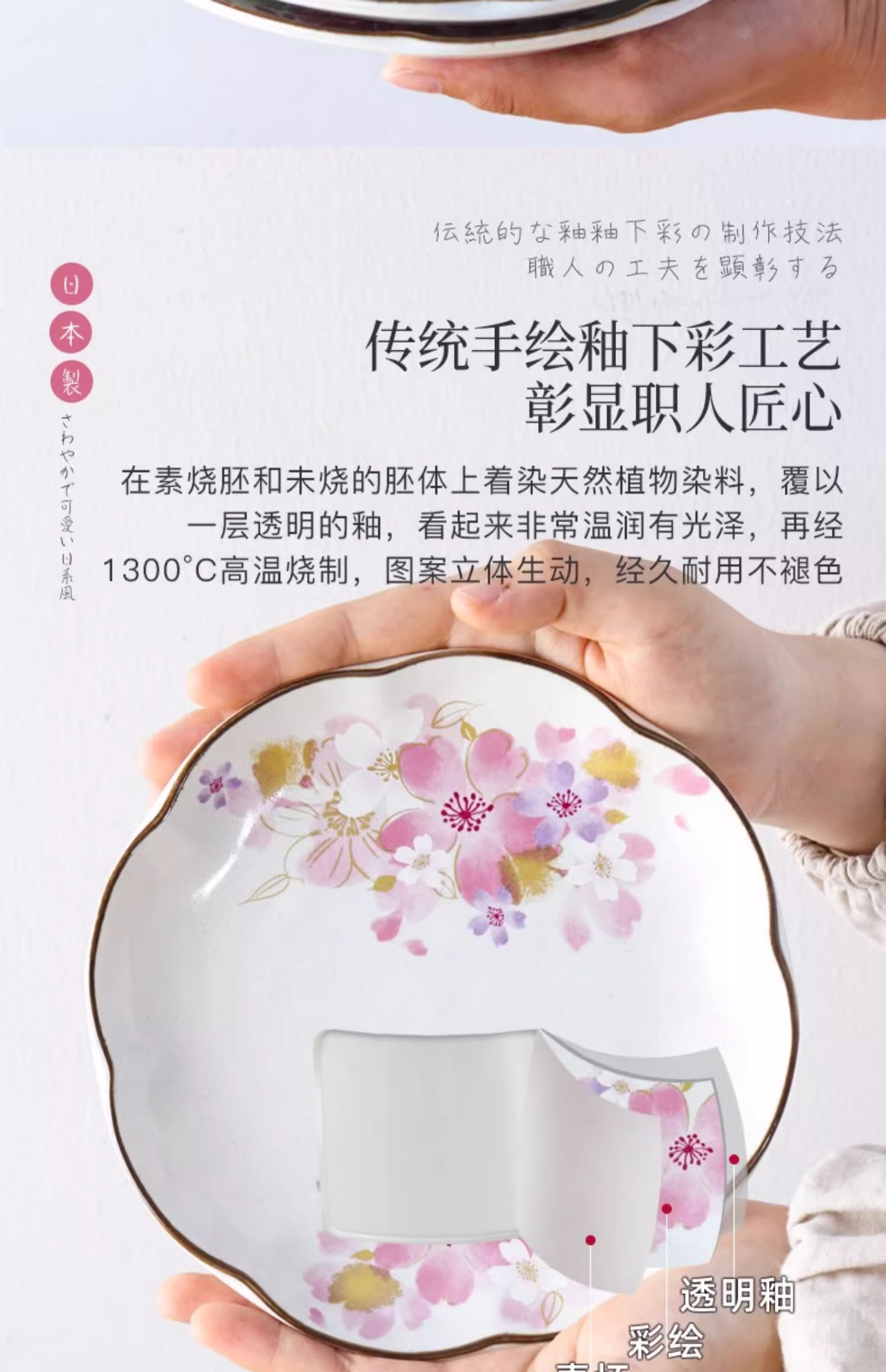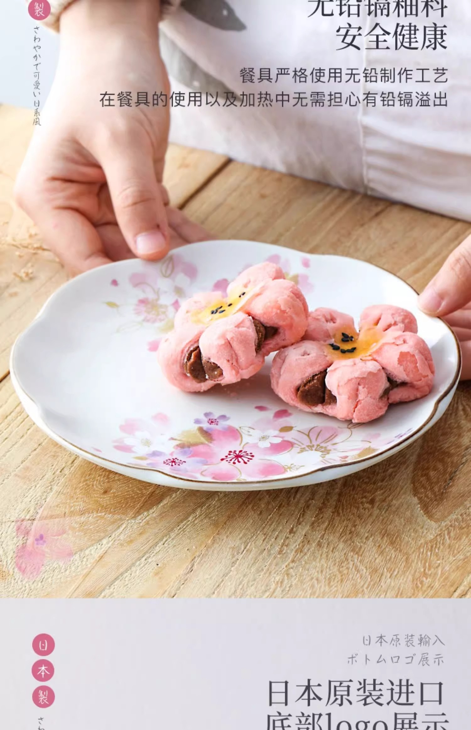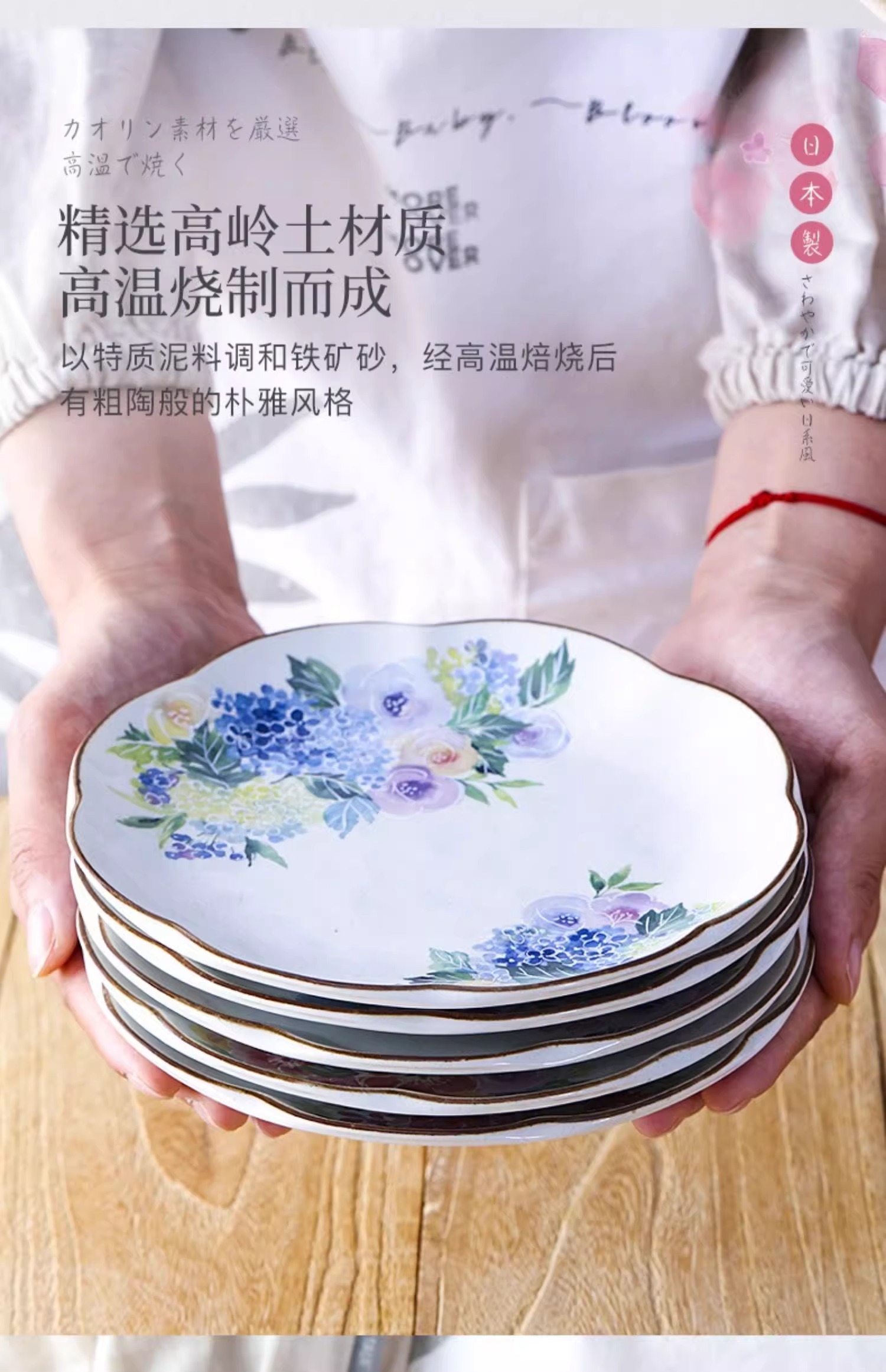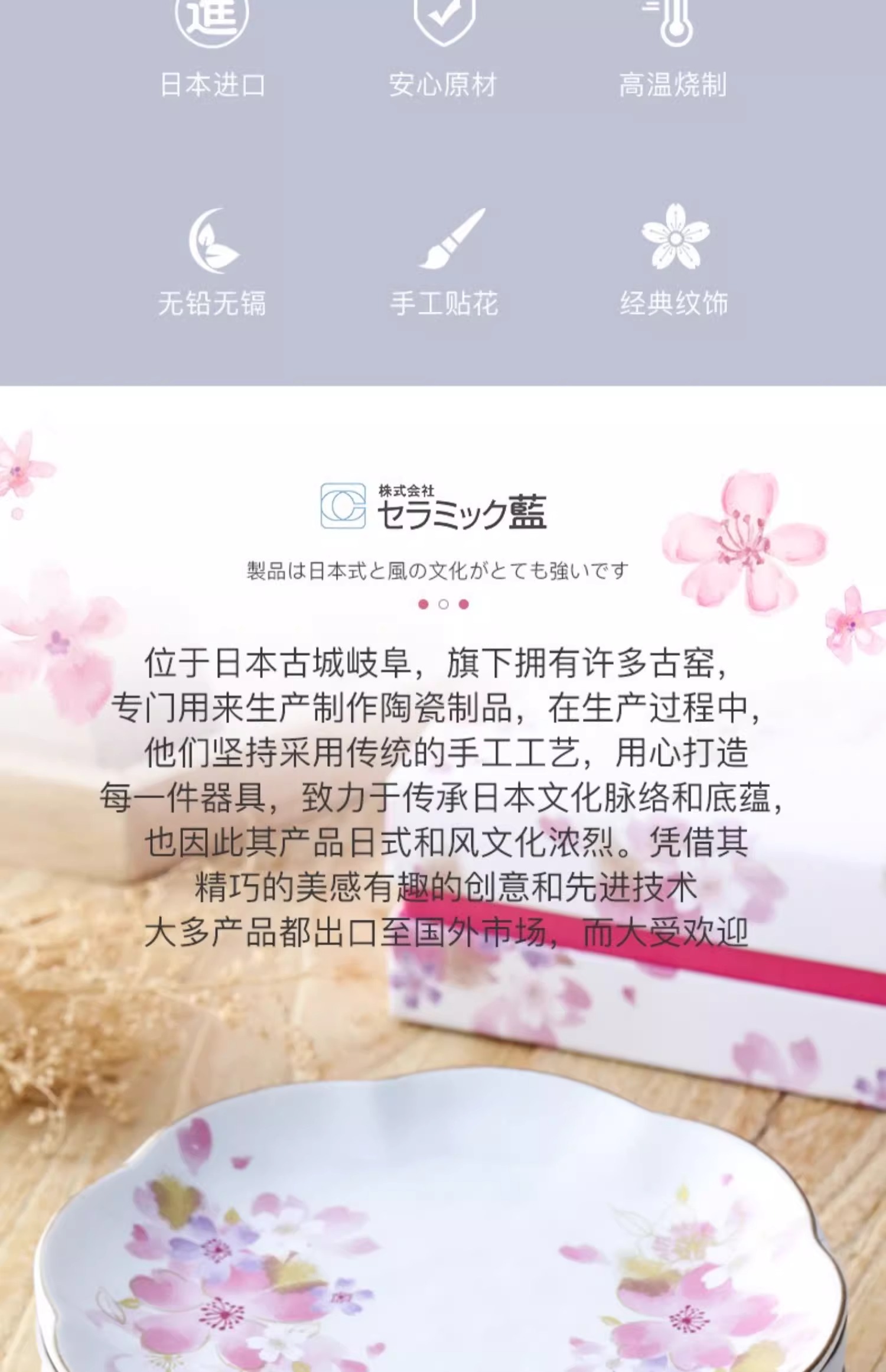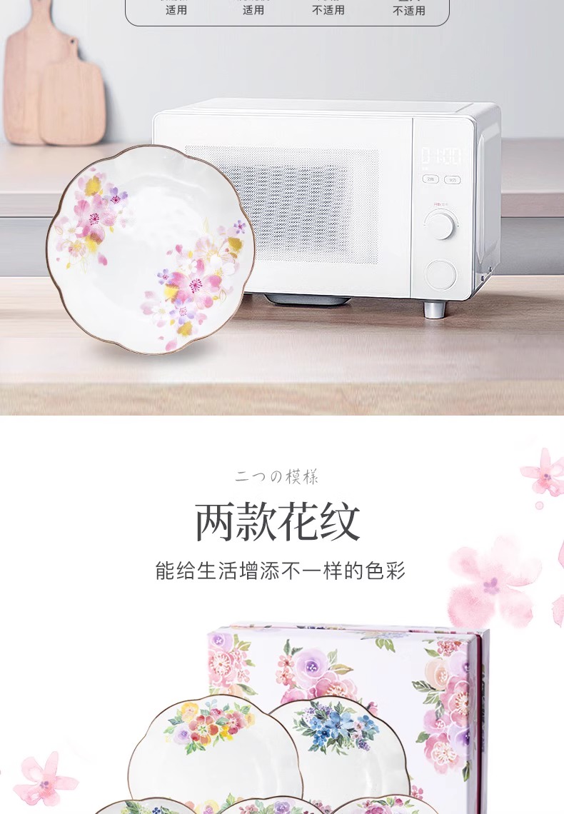 日本进口ceramic和蓝陶瓷甜品碟水果盘日式小吃碟子套装和蓝花音色花边五入盘16.5*2.5cm五入碗11*6.6cm一壶五杯茶具