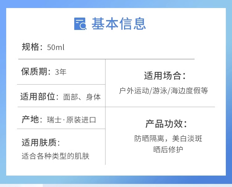 瑞士产,一瓶三用,防晒+隔离+美白,有美白特证哦,可以提亮肤色,