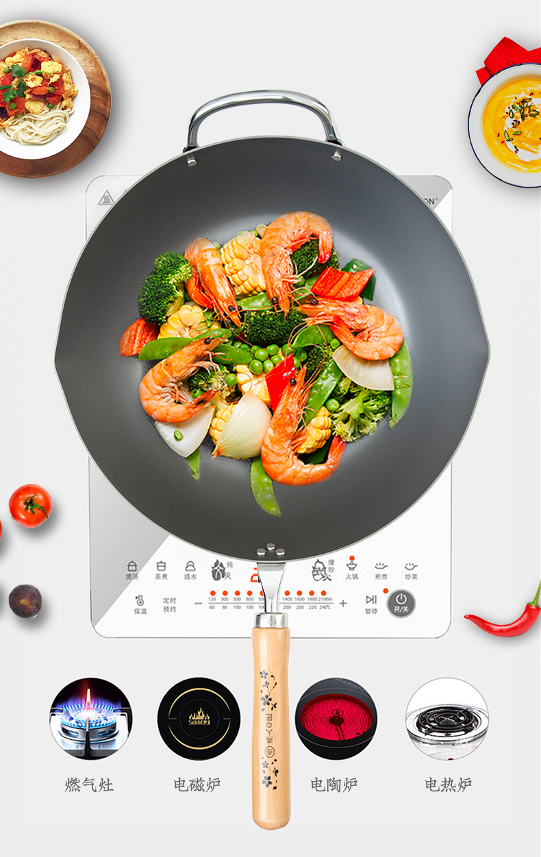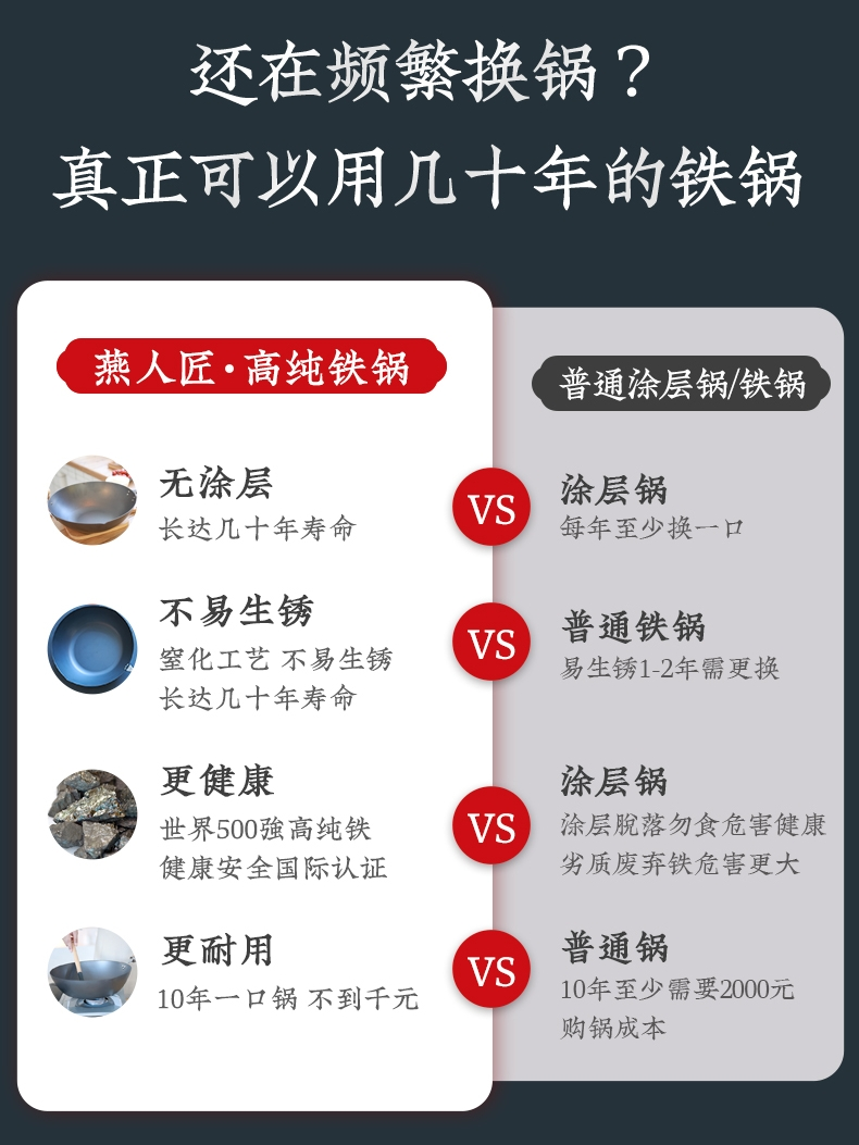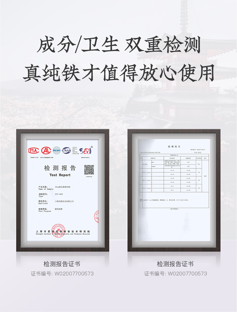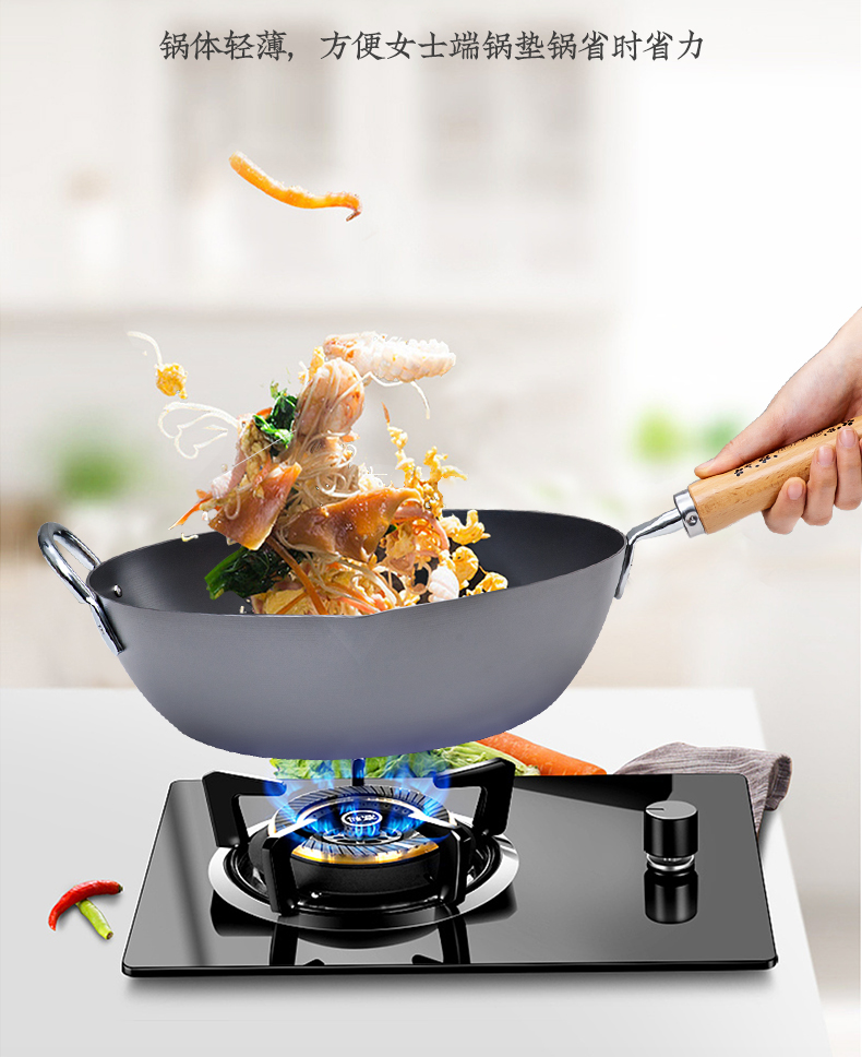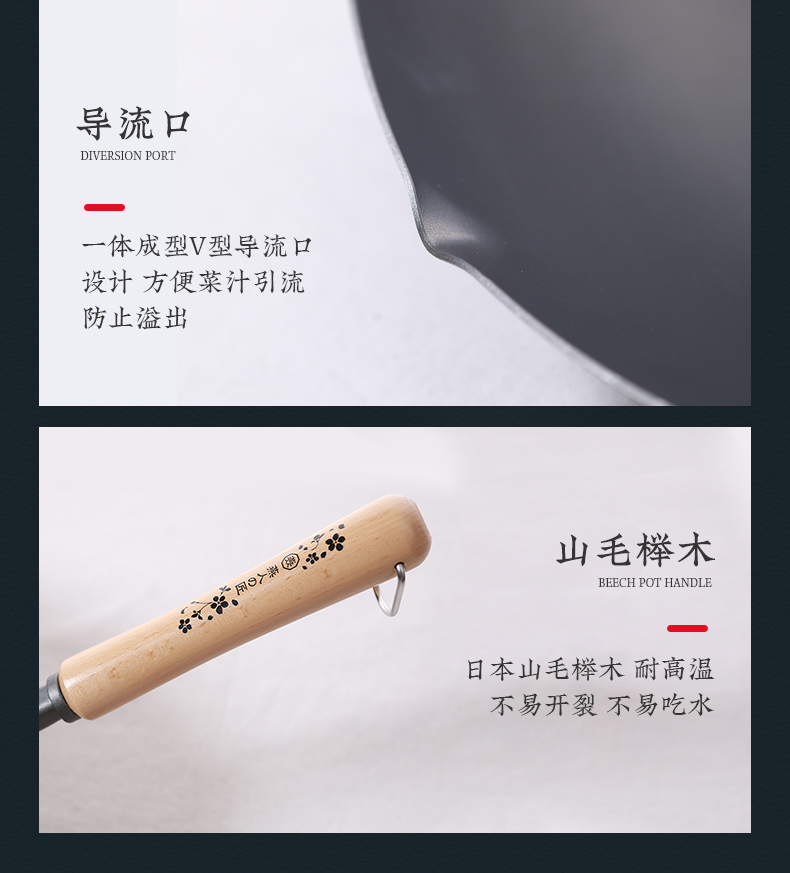 【日本进口100%无涂层】日本燕人匠原装进口无涂层铁锅/炒锅,窒化铁技术不生锈,附赠木质锅盖