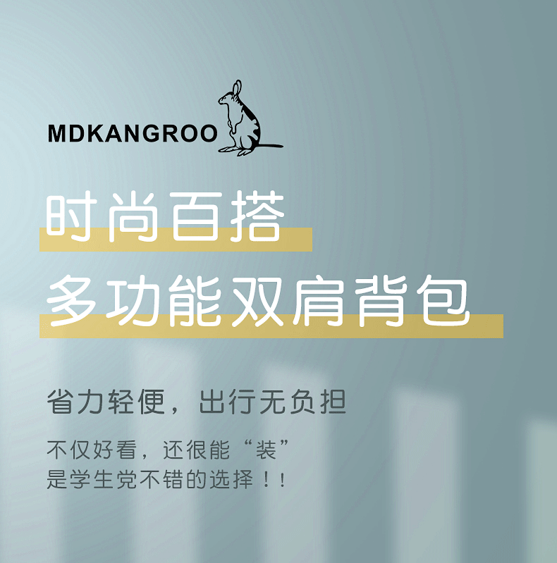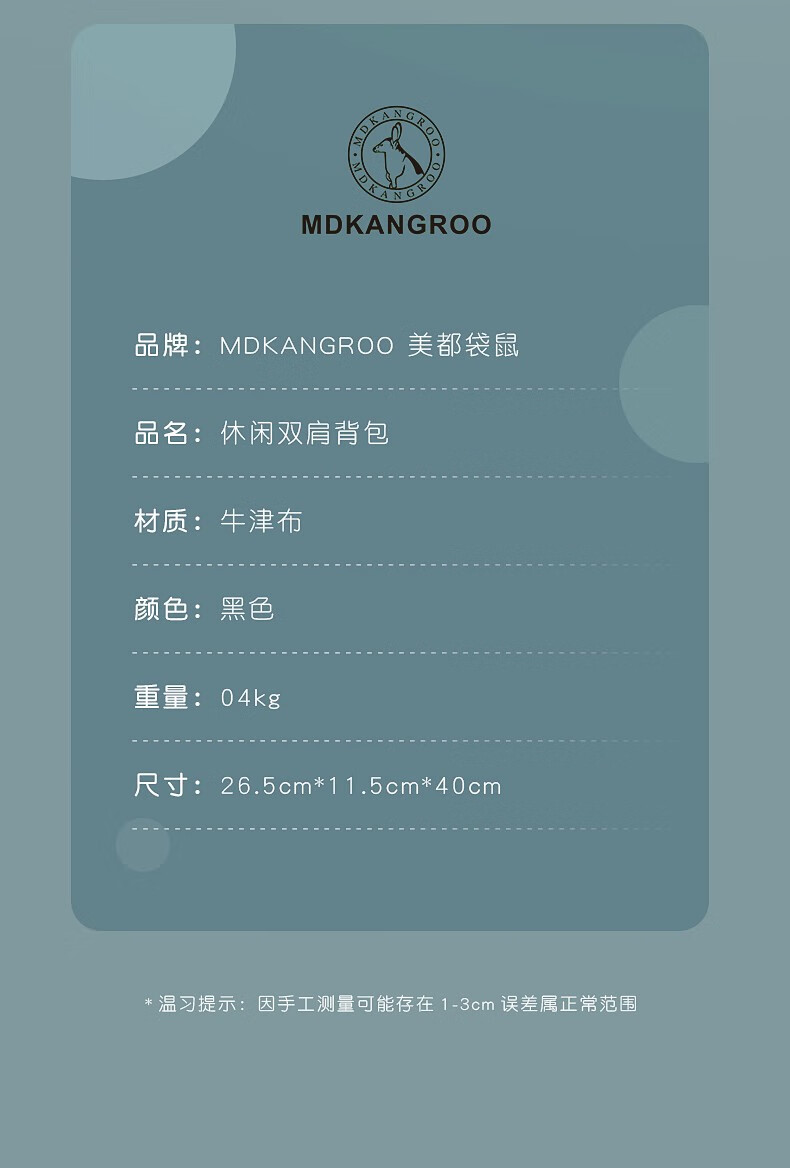 美都袋鼠(MDKANGROO)双肩包15.6英寸电脑包男女大学生潮流书包商务运动背包轻便大容量