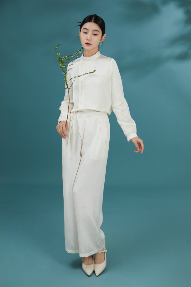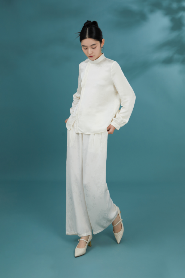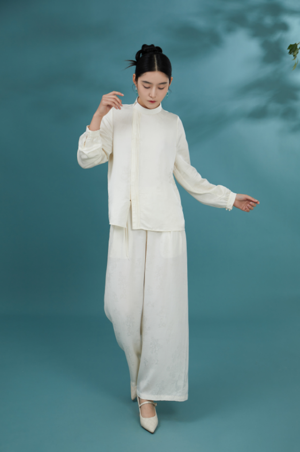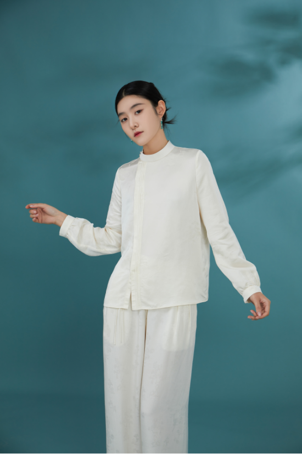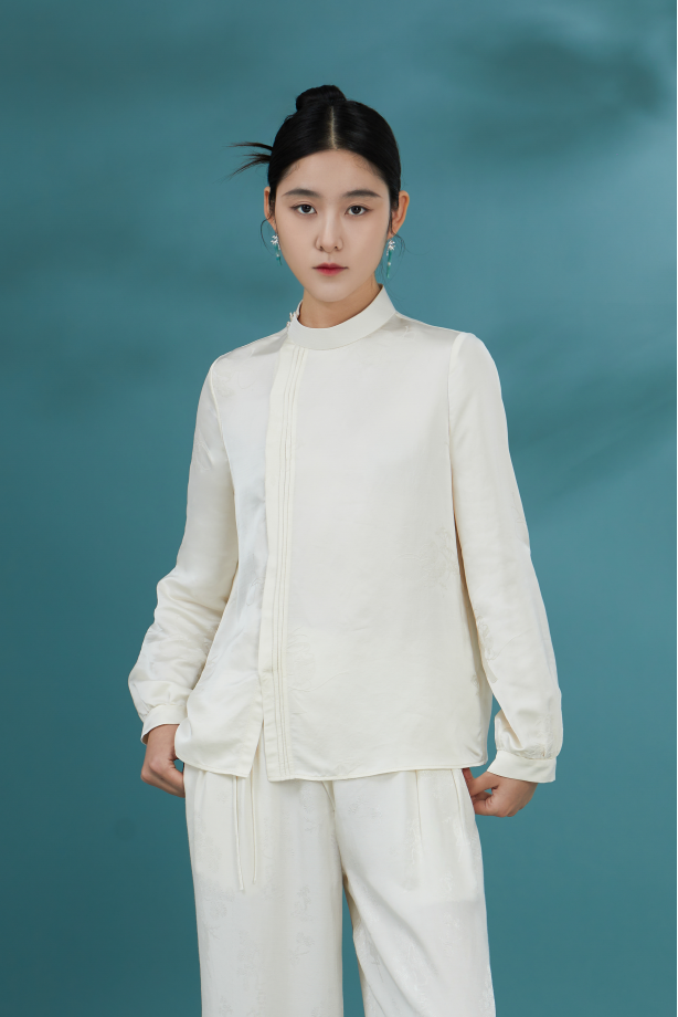 荷言 GL 沐华 人丝提花小立领风琴褶新中式上衣 商品图1