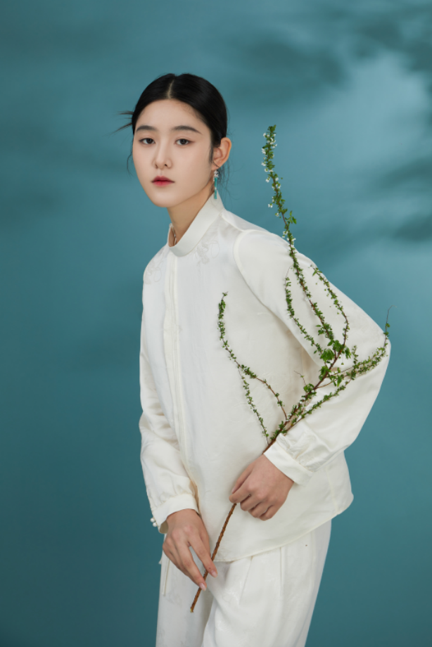 荷言 GL 沐华 人丝提花小立领风琴褶新中式上衣 商品图2